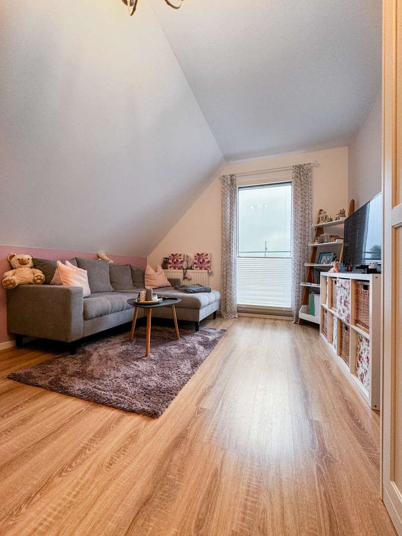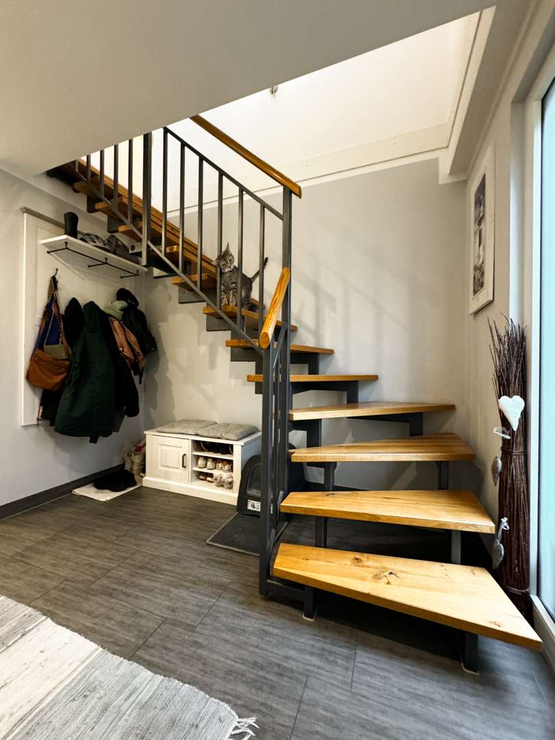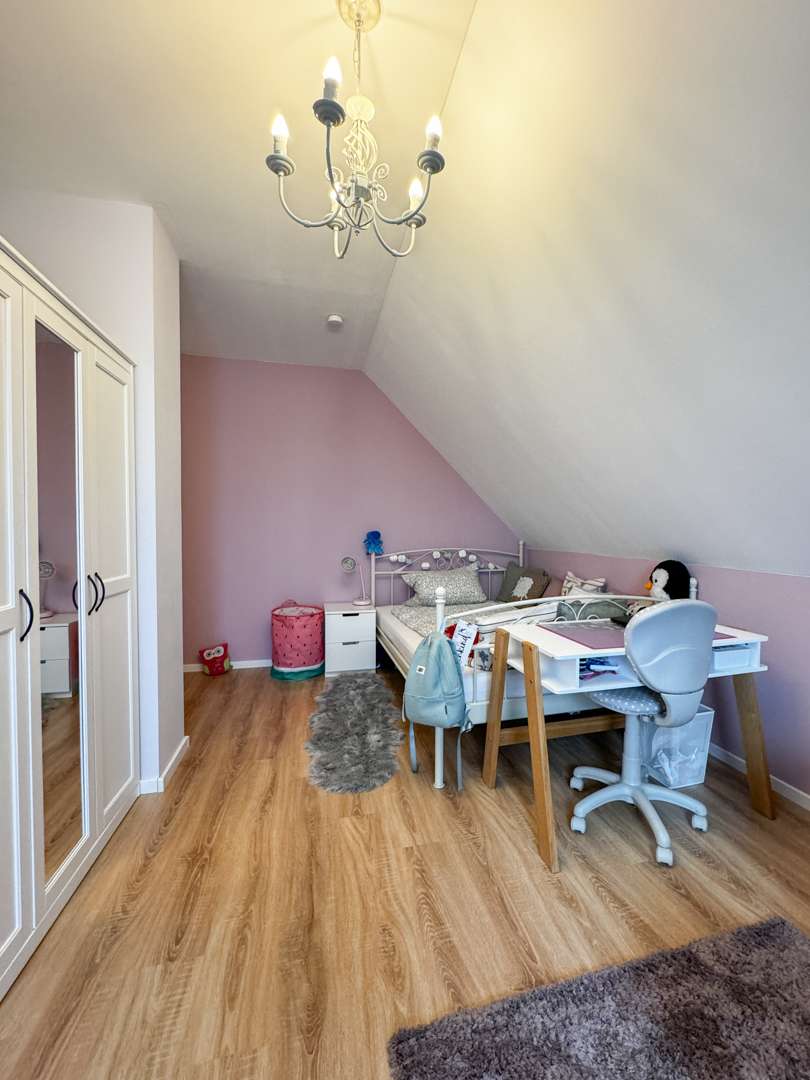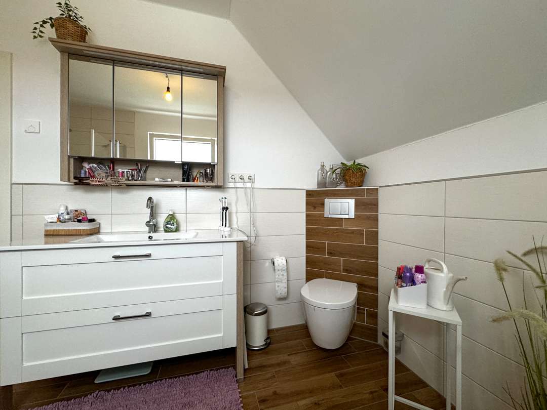 Über die frei stehende Vollholztreppe aus Wildeiche und Stahl gelangen Sie in das Obergeschoss, welches 3 weitere Zimmer für Ihre wohnlichen Bedürfnisse bietet. Ob Schlafzimmer, Büro oder Kinderzimmer, die Räume lassen sich vielfältig nutzen. Hier befindet sich auch das Hauptbadezimmer, dieses lässt keine Wünsche offen und wurde im Design zeitlos gestaltet. Ein offener Arbeitsbereich ergänzt das Raumangebot optimal. Ein Spitzboden bietet ausreichend Abstellfläche.