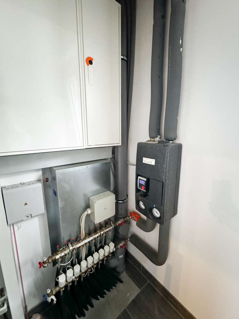 Beheizt wird ds Gebäude mittels einer Luft-Wasser Wärmepumpe.