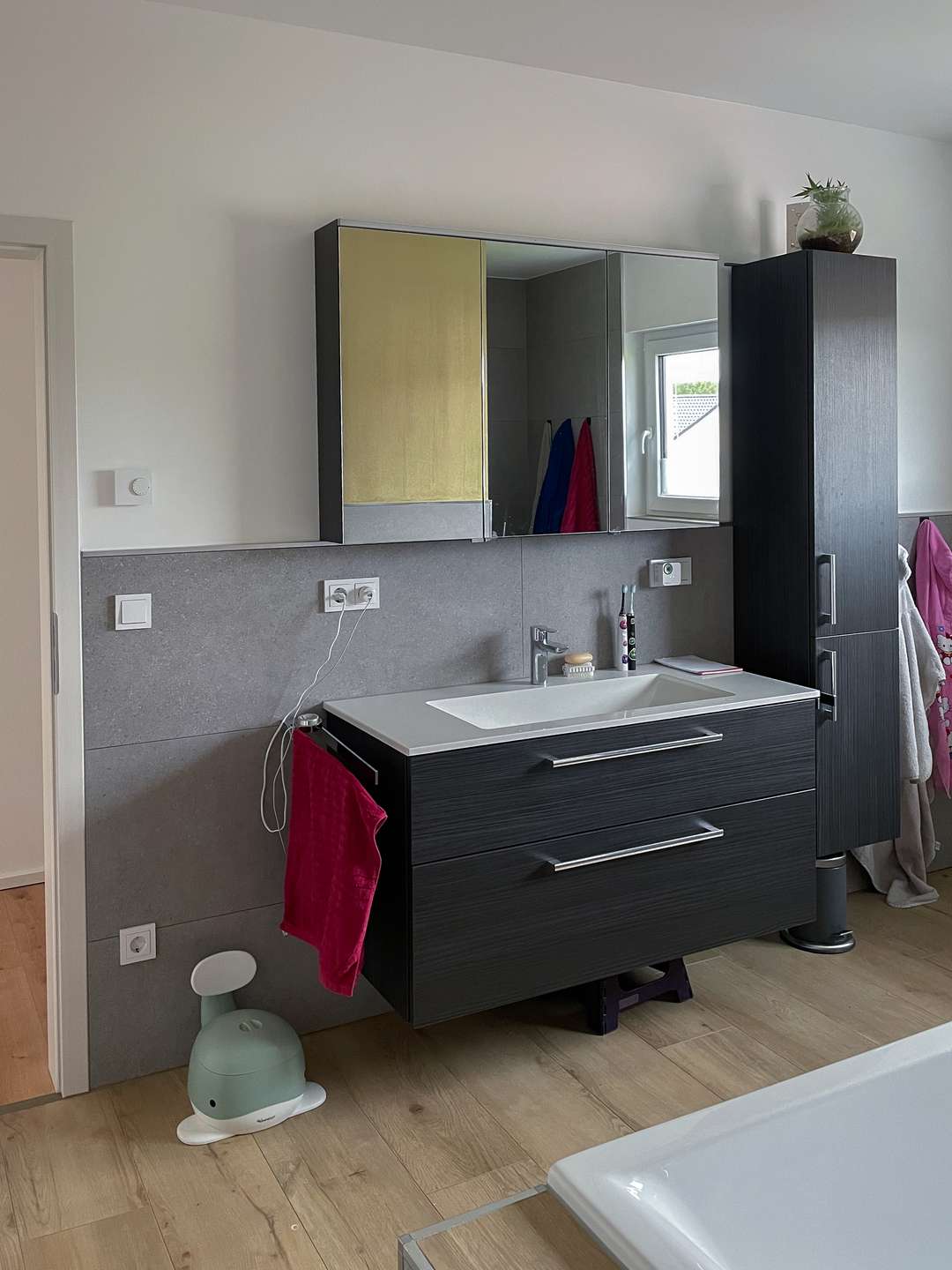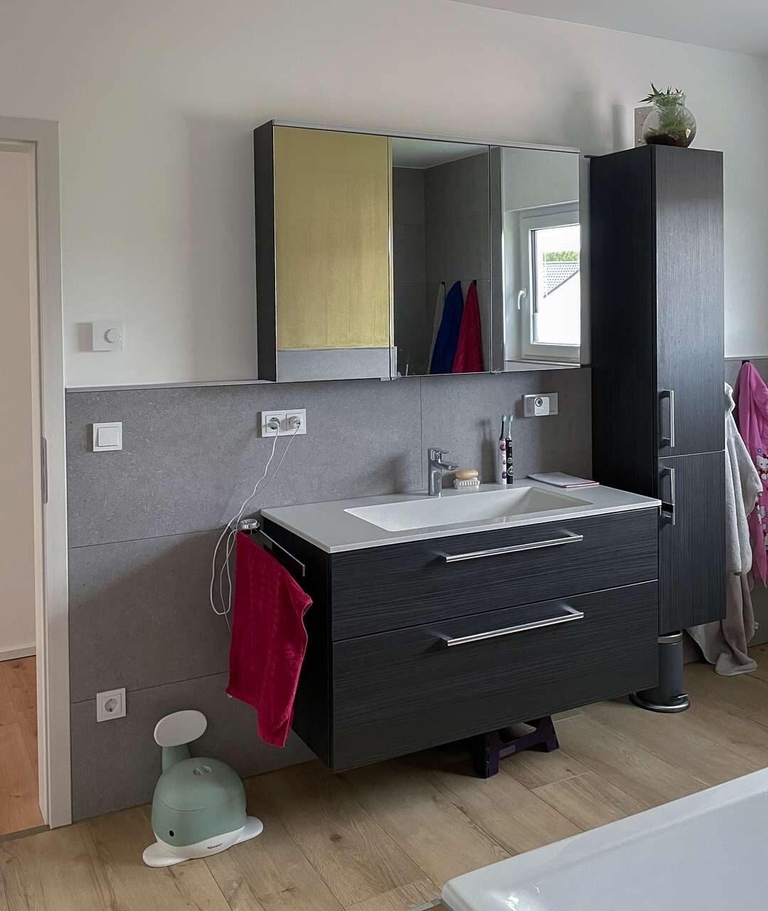 Im Obergeschoss erwartet Sie eine klare, familienfreundliche Raumaufteilung. Drei großzügig geschnittene Schlafzimmer bieten Platz für individuelle Wohnideen. Das große Badezimmer schafft mit seiner komfortablen Größe ideale Voraussetzungen für modernes Wohnen – ob für Entspannung oder den morgendlichen Start in den Tag.
