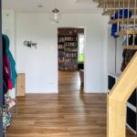 Das Erdgeschoss überzeugt durch seinen großzügigen, offenen Wohn- und Essbereich, der sich über die gesamte Gartenseite erstreckt. Bodentiefe Fenster schaffen eine helle, freundliche Atmosphäre und verbinden Innen- und Außenraum auf elegante Weise.