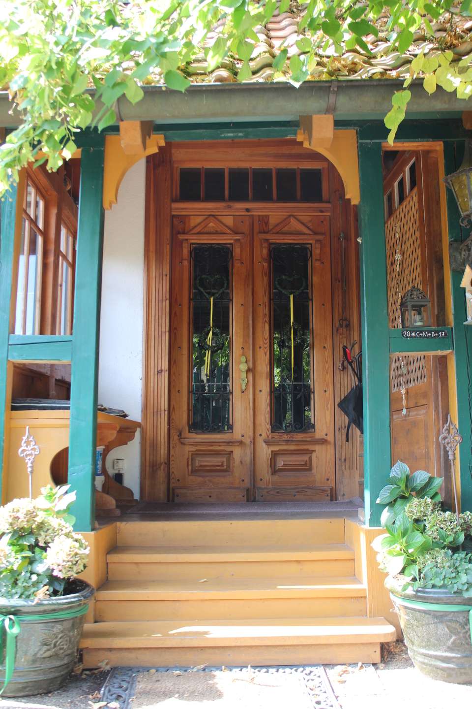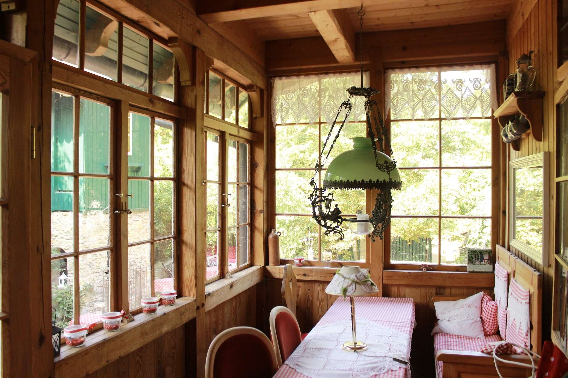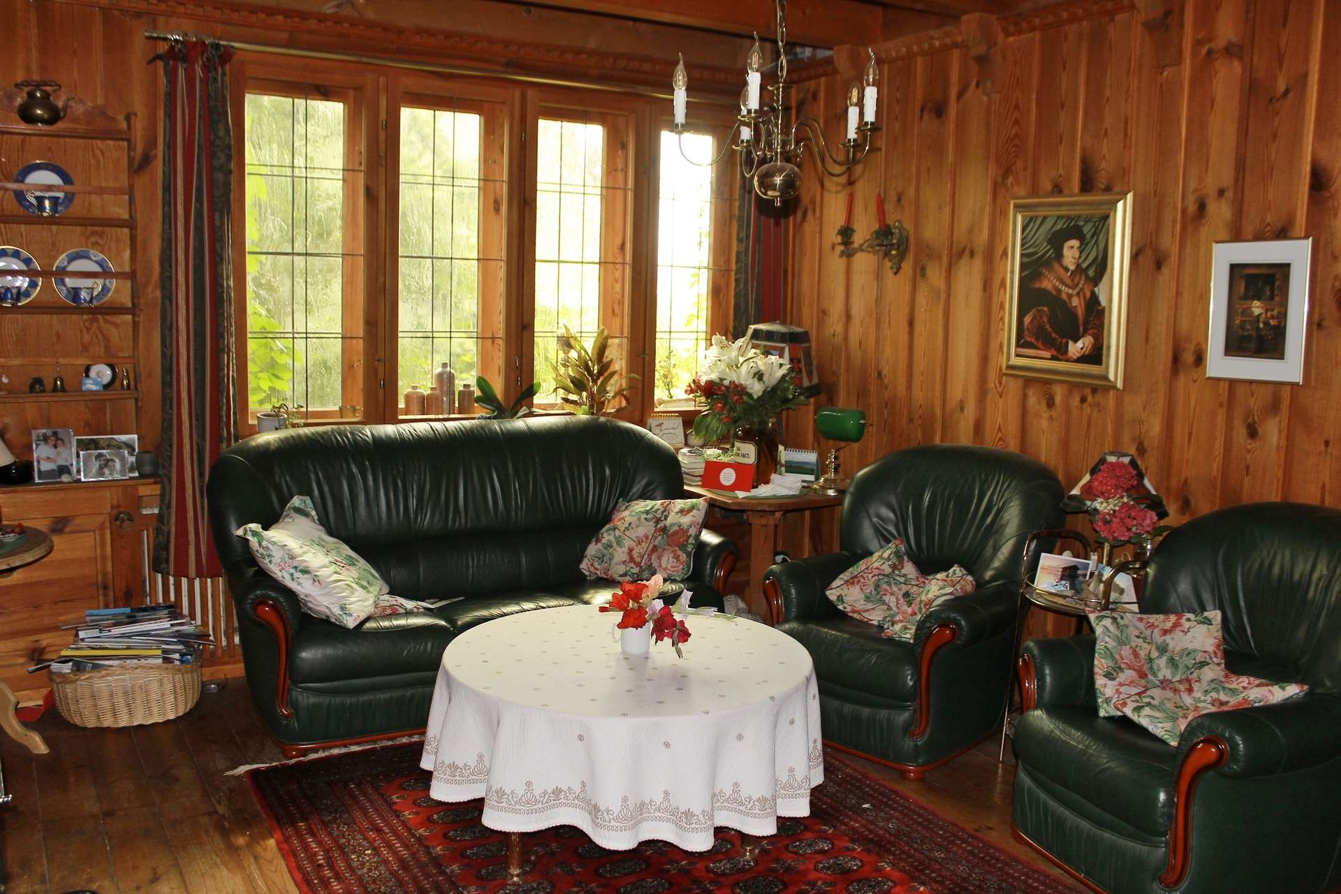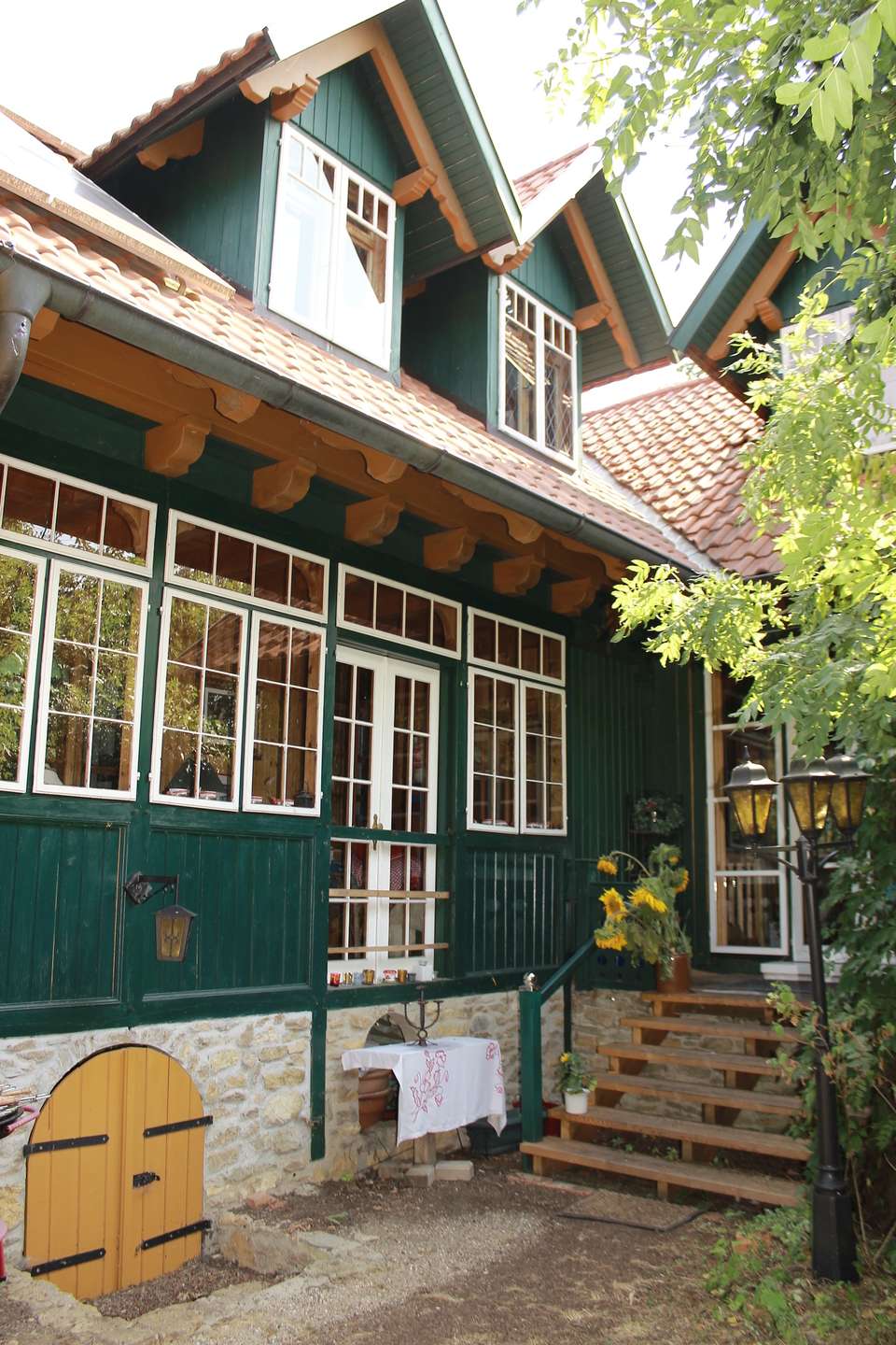 Im Erdgeschoss gewährt der Eingangsbereich den Zugang in die weiteren Etagen, sowie der Küche und dem Esszimmer. Vom großzügigen Esszimmer gelangen Sie in das Wohnzimmer und den Wintergarten. Die Räume sind aufwendig mit wunderschönen Holzelementen gestaltet worden. Im Wohnzimmer befindet sich zudem ein Kamin. Die Holzfenster mit Sprossen ergänzen den Stil im kompletten Anwesen. Der Wintergarten bietet zusätzlichen Raum zum Wohlfühlen.