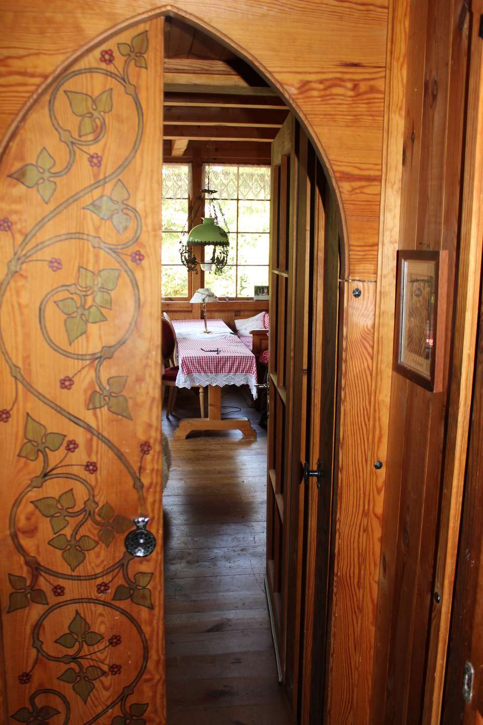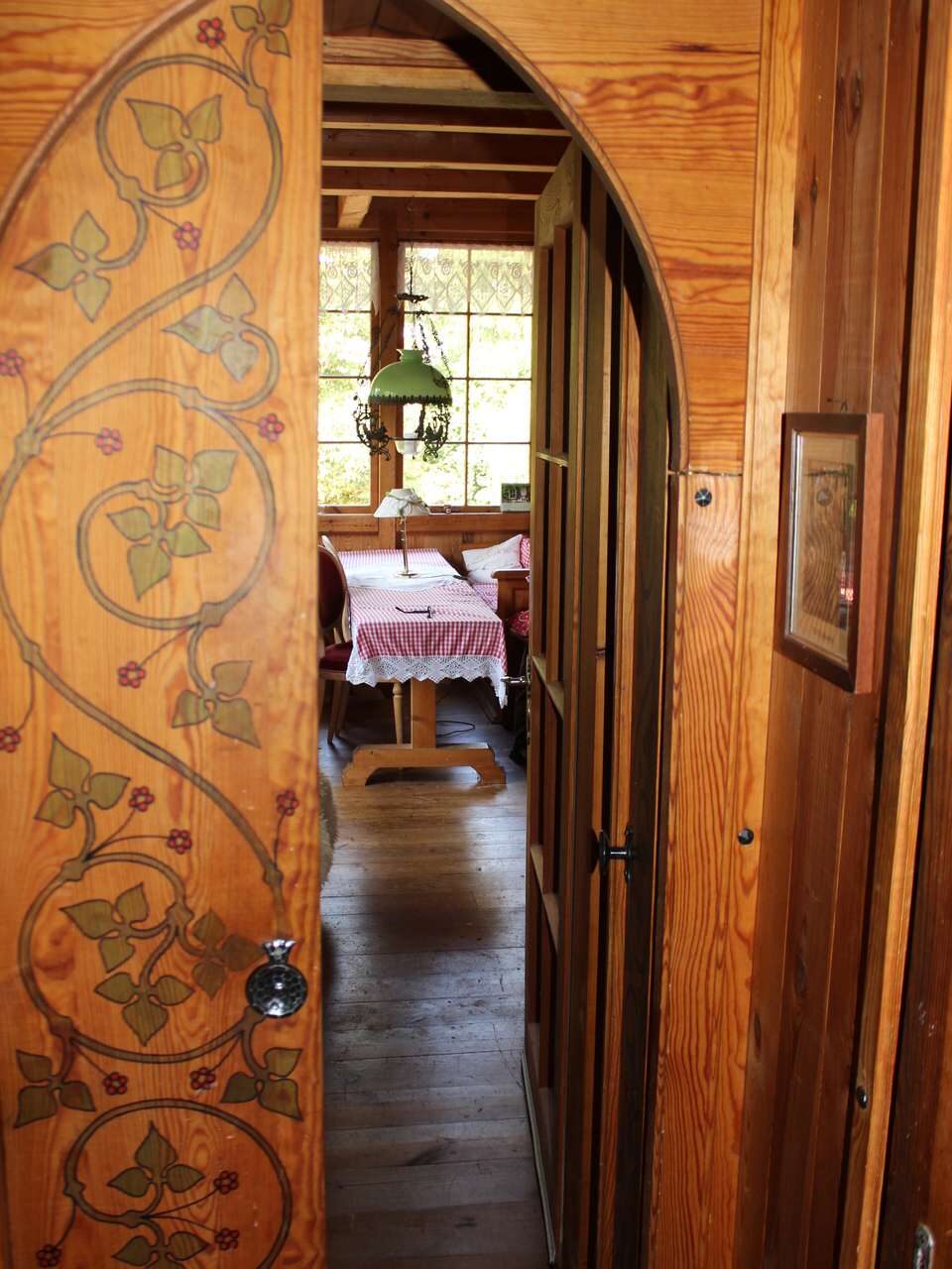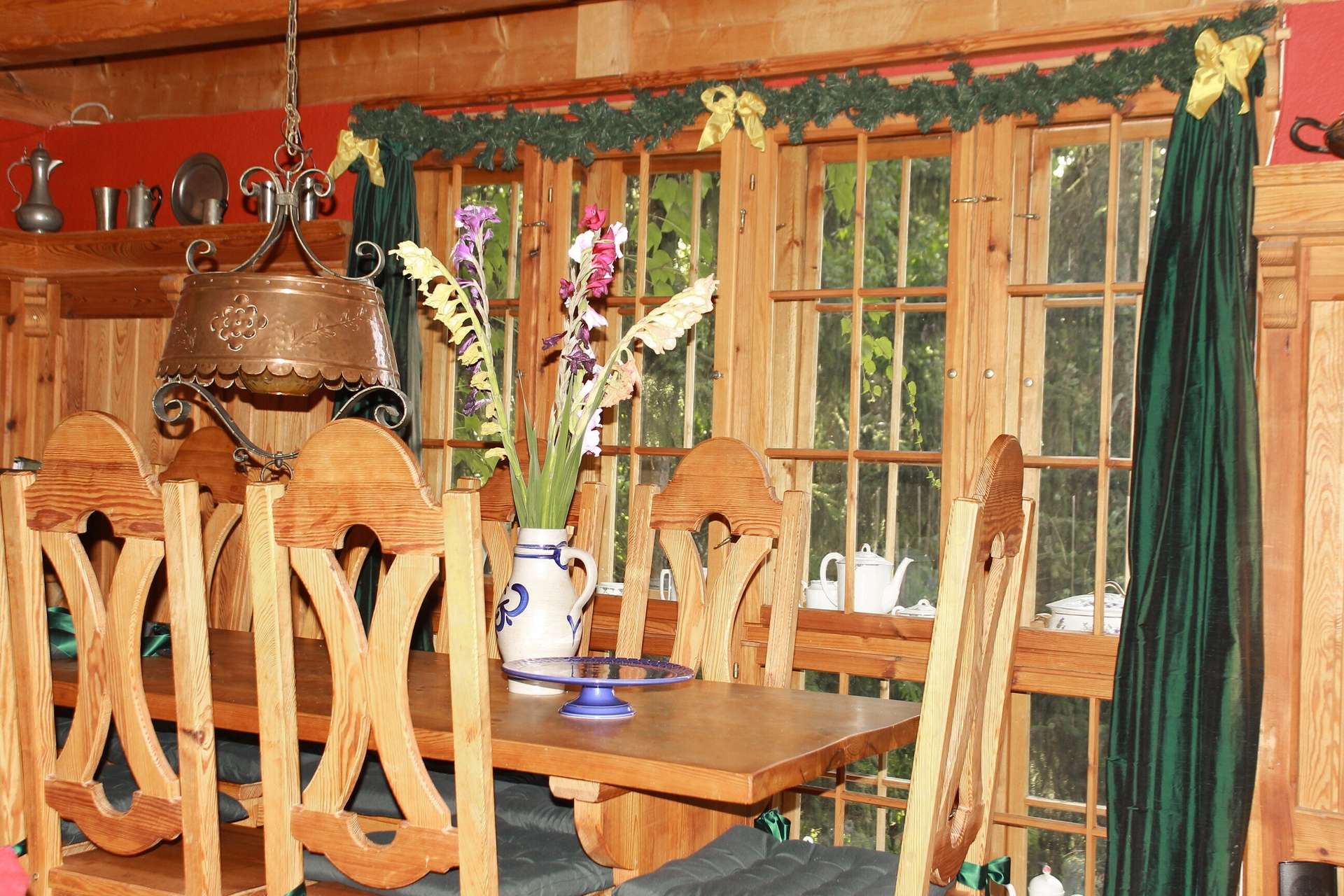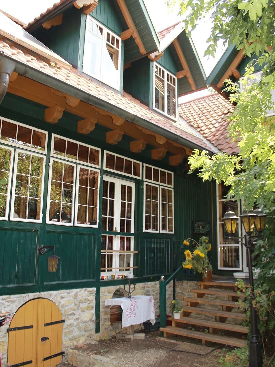 Im Erdgeschoss gewährt der Eingangsbereich den Zugang in die weiteren Etagen, sowie der Küche und dem Esszimmer. Vom großzügigen Esszimmer gelangen Sie in das Wohnzimmer und den Wintergarten. Die Räume sind aufwendig mit wunderschönen Holzelementen gestaltet worden. Im Wohnzimmer befindet sich zudem ein Kamin. Die Holzfenster mit Sprossen ergänzen den Stil im kompletten Anwesen. Der Wintergarten bietet zusätzlichen Raum zum Wohlfühlen.