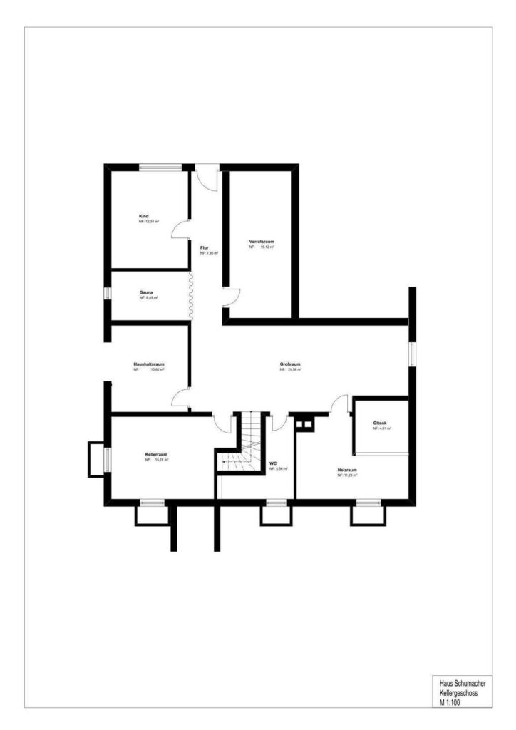 Der Keller des Hauses verfügt bereits über eine Sauna und eine Toilette. Hier finden Sie zudem einen Hauswirtschaftsraum und vier weitere Räume. Im Zuge der Sanierung wurde die Heizungsanlage bereits entfernt, für eine moderne Zentralheizung mit Brennstofflager befindet sich hier genügend Platz. Diese Etage verfügt zudem über Lichtschächte und einen zusätzlichen Zugang von außen.