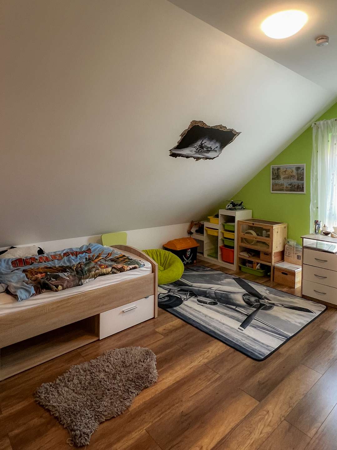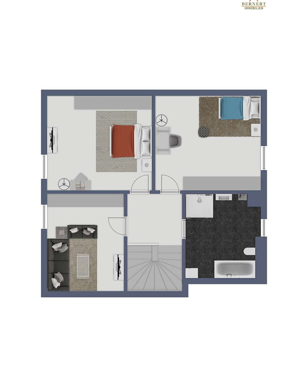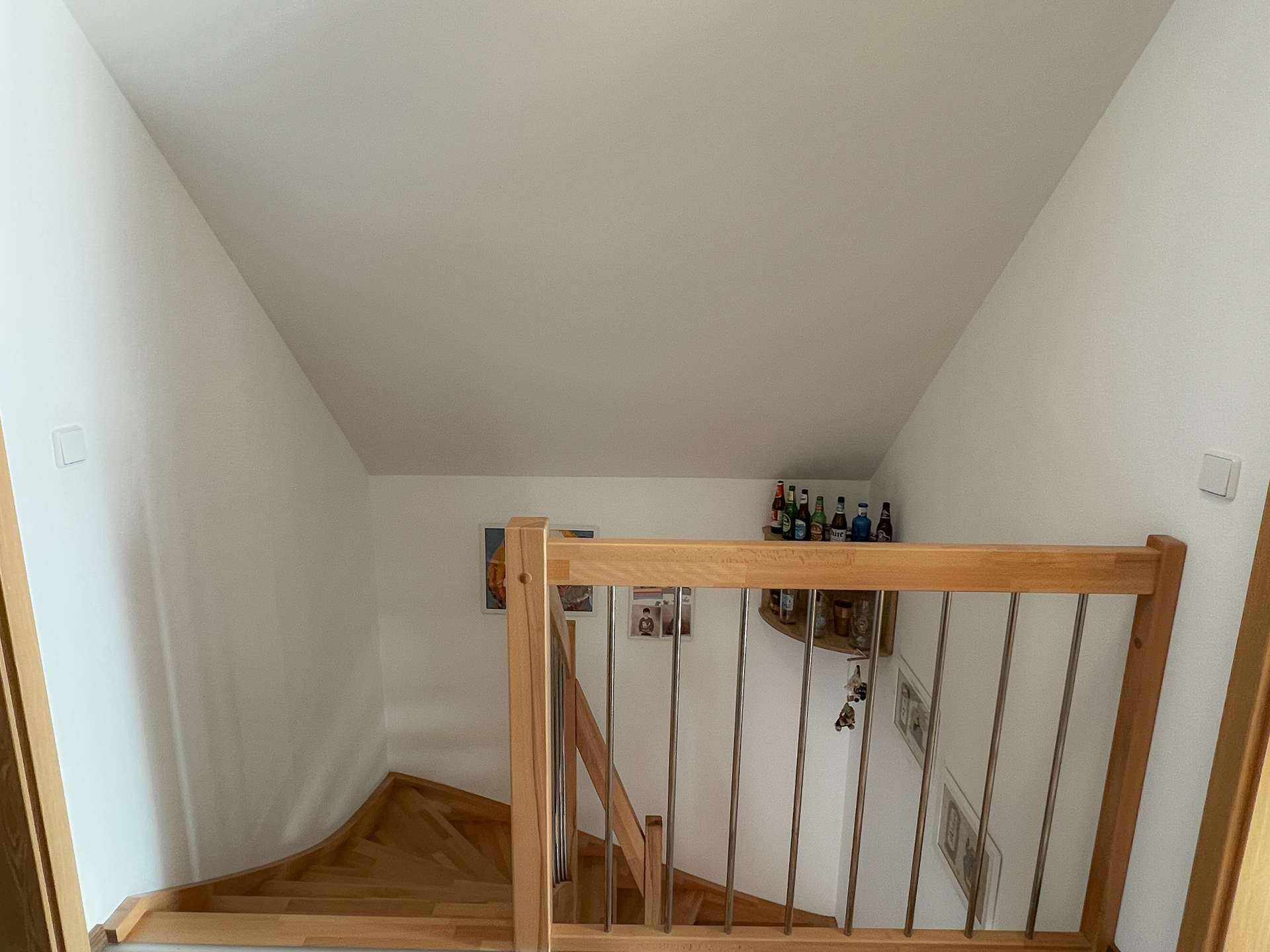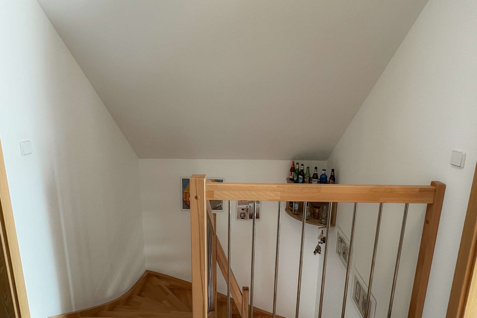 Über die frei stehende Echtholztreppe gelangen Sie in das Obergeschoss, welches 3 weitere Zimmer für Ihre wohnlichen Bedürfnisse bietet. Ob Schlafzimmer, Büro oder Kinderzimmer, die Räume lassen sich vielfältig nutzen. Hier befindet sich auch das Hauptbadezimmer, dieses lässt keine Wünsche offen. Ein Spitzboden bietet ausreichend Abstellfläche.