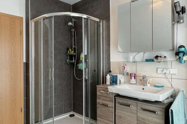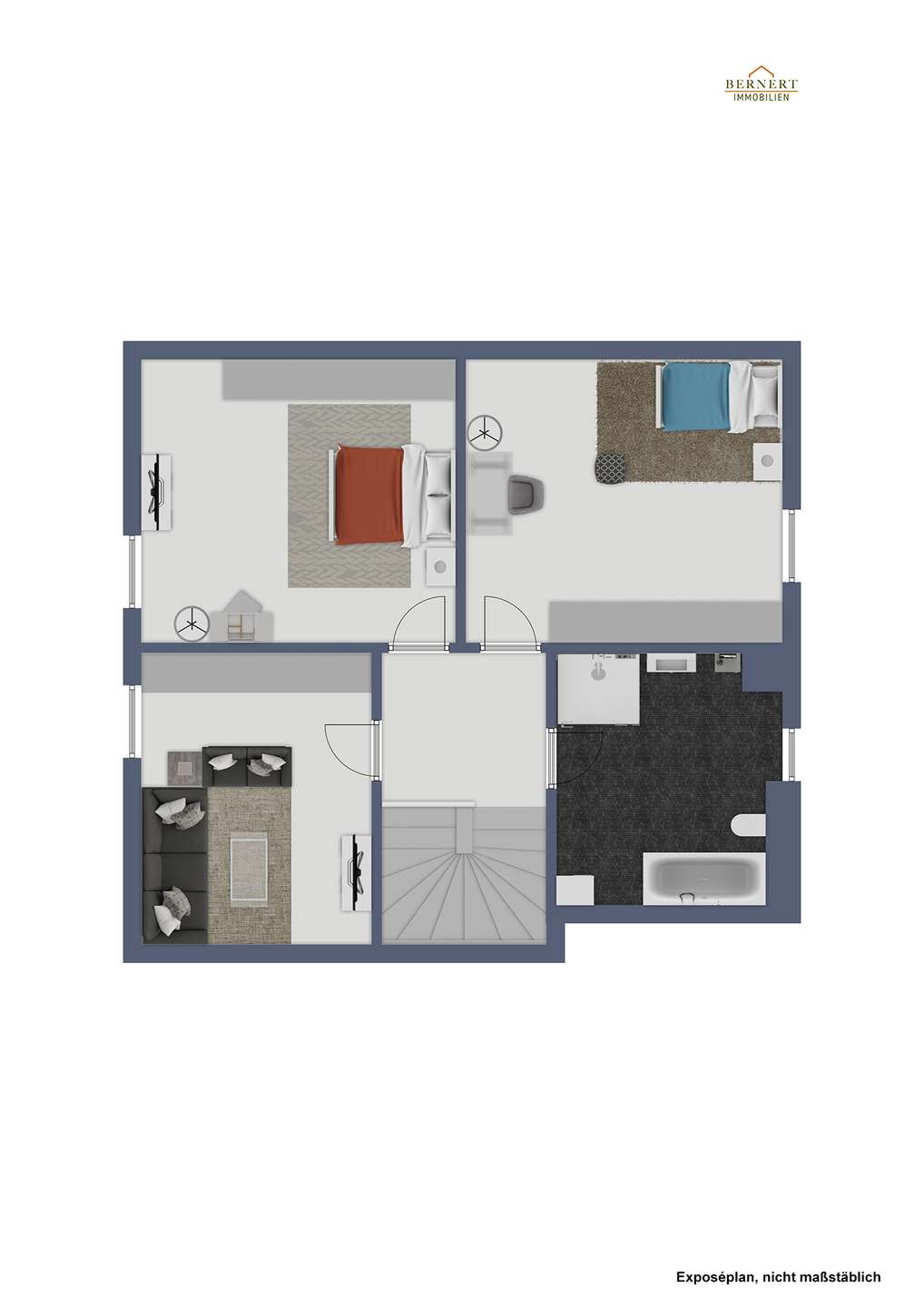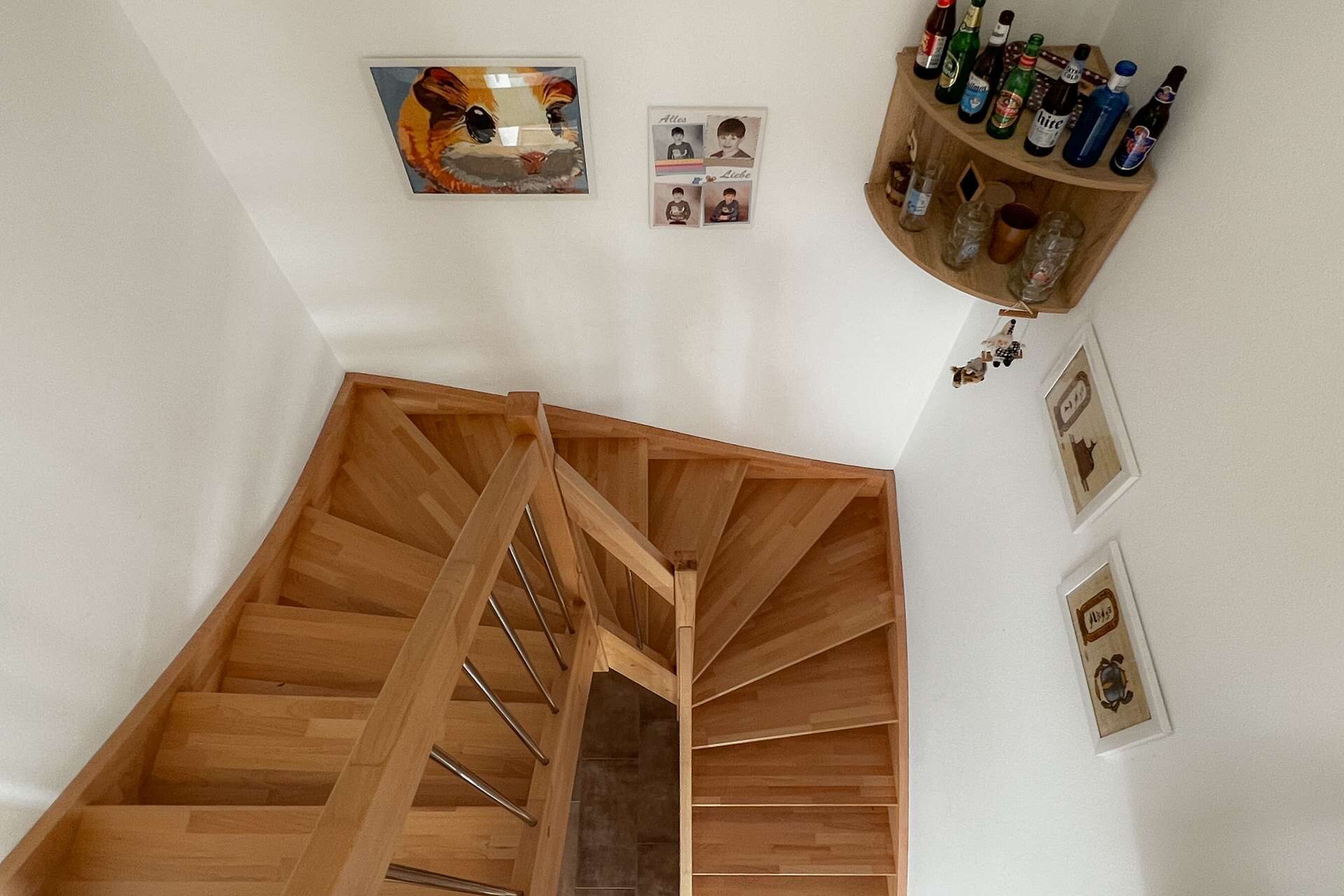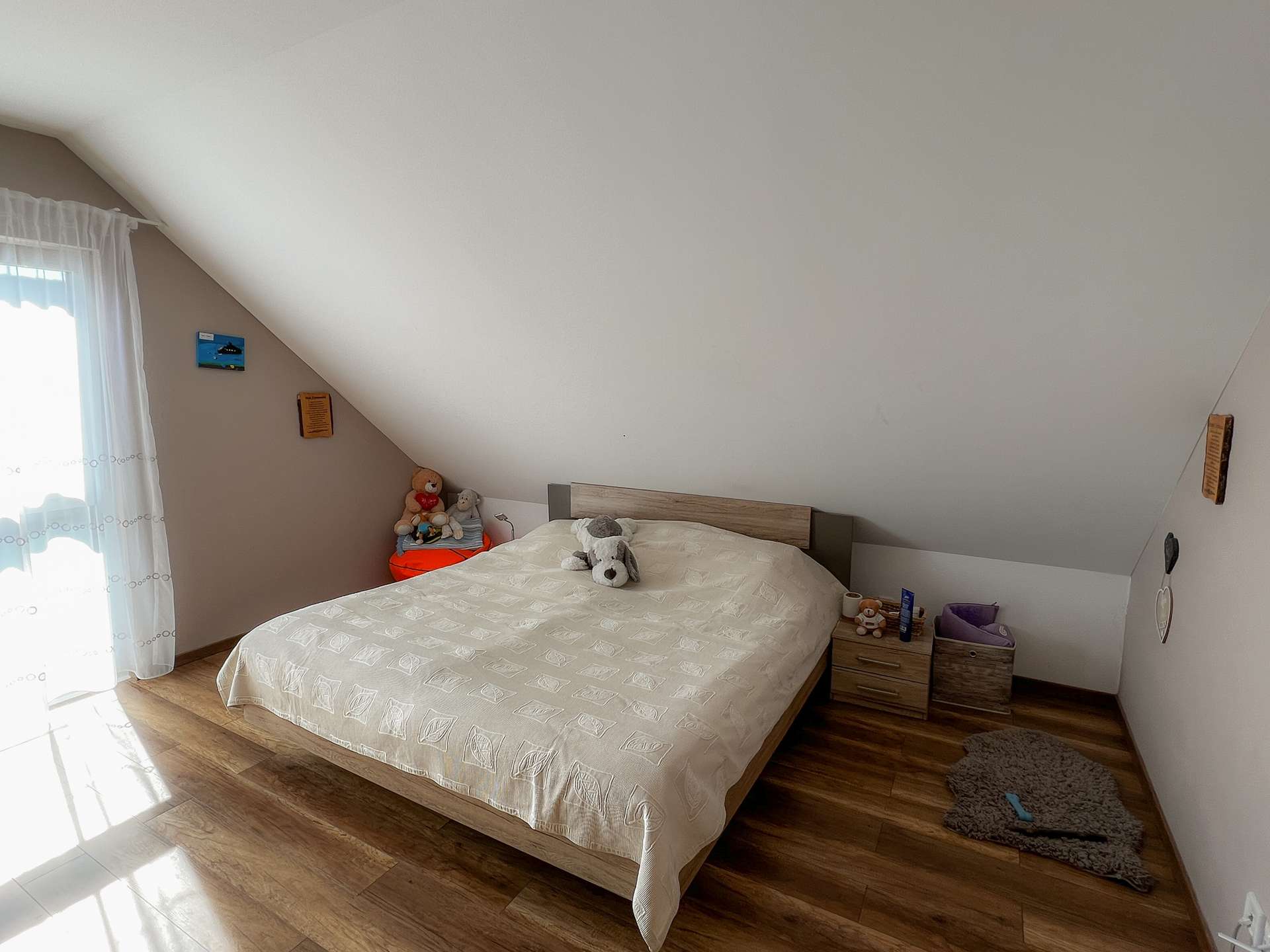 Über die frei stehende Echtholztreppe gelangen Sie in das Obergeschoss, welches 3 weitere Zimmer für Ihre wohnlichen Bedürfnisse bietet. Ob Schlafzimmer, Büro oder Kinderzimmer, die Räume lassen sich vielfältig nutzen. Hier befindet sich auch das Hauptbadezimmer, dieses lässt keine Wünsche offen. Ein Spitzboden bietet ausreichend Abstellfläche.