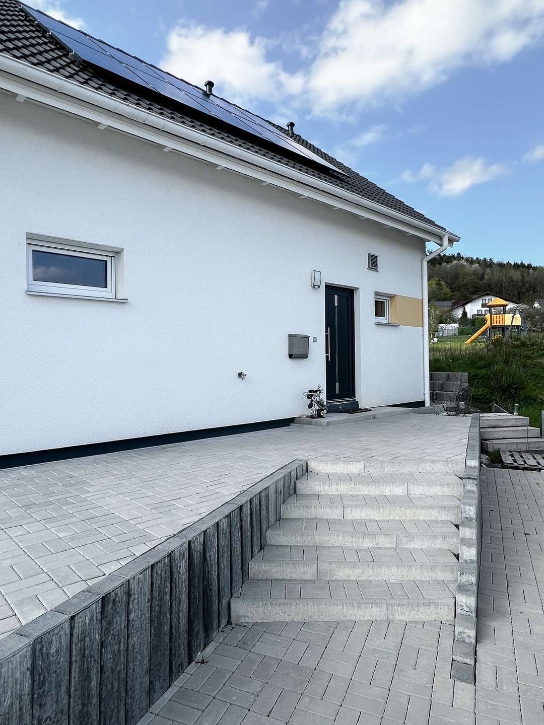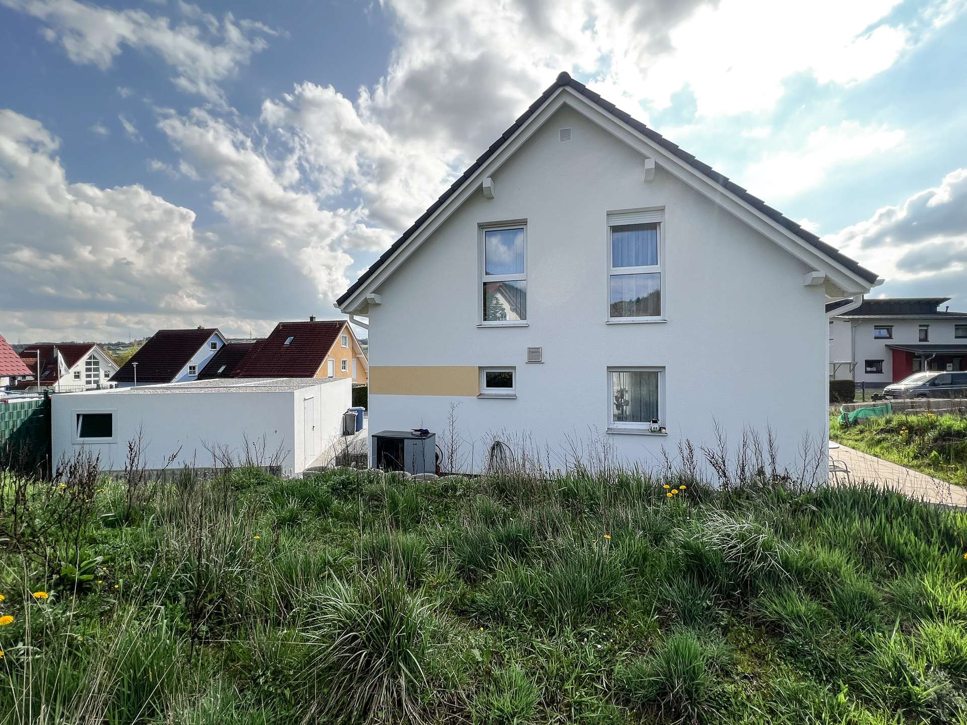 Das frei stehende Einfamilienhaus mit 132 m² Wohnfläche wurde erst 2020 auf dem 930 m² großen Grundstück erbaut und mit modernster Technik im Bereich der Energieeffizienz ausgestattet. Das Haus bietet zudem einen ca. 500 m² großen Garten, sowie eine Doppelgarage mit gepflasterten Hof.