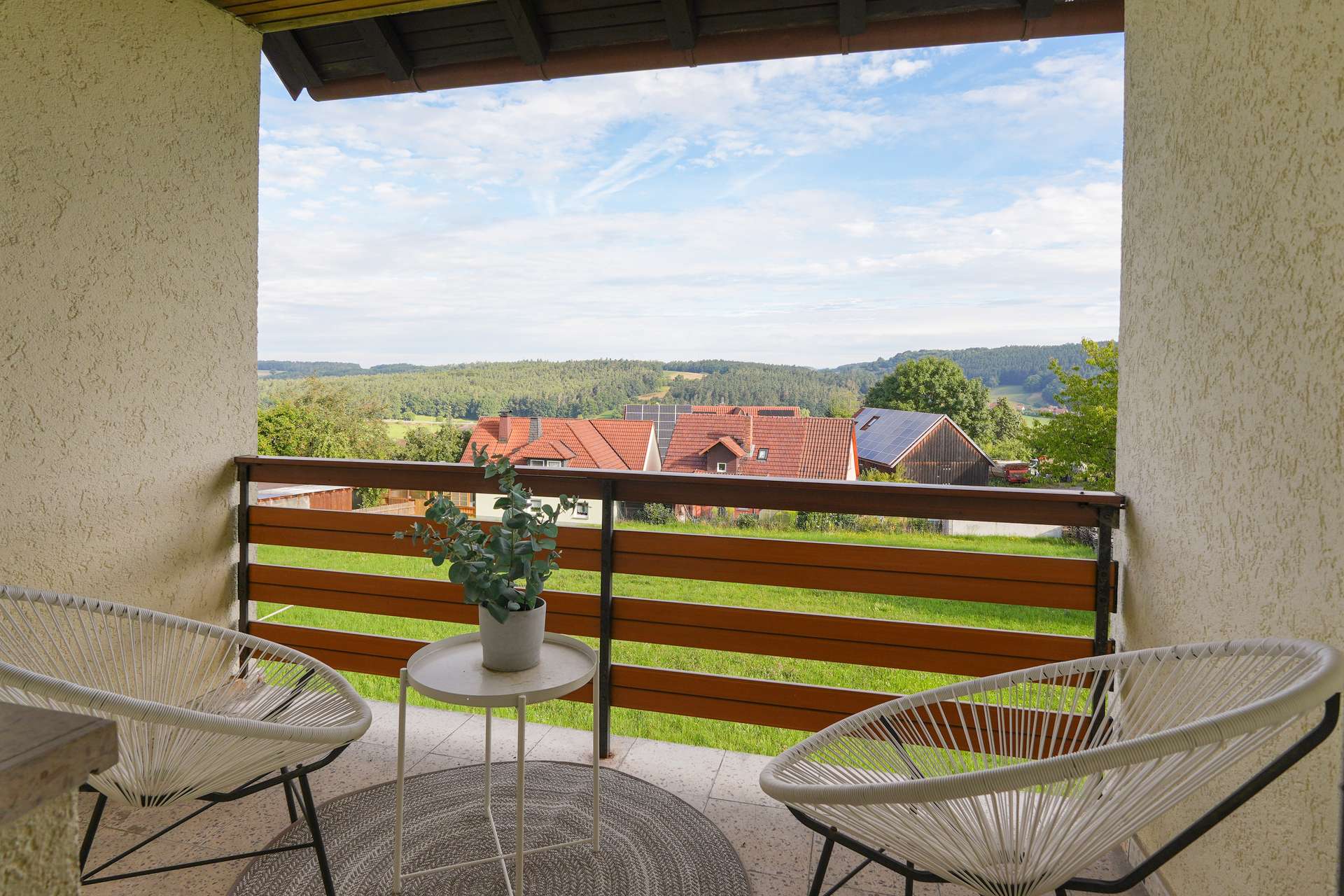 Im Obergeschoss stehen Ihnen ein helles Badezimmer mit Badewanne sowie vier weitere Zimmer zur Verfügung. Eines davon bietet Zugang zu einem Balkon mit herrlichem Weitblick. Ob Schlafzimmer, Kinderzimmer oder Büro – die Nutzungsmöglichkeiten sind vielfältig.