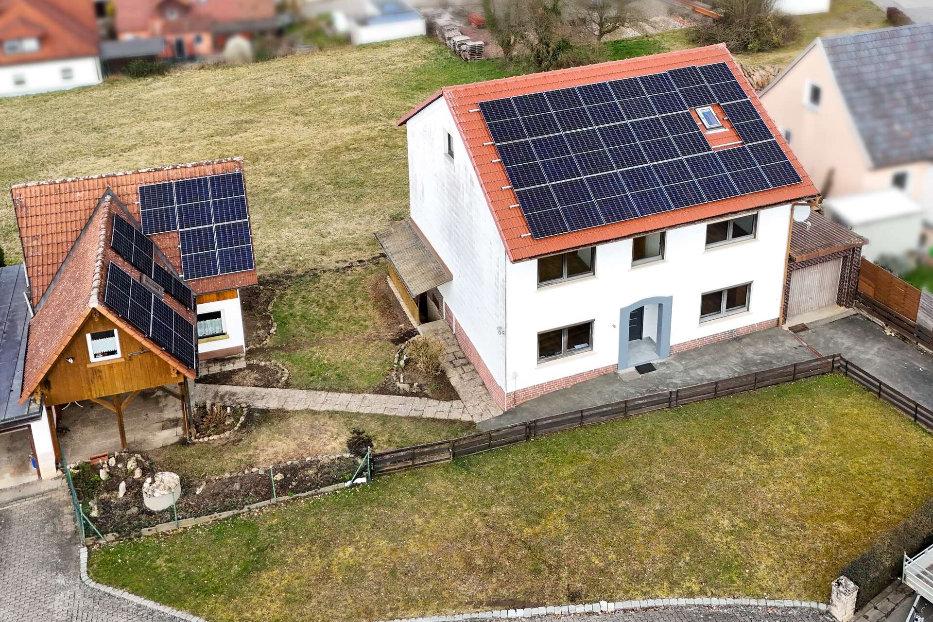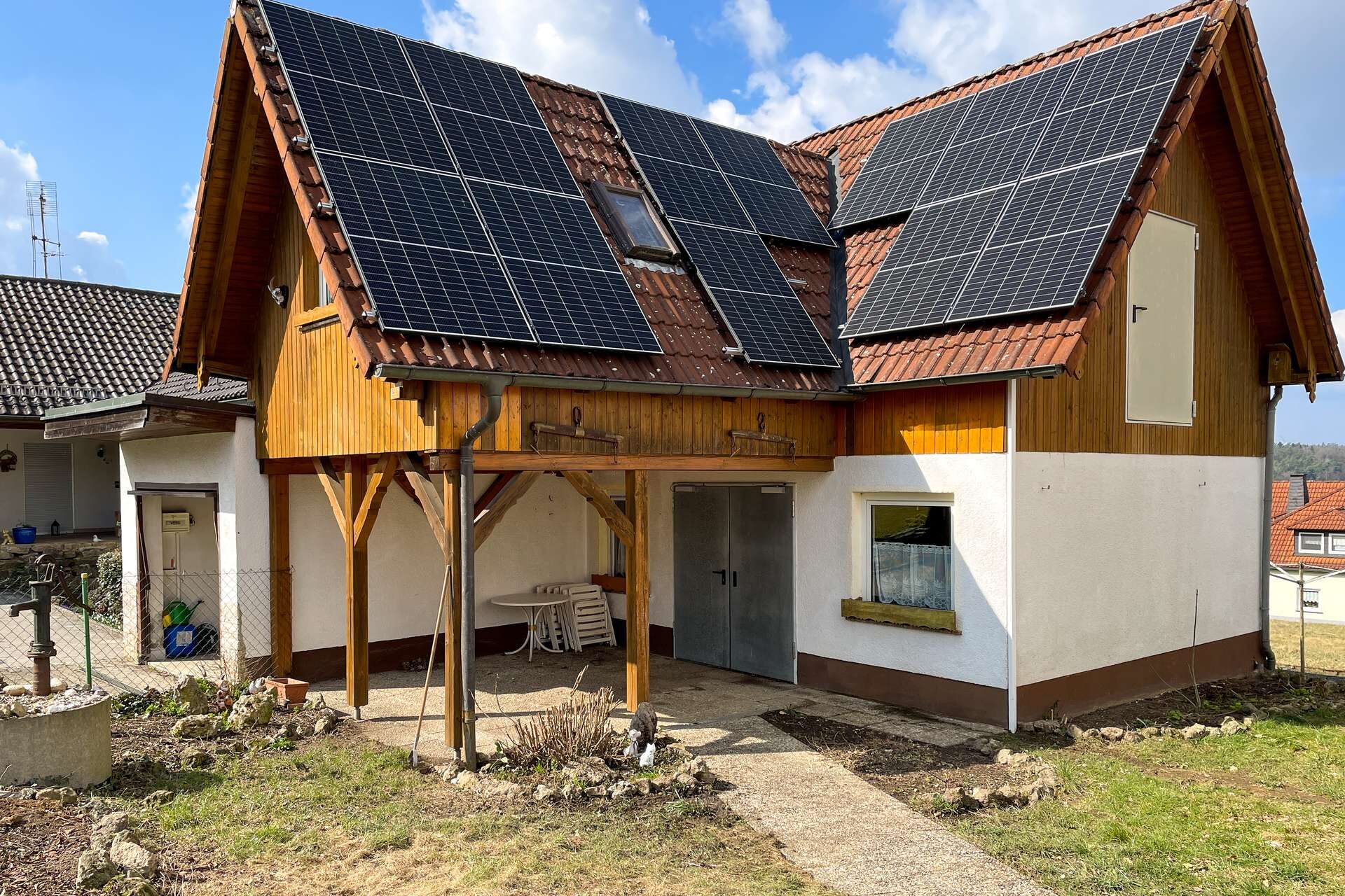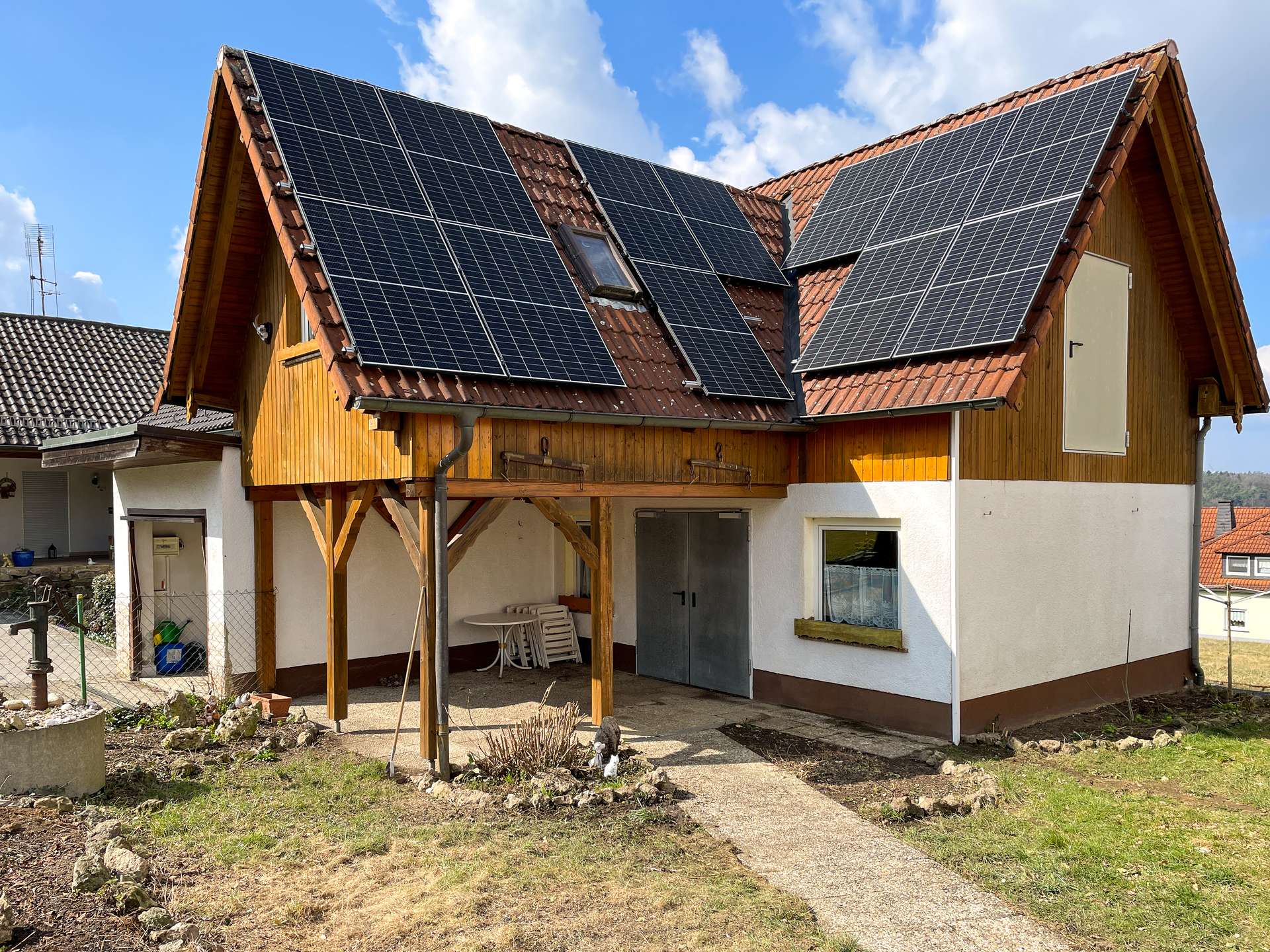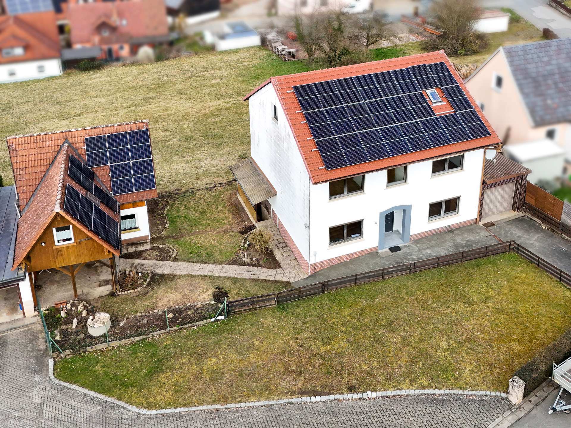 Ein besonderes Highlight: Die Photovoltaikanlage (Inbetriebnahme 2025) mit 15 kWp ist bereits im Kaufpreis enthalten. Hochwertige Trina-Vertex-Module (450 W pro Modul) und ein Huawei-Wechselrichter sorgen für hohe Effizienz. Die neuen Infrarot-Marmorheizplatten nutzen den erzeugten Strom optimal – modern, nachhaltig und kostensparend.