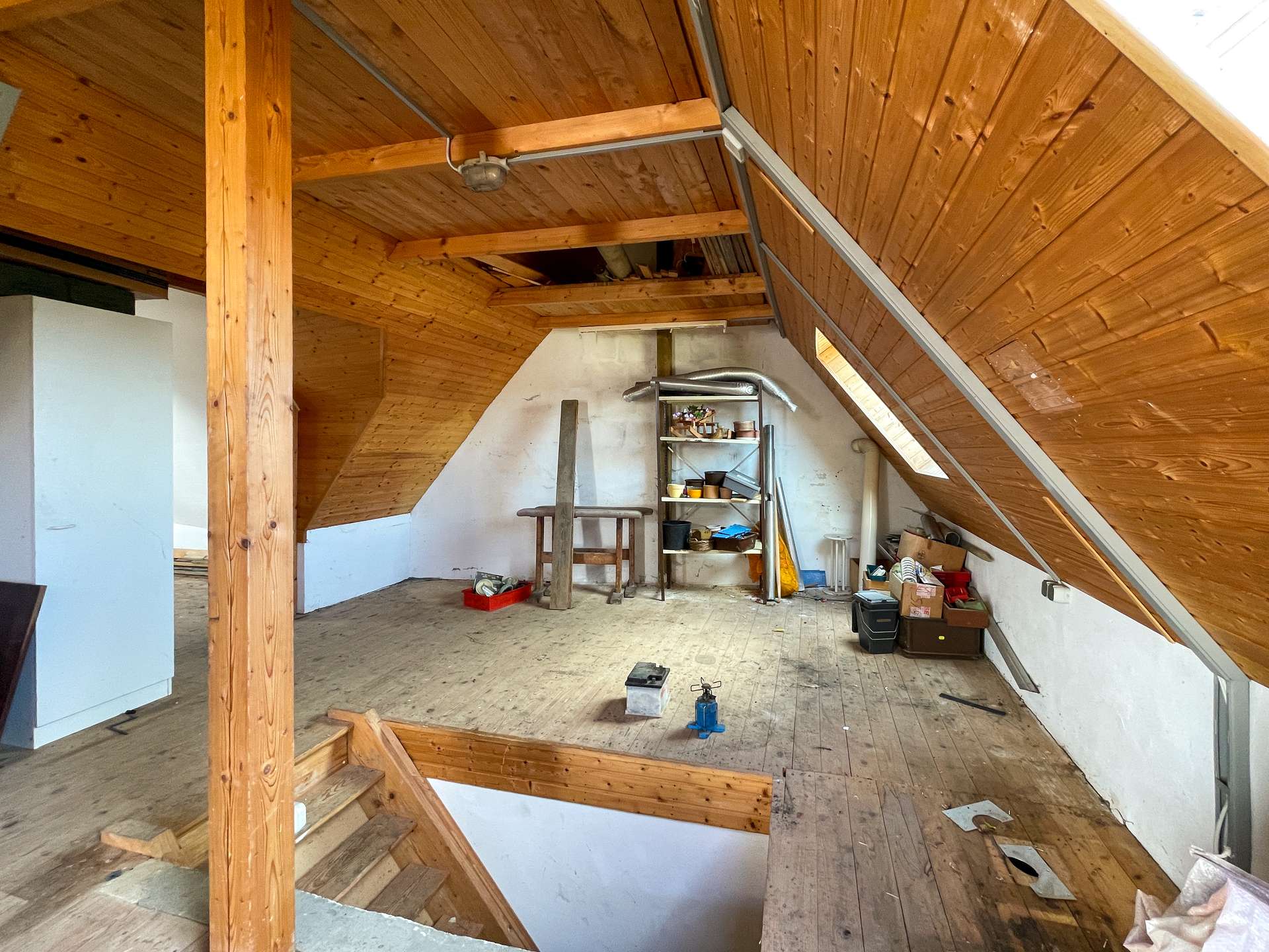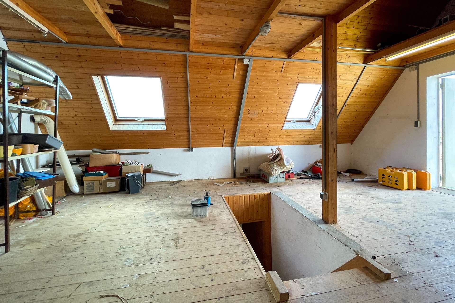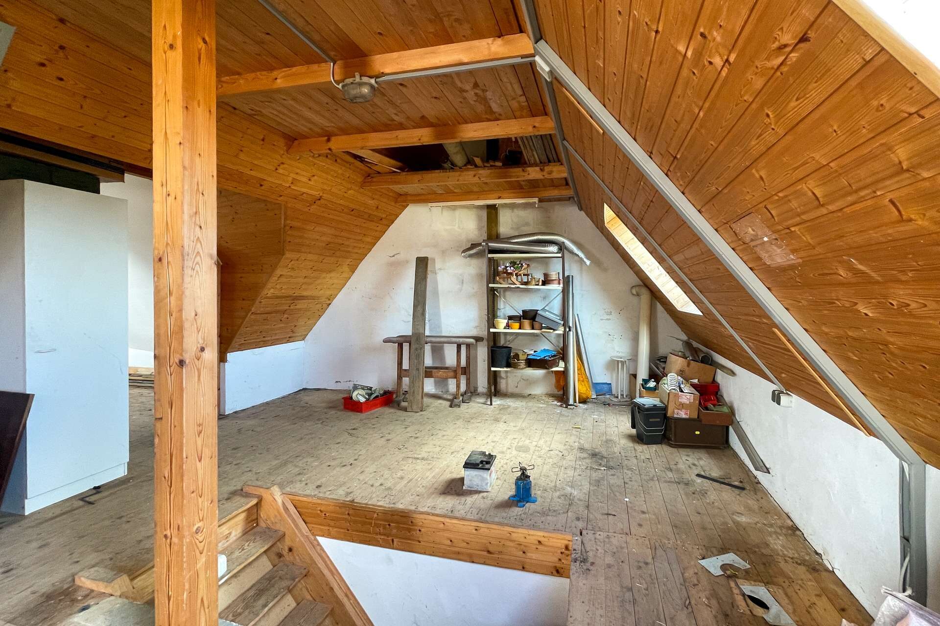 Das Dachgeschoss überzeugt mit einem großen, ausgebauten Raum sowie zusätzlicher Staufläche und weiterer Ausbaureserve.