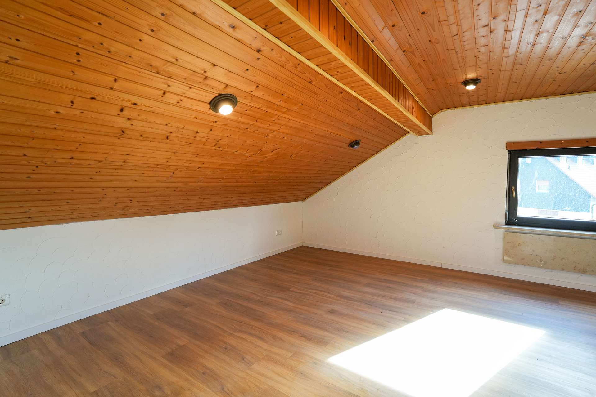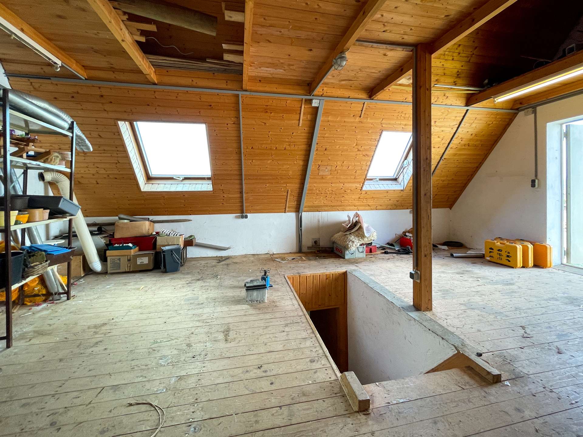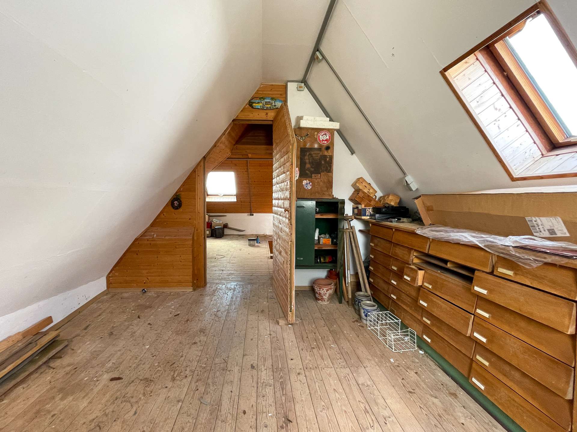 Das Dachgeschoss überzeugt mit einem großen, ausgebauten Raum sowie zusätzlicher Staufläche und weiterer Ausbaureserve.