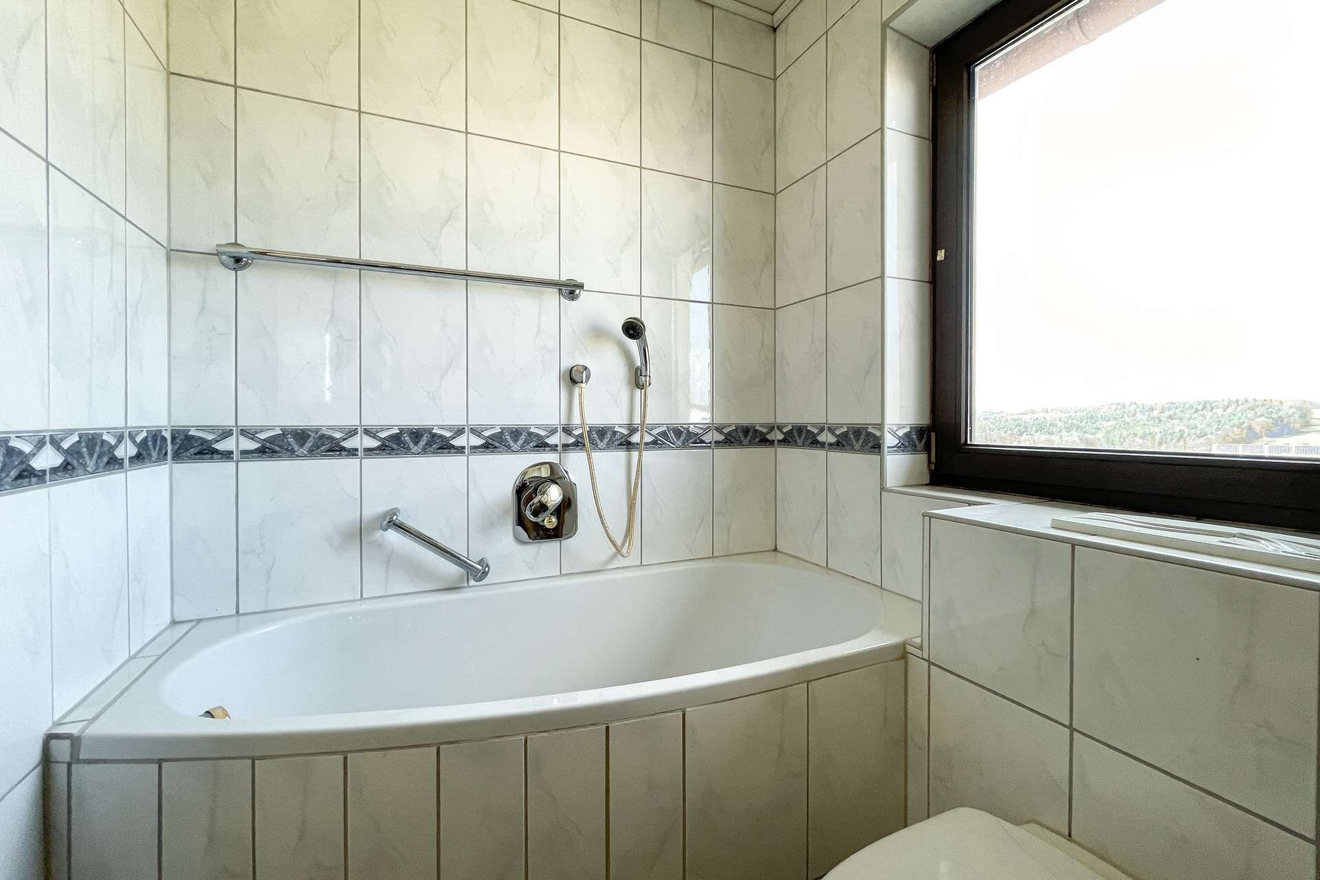 Im Obergeschoss stehen Ihnen ein helles Badezimmer mit Badewanne sowie vier weitere Zimmer zur Verfügung. Eines davon bietet Zugang zu einem Balkon mit herrlichem Weitblick. Ob Schlafzimmer, Kinderzimmer oder Büro – die Nutzungsmöglichkeiten sind vielfältig.
