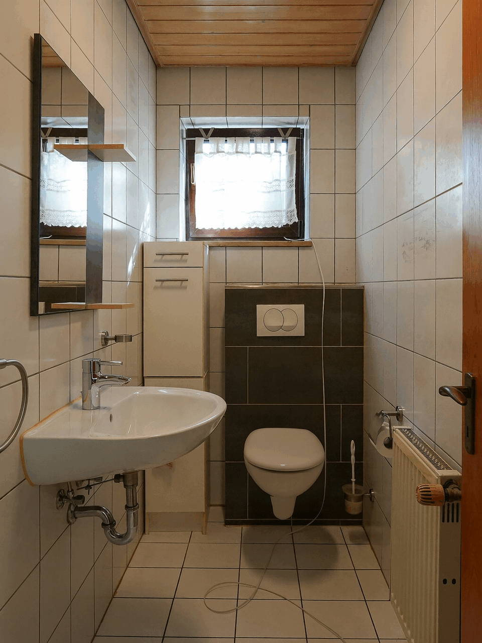 Der Keller bietet zusätzliche Abstell- und Lagermöglichkeiten, während das Erdgeschoss mit klassischen Wohnräumen und das Obergeschoss mit Schlafzimmern und Stauraum ausgestattet ist. Hier lässt sich durch eine Kernsanierung ein behagliches, eigenständiges Zuhause schaffen.