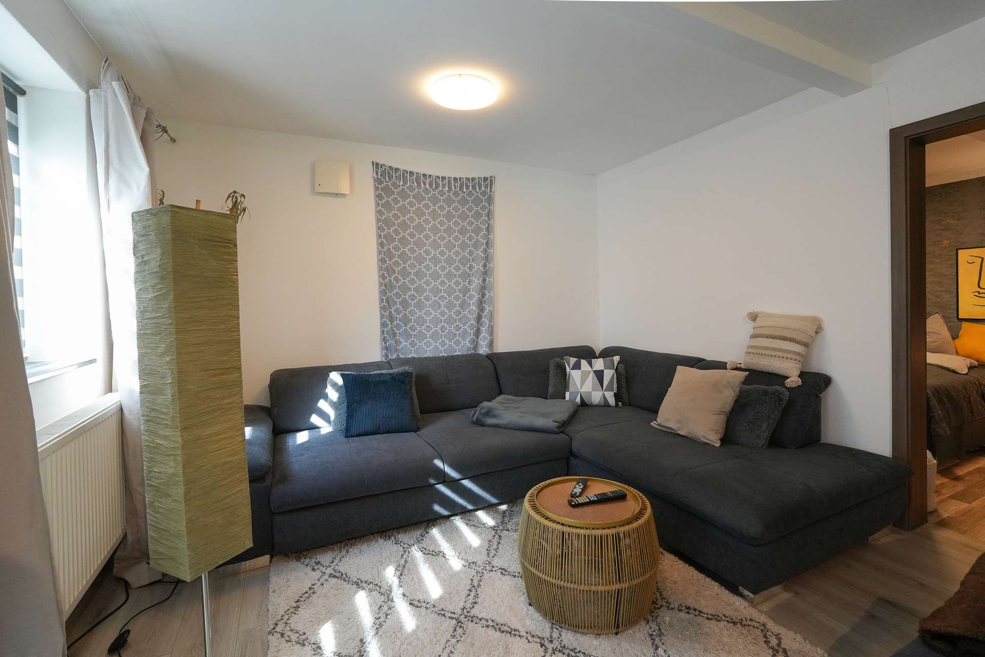 Die rechte Gebäudehälfte bietet eine separate Wohnung von ca. 50 m², bestehend aus einem Wohn-/Essbereich, einem Schlafzimmer und einem Bad.