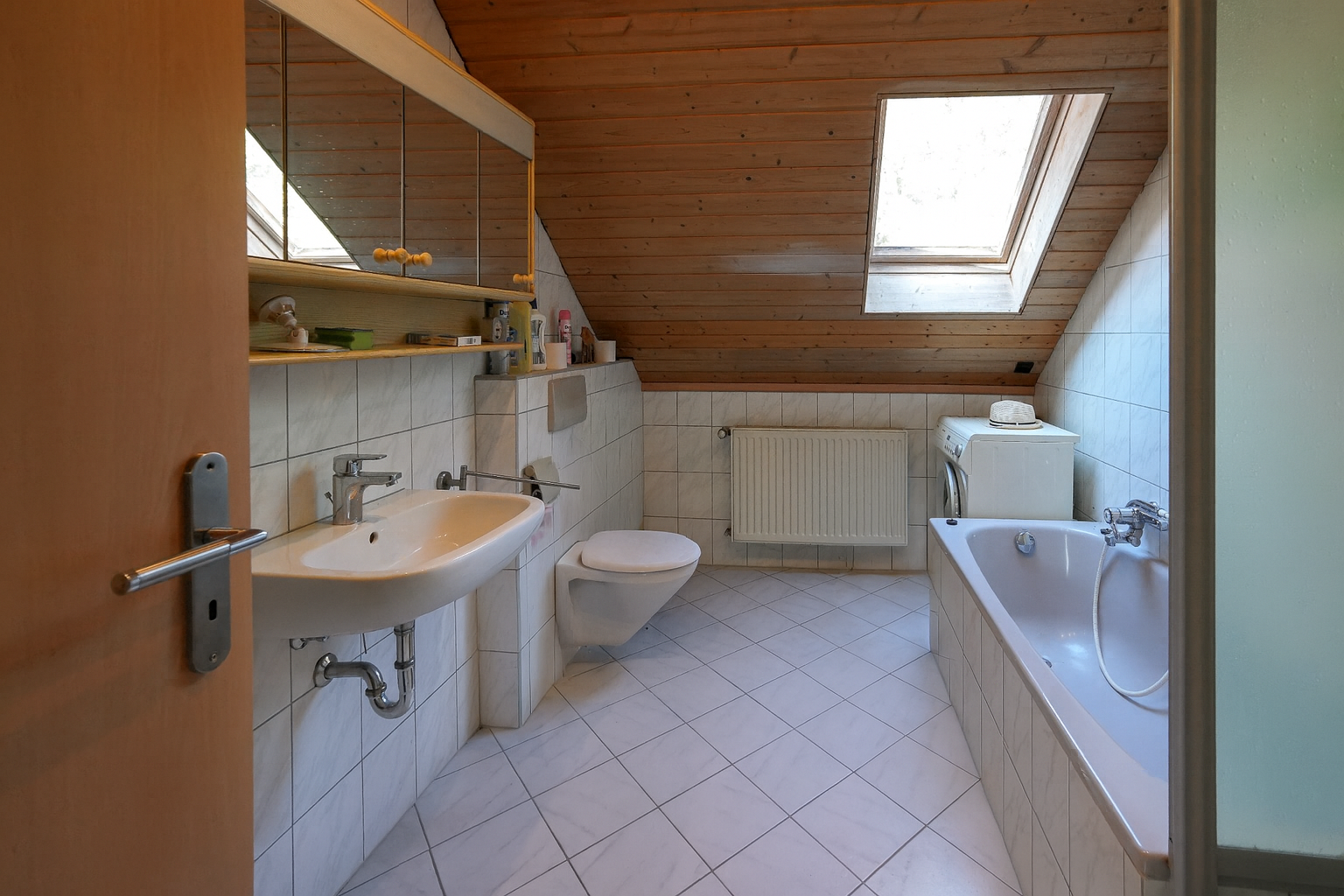 Über der Hauptwohnung befindet sich eine Dachgeschosswohnung in vergleichbarer Größe. Teile des Geschosses sind bereits ausgebaut, andere Bereiche noch im Rohzustand – ideal für individuelle Gestaltungsmöglichkeiten.