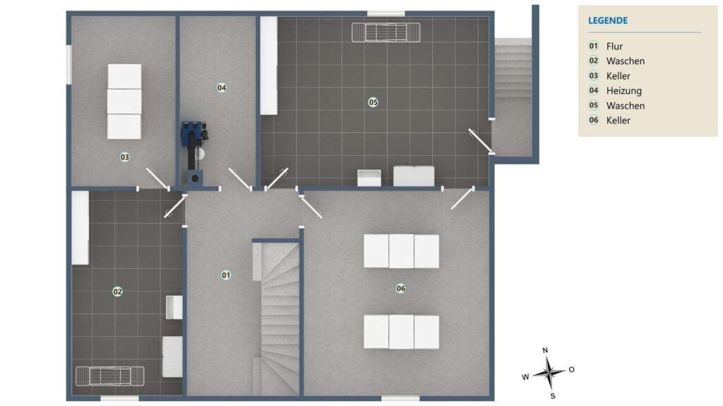 Der Keller des Hauses verfügt neben drei Lagerräumen und einer Waschküche auch über einen Eingang von außen.
