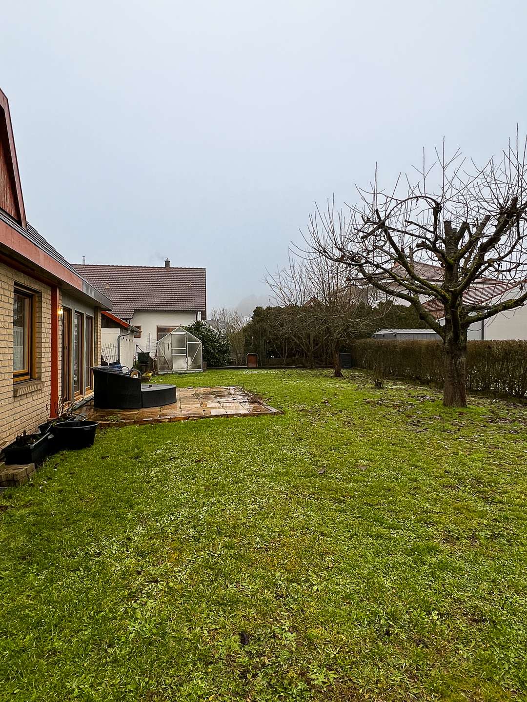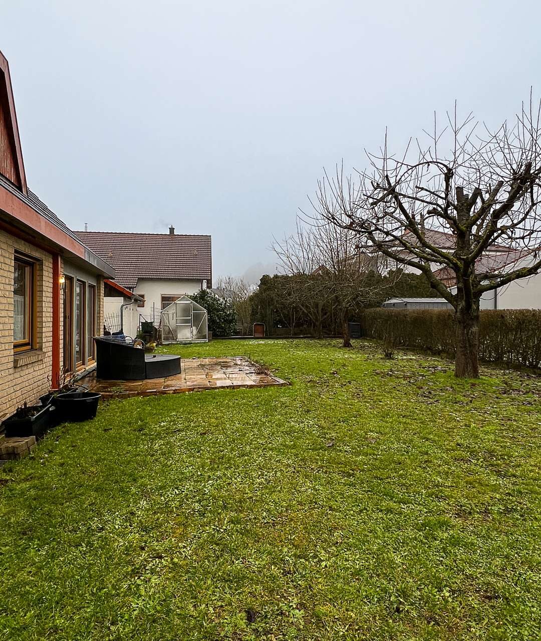 Der wunderschöne Garten umschließt das Haus auf drei Seiten und bietet neben Obstbäumen eine Hecke, die den Garten umschließt.