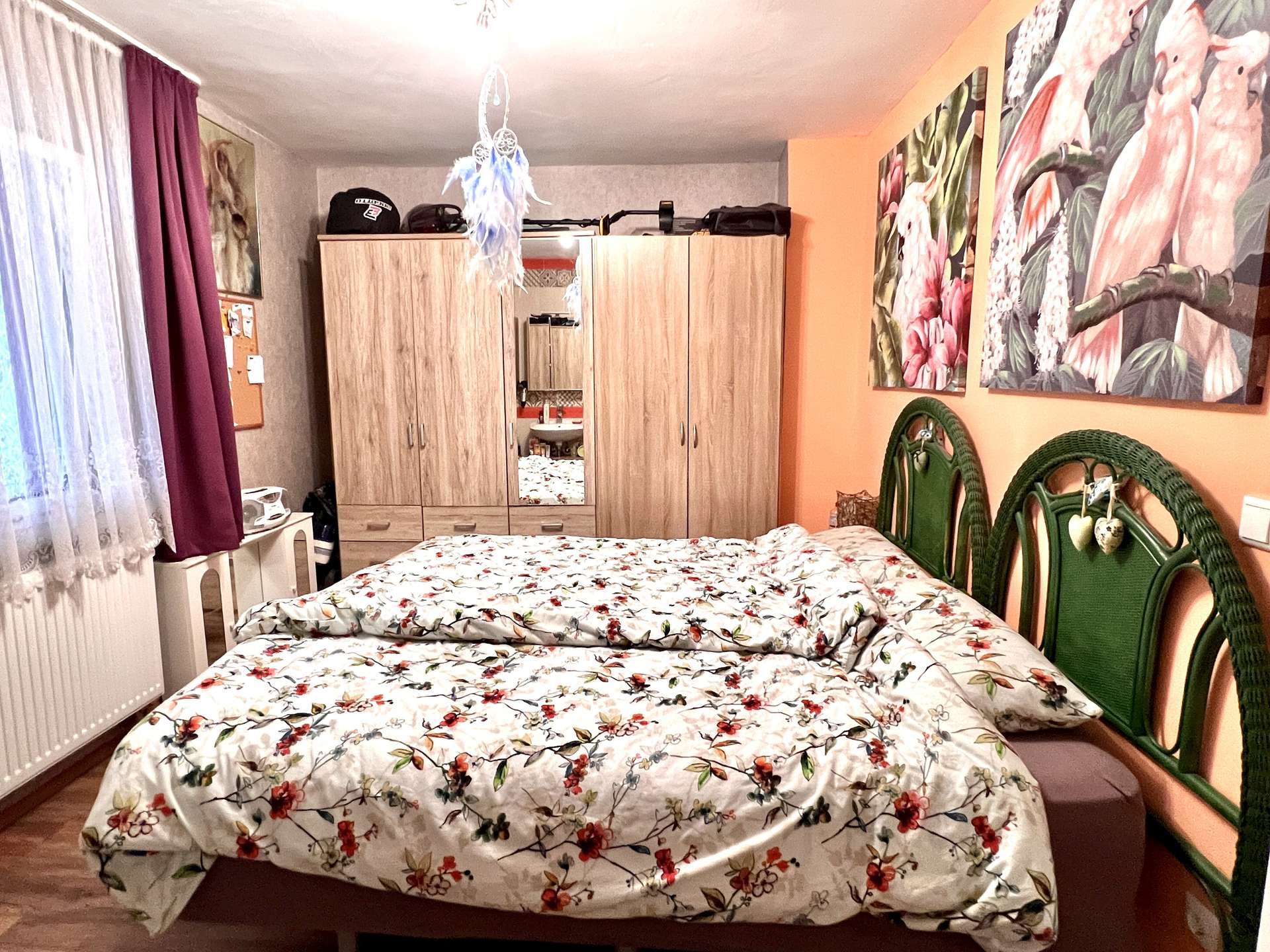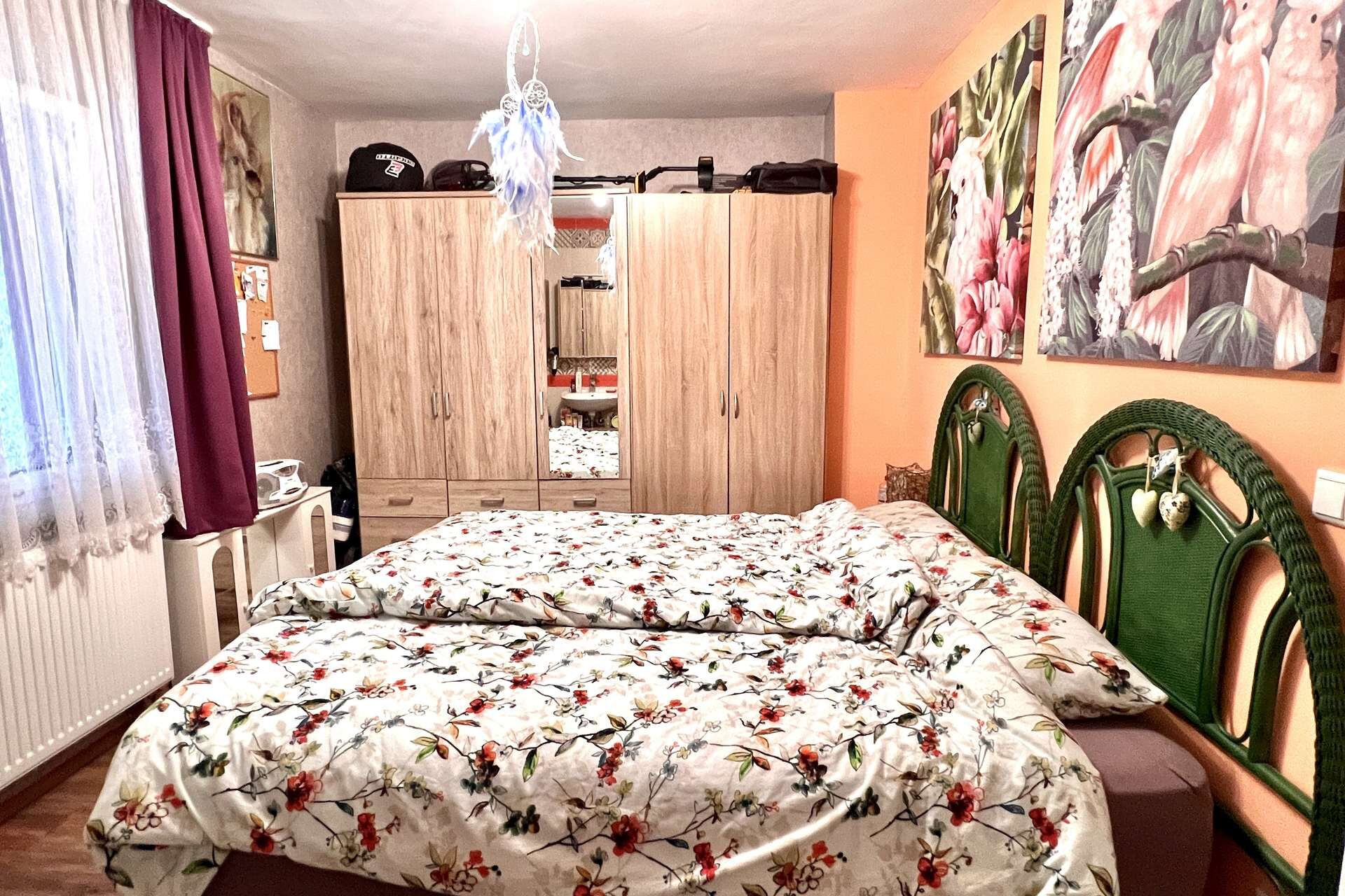 Über die Echtholztreppe gelangen Sie in das Obergeschoss, hier befindet sich eine zweite Küche, ebenfalls möbliert. Des Weiteren verfügt diese Etage über ein Schlafzimmer und ein Ankleidezimmer. Das größte Zimmer wird aktuell als Wohn-Esszimmer genutzt. Durch das angrenzende Wannenbad und Ankleidezimmer würde sich hier eine Nutzung als Hauptschlafzimmer anbieten. Ob Schlafzimmer, Büro oder Kinderzimmer, die Räume lassen sich vielfältig nutzen und Ihren Bedürfnissen anpassen. Auch einer Nutzung als Zweifamilienwohnhaus steht nichts im Wege, hier können Sie Ihren Wohntraum einrichten.