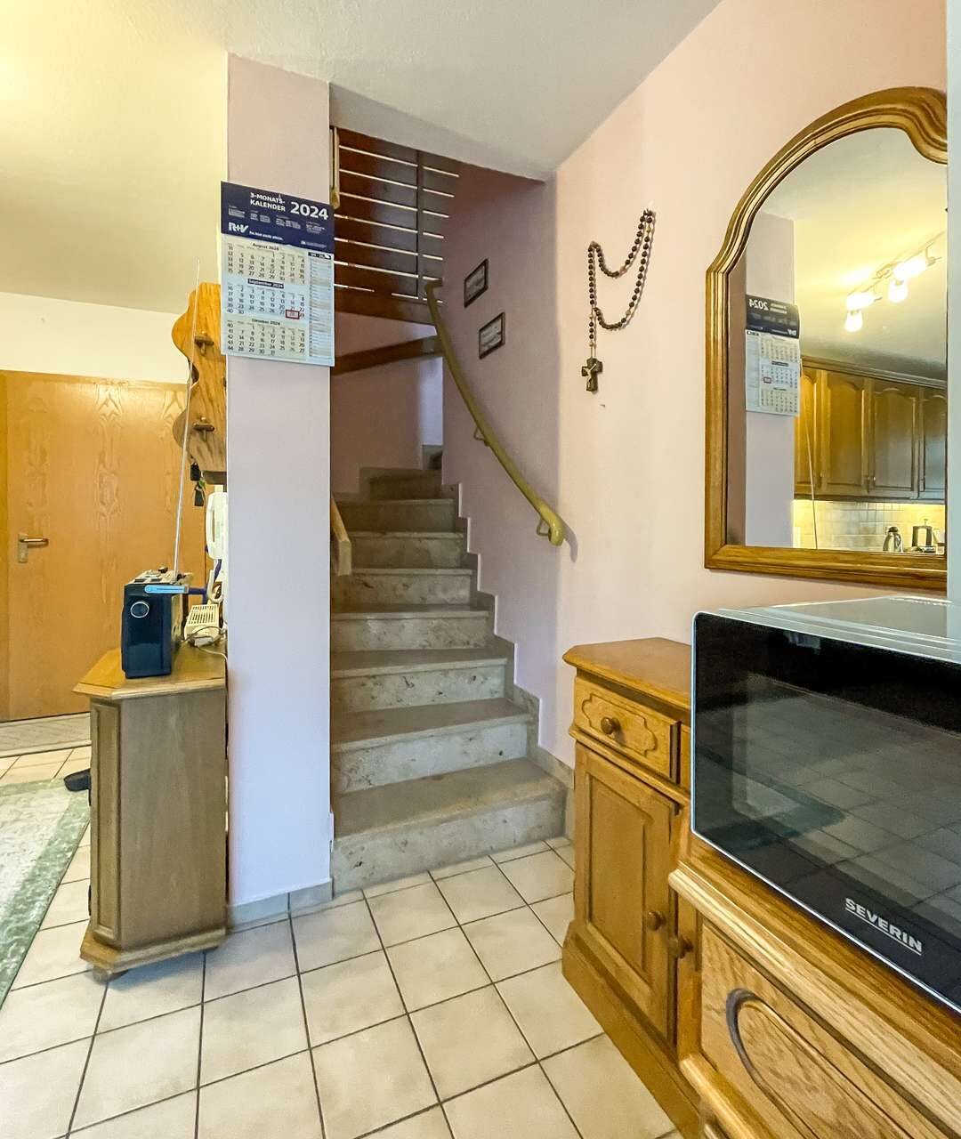 Im Erdgeschoss betreten Sie die Wohnung durch einen einladenden Flur, der direkt in die offene Küche führt. Die moderne Küche mit Essbereich ist hell und freundlich gestaltet und lädt zu geselligen Kochabenden ein. Zudem verfügt diese Etage über ein praktisches Gäste-WC. Von hier aus gelangen Sie auch auf die Terrasse, die zum Entspannen im Freien einlädt, sowie in den angrenzenden Garten, der viel Platz für Freizeitaktivitäten bietet.