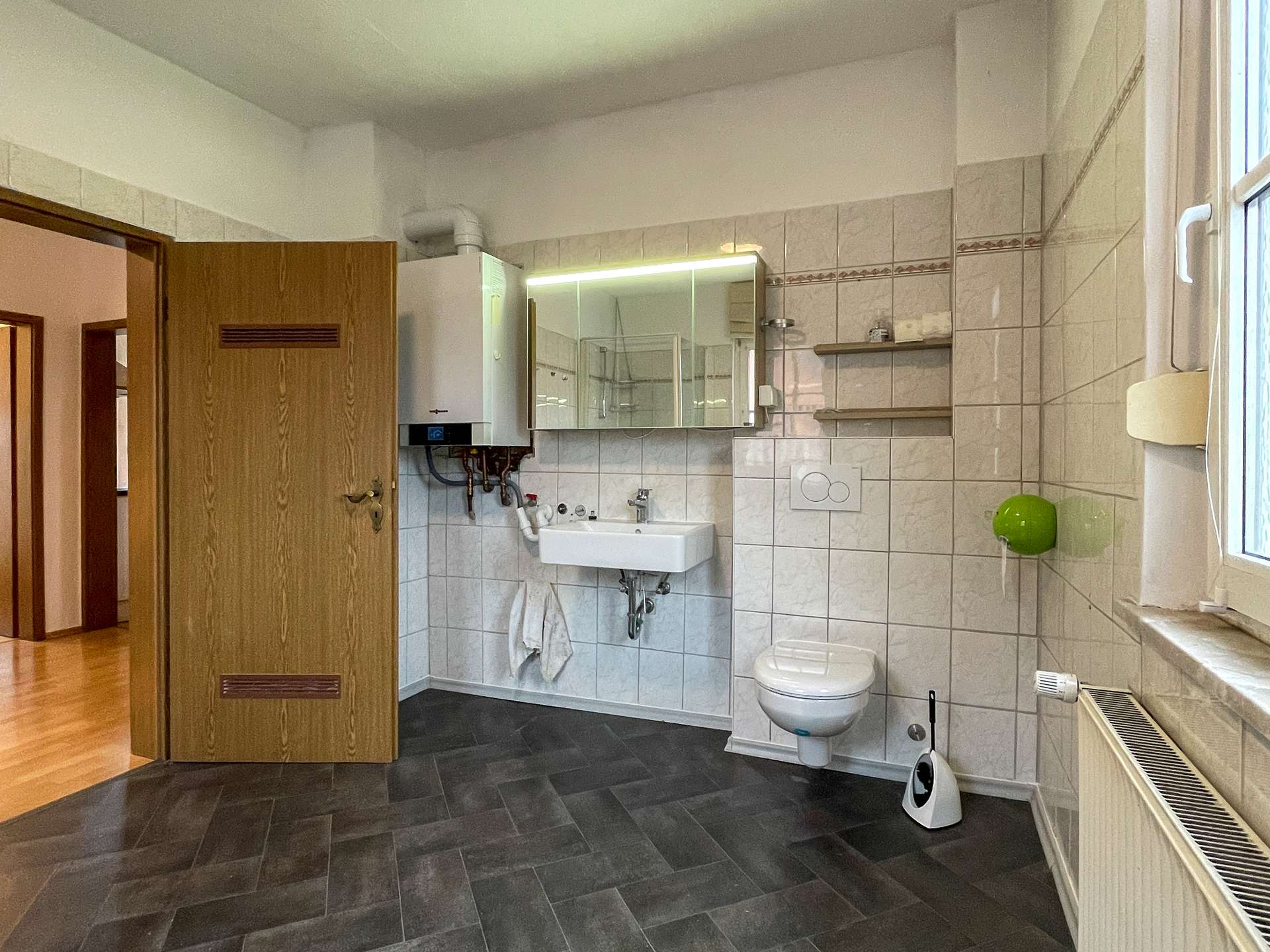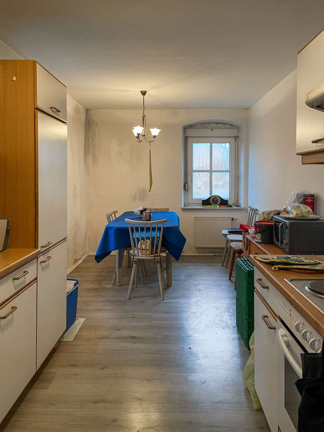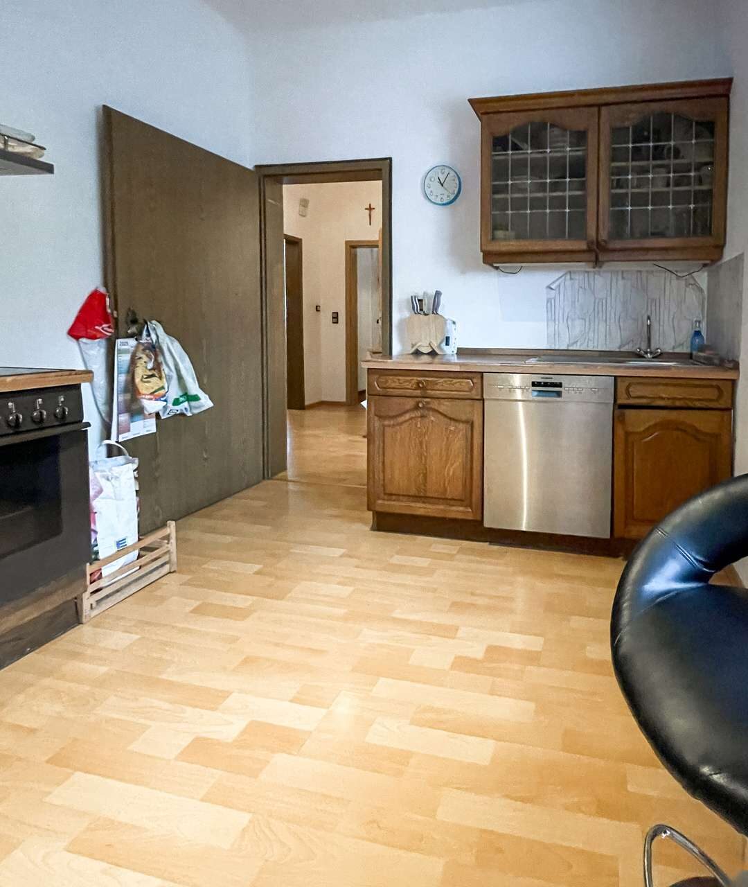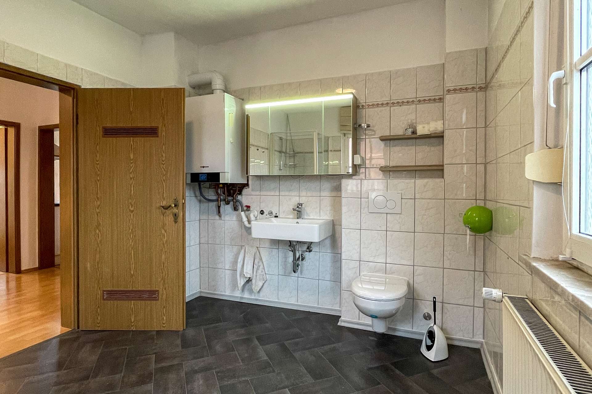 Wohnung 1 (Souterrain): Diese großzügige Wohnung bietet 102 m² Wohnfläche und besteht aus 3 Zimmern, einer Küche mit Einbauküche, einem Badezimmer mit Dusche, Wanne und Tageslicht. Zusätzlich gibt es Abstellräume.