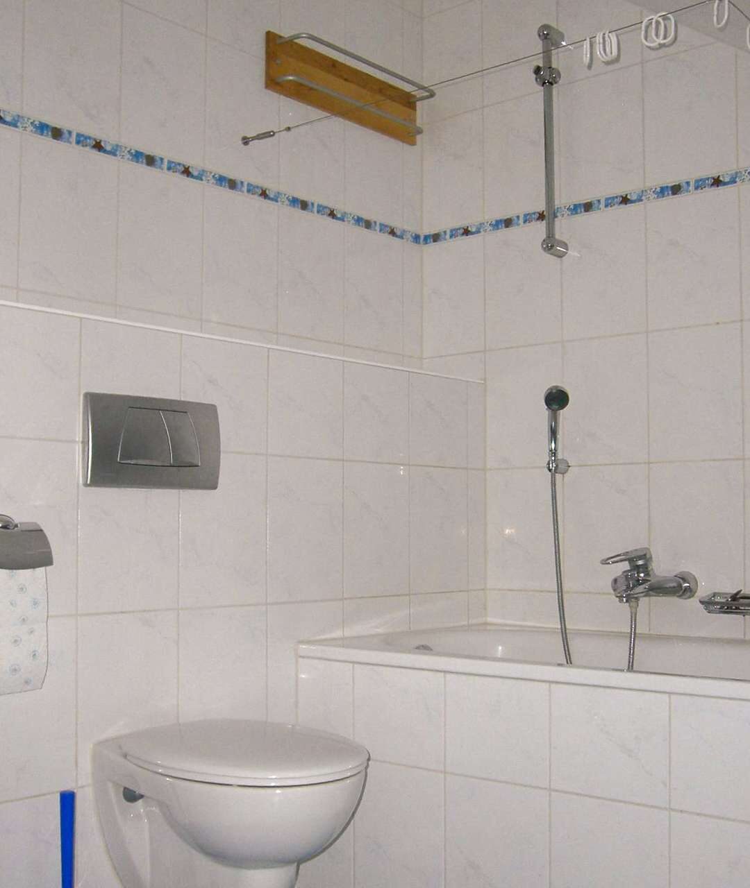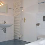 Die separate Küche ist funktional angelegt und bietet ausreichend Arbeits- und Stauraum. Das gepflegte Tageslichtbadezimmer mit Badewanne fügt sich zeitlos in das Gesamtbild ein und unterstreicht den soliden Zustand der Wohnung.