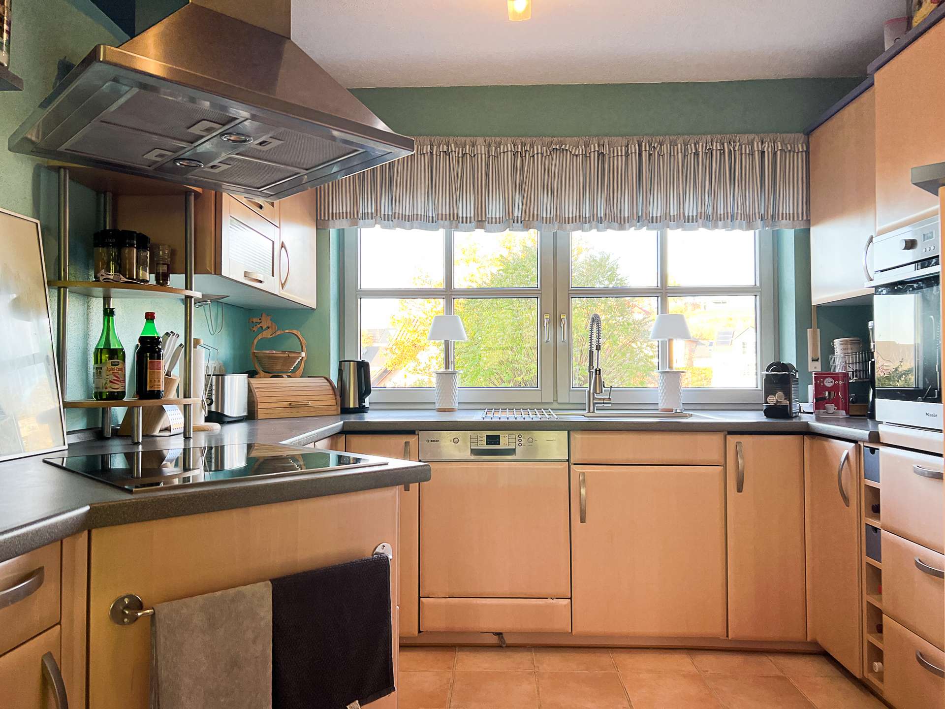 Der großzügige Eingangsbereich mit Platz für die Garderobe nimmt Sie in Empfang – zudem verfügt der Eingangsbereich über ein Gäste-WC. Durch die Doppelflügeltür gelangen Sie in den offenen Wohn-Essbereich mit Echtholzparkett und bodentiefen Fenstern. Der wunderschöne Kamin sorgt im Winter für eine angenehme Wärme und Wohlfühlatmosphere. Der Wohnbereich wurde zwei Stufen tiefer angelegt, somit ist er zum Essbereich offen und in sich abgegrenzt. Das Wohnzimmer und das Esszimmer verfügen jeweils über einen Zugang zu den Terrassen auf der Süd und Westseite mit Anschluss zum Garten. Auf der ca. 20 m² großen Südterrasse können Sie wunderbar entspannen, vom Alltag abschalten oder mit Freunden grillen – hier können Sie das Leben wahrlich genießen. Die im Kaufpreis enthaltene Einbauküche bietet alles, um ein perfektes Dinner zu kreieren. Zudem verfügt diese Etage über ein weiteres Zimmer, mit kleiner Terrasse, dieses eignet sich perfekt als Büro oder Gästezimmer.