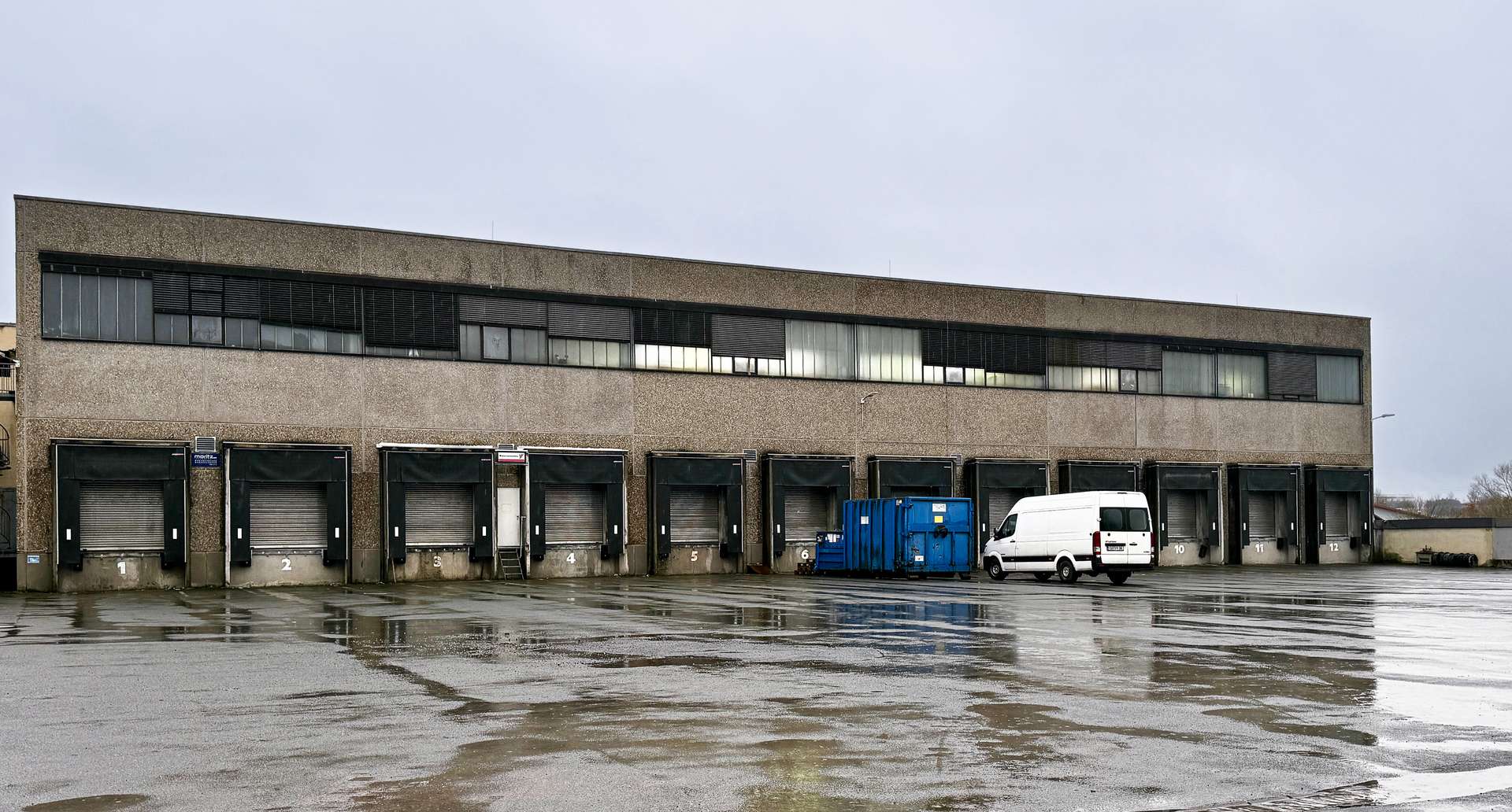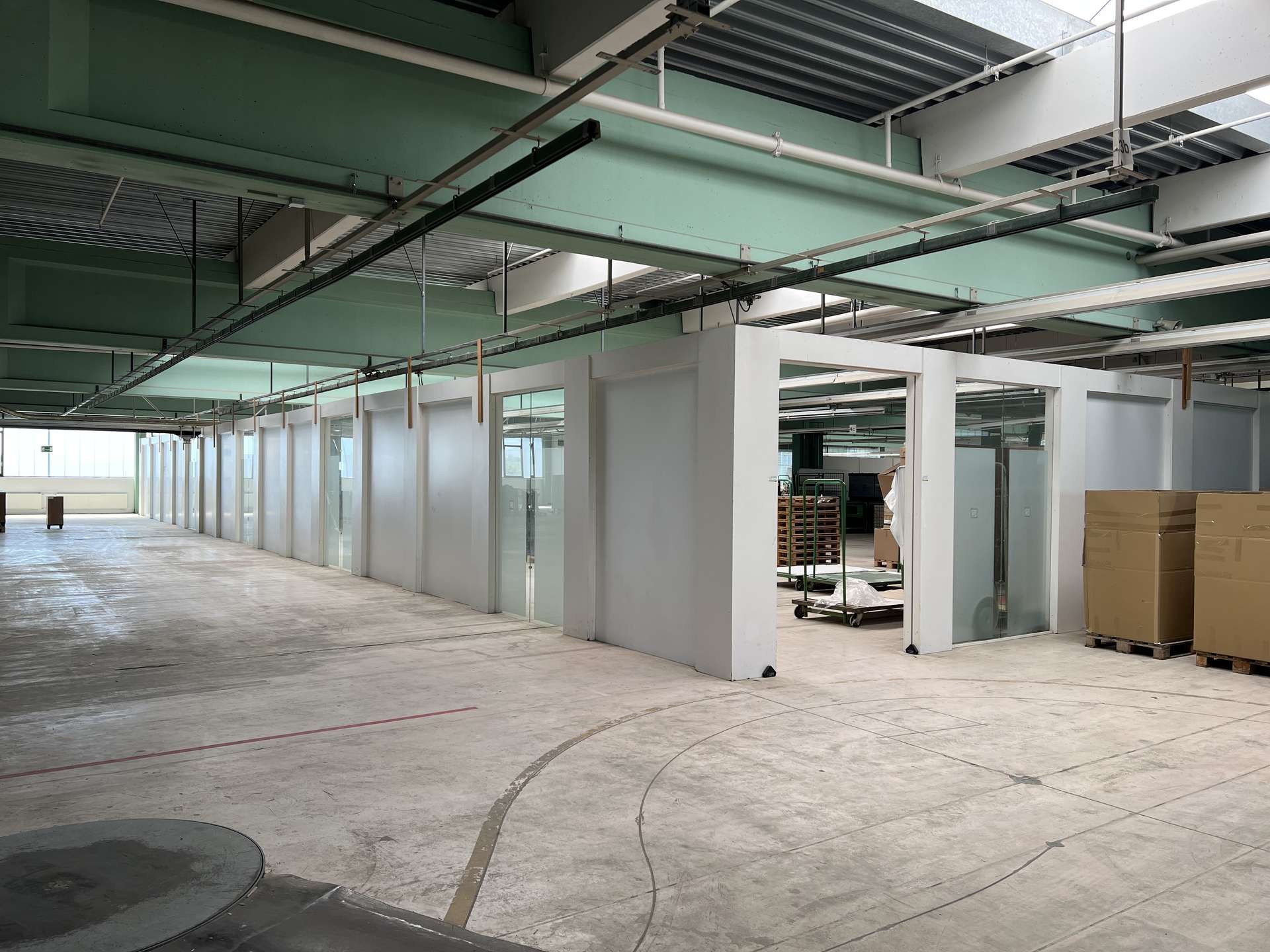 Die gesamte Fläche erstreckt sich über zwei Etagen. Das Objekt verfügt über acht Überladebrücken und weitere Rolltore, welche eine reibungslose Be- und Entladung in allen Hallenbereichen ermöglichen. Die Halle verfügt über eine Raumhöhe von 4,75 Metern. Die Traglast des Bodens beträgt bis zu 5 Tonnen. Auch die Stromversorgung ist für einen Gewerbebetrieb ausgelegt.