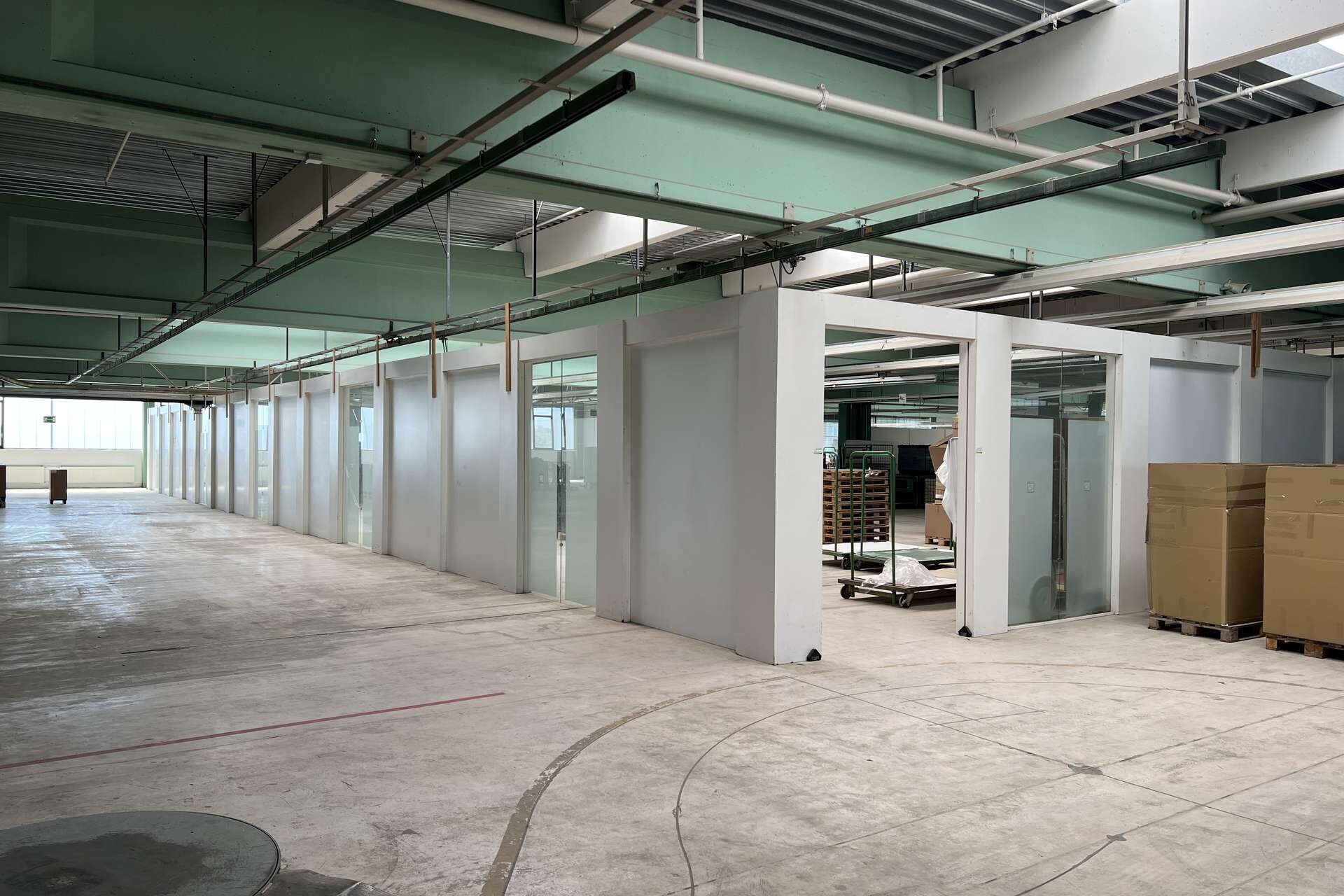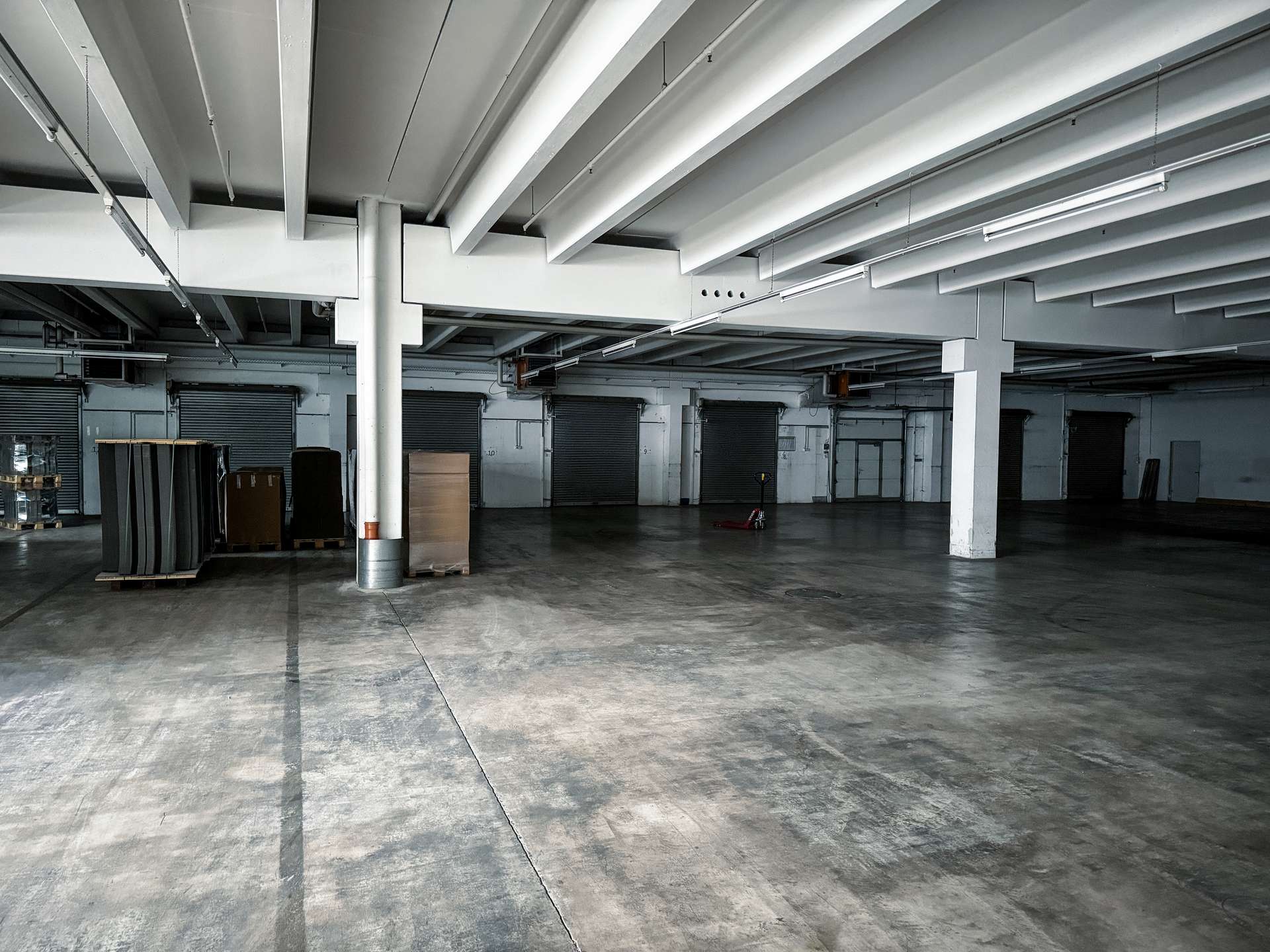 Die gesamte Fläche erstreckt sich über zwei Etagen. Das Objekt verfügt über acht Überladebrücken und weitere Rolltore, welche eine reibungslose Be- und Entladung in allen Hallenbereichen ermöglichen. Die Halle verfügt über eine Raumhöhe von 4,75 Metern. Die Traglast des Bodens beträgt bis zu 5 Tonnen. Auch die Stromversorgung ist für einen Gewerbebetrieb ausgelegt.