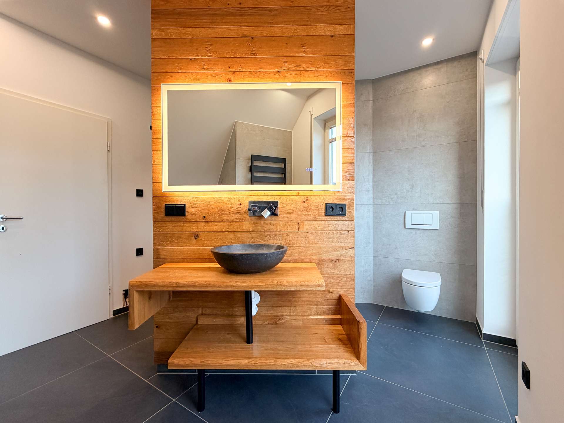 Das Obergeschoss begeistert mit einem modernen, hochwertigen Innenausbau. Mehrere Zimmer bieten flexible Nutzungsmöglichkeiten als Schlaf-, Kinder-, Gäste- oder Arbeitszimmer. Auch das Badezimmer wurde 2022 umfangreich modernisiert und erstrahlt nun in zeitgemäßem Stil mit hochwertigen Materialien.