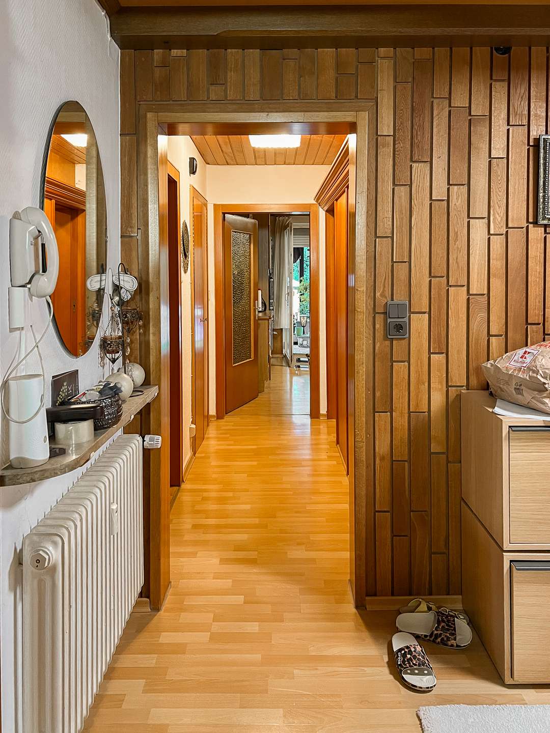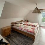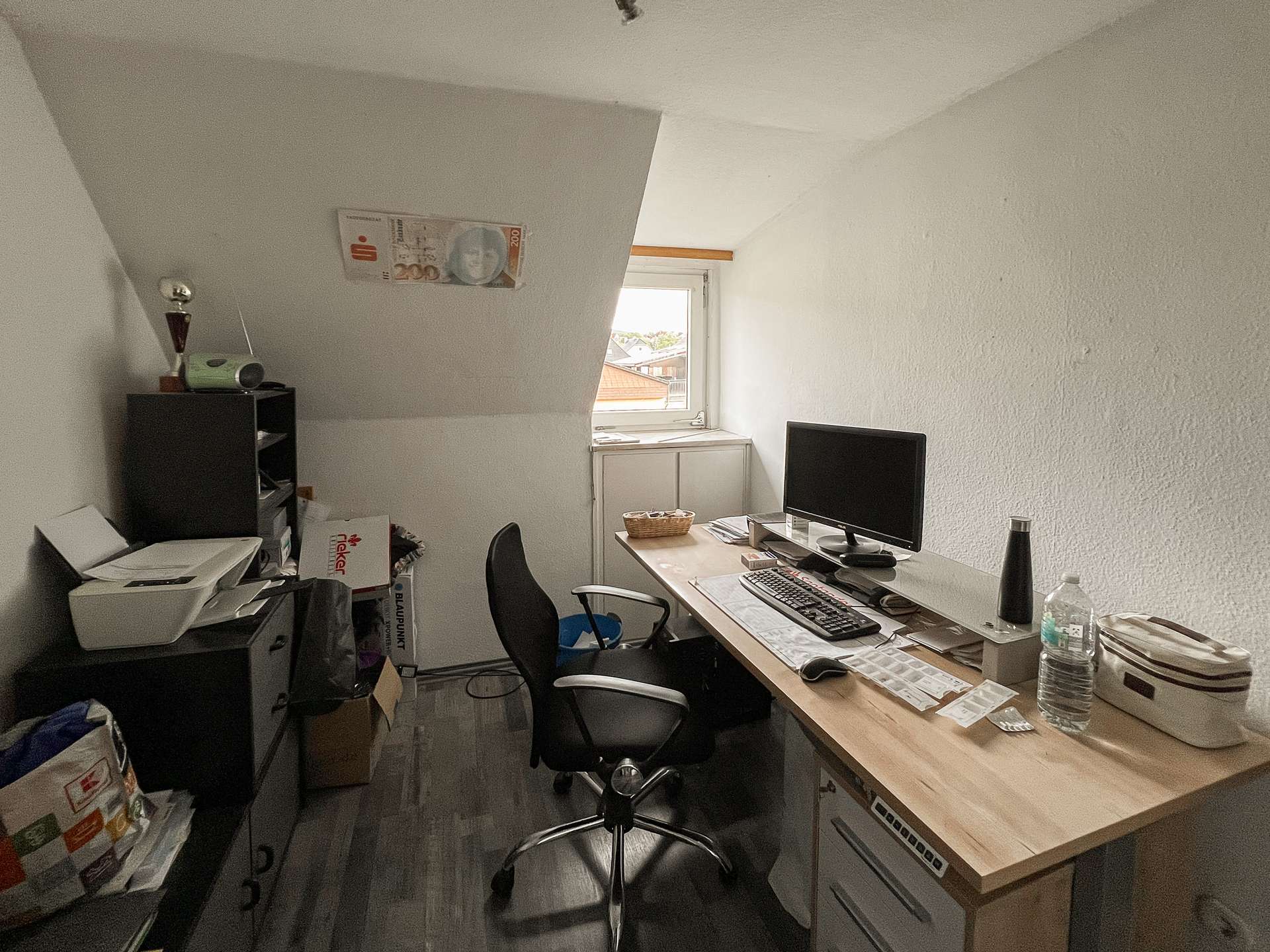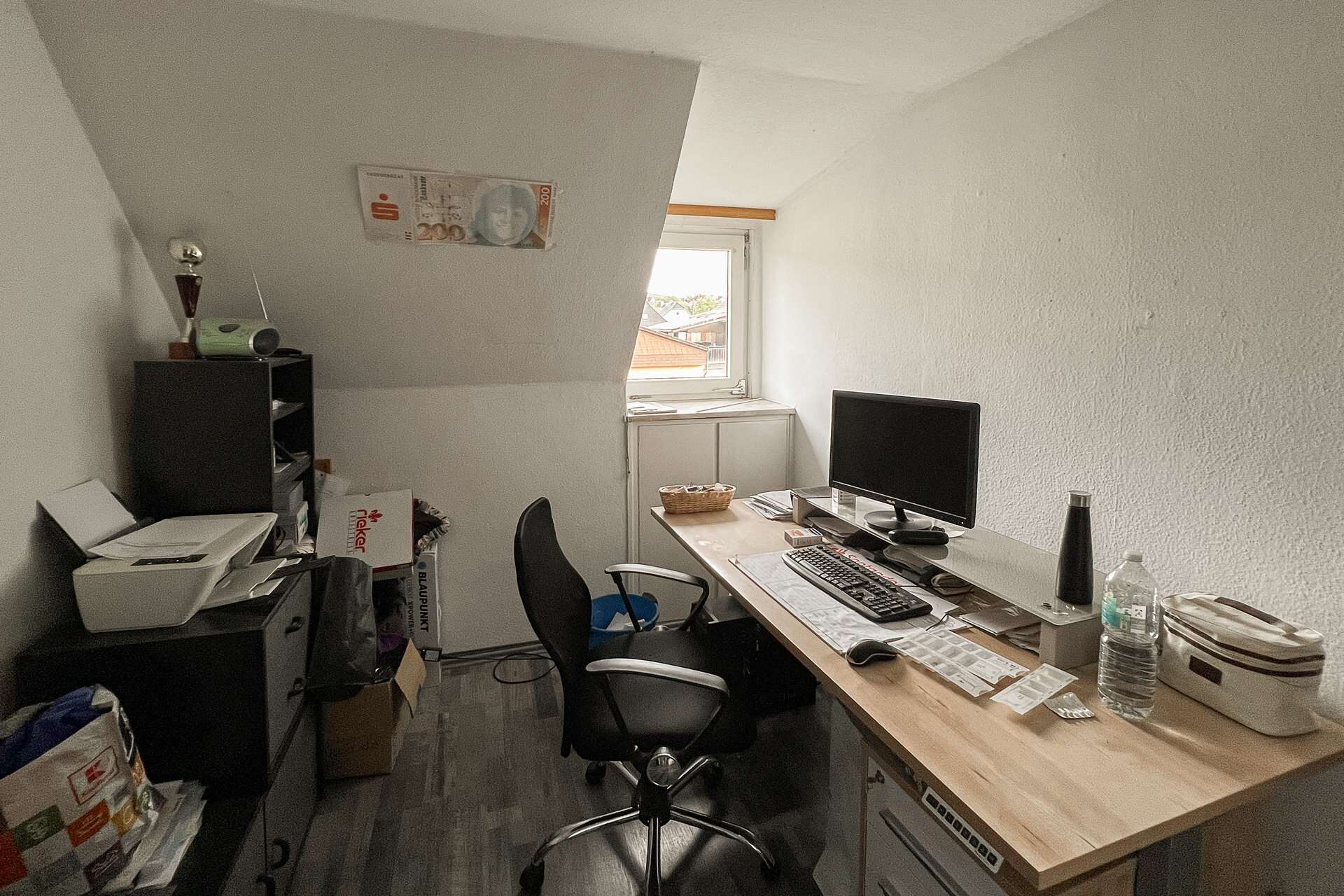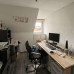 Das Obergeschoss bietet eine klassische Wohnaufteilung mit 2 Schlafzimmern, einem Badezimmer sowie einem Büro, das sich ideal zum Arbeiten oder als Kinderzimmer eignet. Hinzu kommen eine weitere Küche, ein Wohn- und Esszimmer mit viel Platz für gemeinsame Stunden sowie ein praktischer Abstellraum. Besonders attraktiv sind die Balkone, die einen schönen Ausblick ins Grüne ermöglichen und zusätzlichen Wohnkomfort bieten.