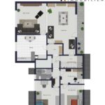 Im Erdgeschoss befinden sich großzügige Wohn- und Essbereiche, die durch ihre offene Gestaltung ein helles und freundliches Ambiente schaffen. Zudem steht eine praktische Einbauküche zur Verfügung, die direkt ins Familienleben integriert werden kann. Ein Gäste-WC sorgt für zusätzlichen Komfort im Alltag. Darüber hinaus stehen hier vier weitere Zimmer zur Verfügung, die flexibel genutzt werden können – beispielsweise als Büro, Gästezimmer oder Hobbyräume.