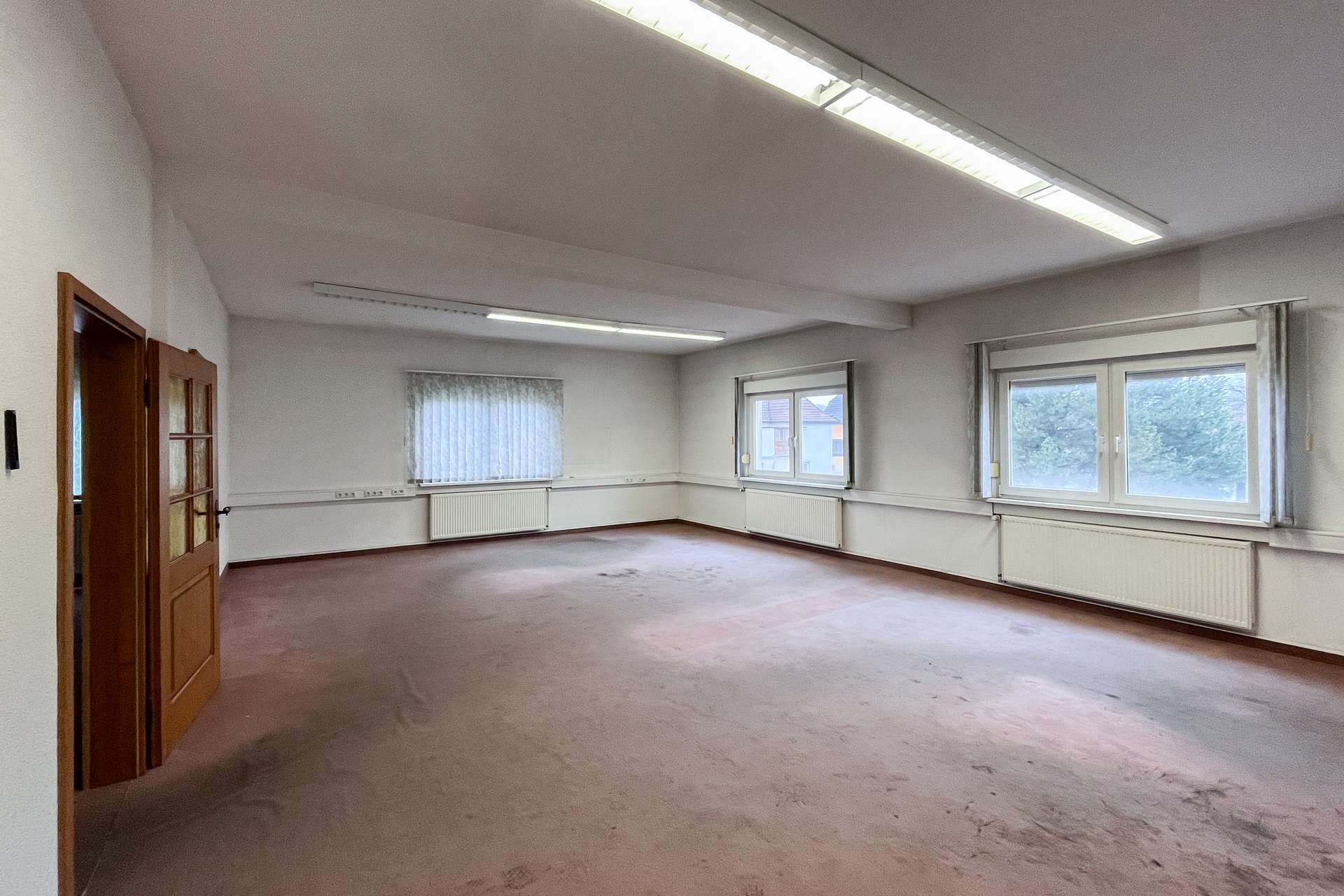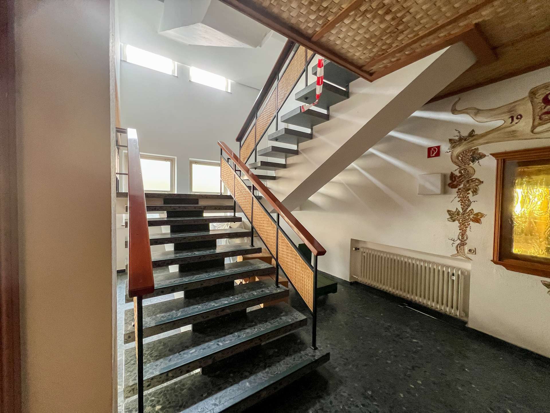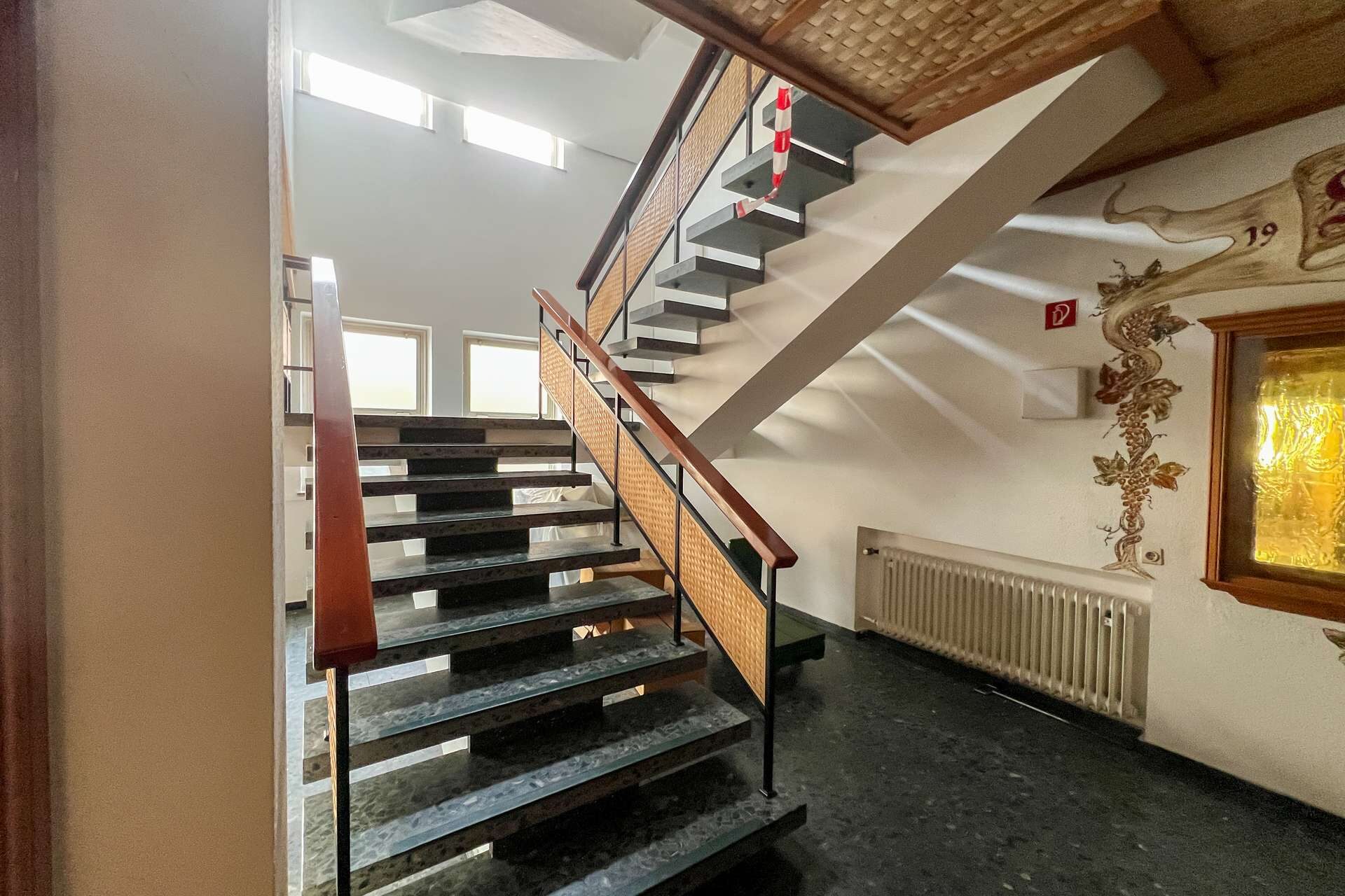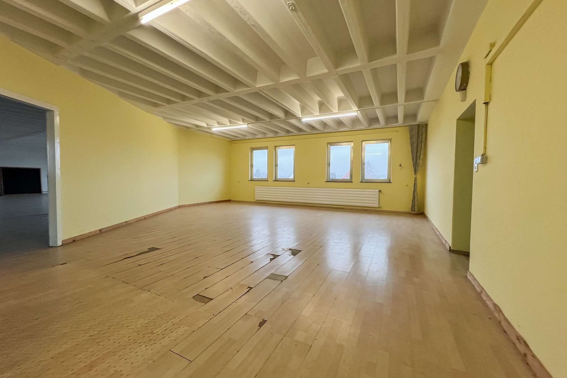 Neben dem Gastronomiebereich bietet das Erdgeschoss weitere weitläufige Gewerberäume, die flexibel genutzt werden können. Aufgrund des renovierungsbedürftigen Zustands eröffnen sie gleichzeitig die Chance, den Bereich nach eigenen Vorstellungen zu modernisieren und an aktuelle Anforderungen anzupassen.