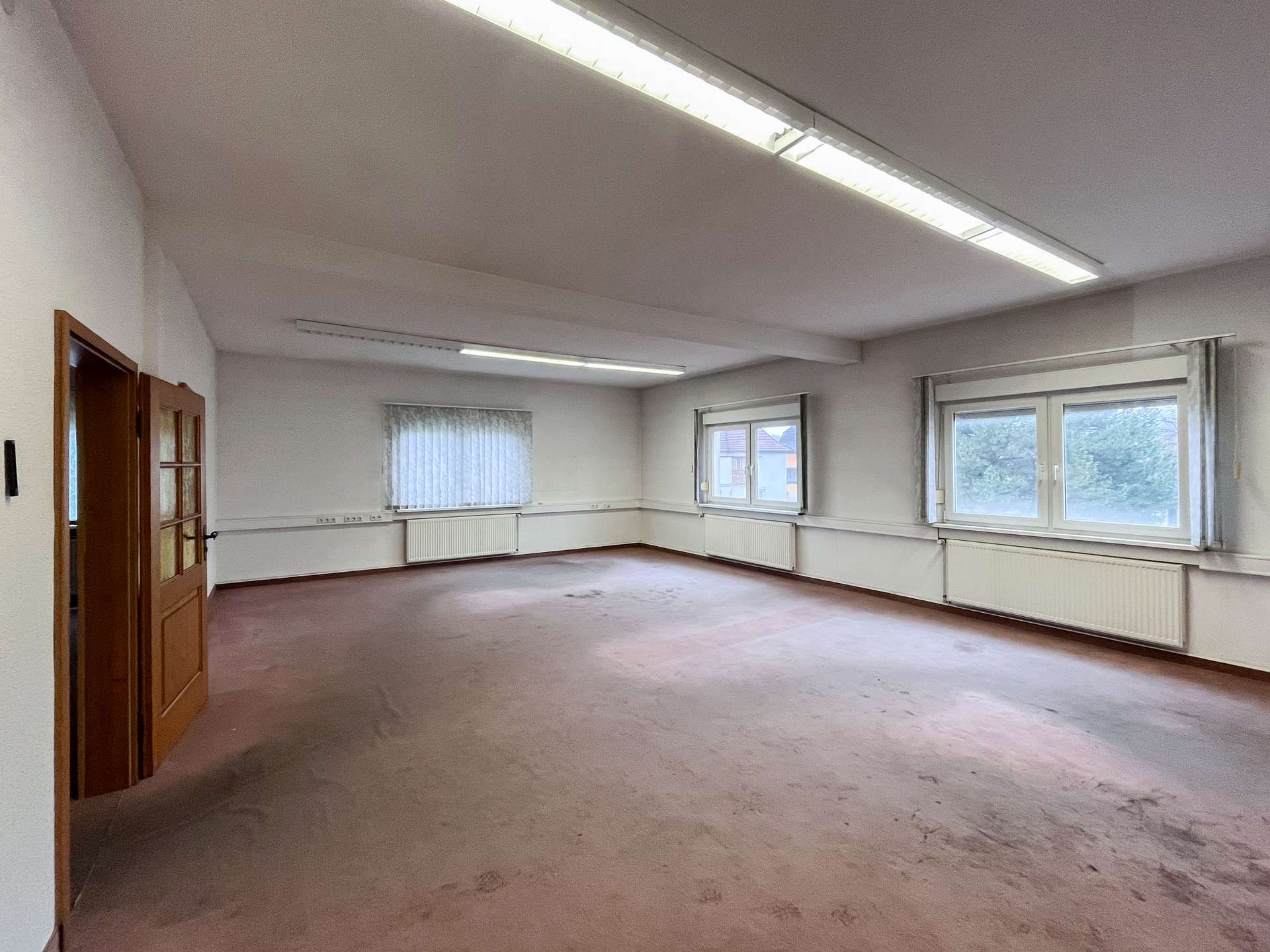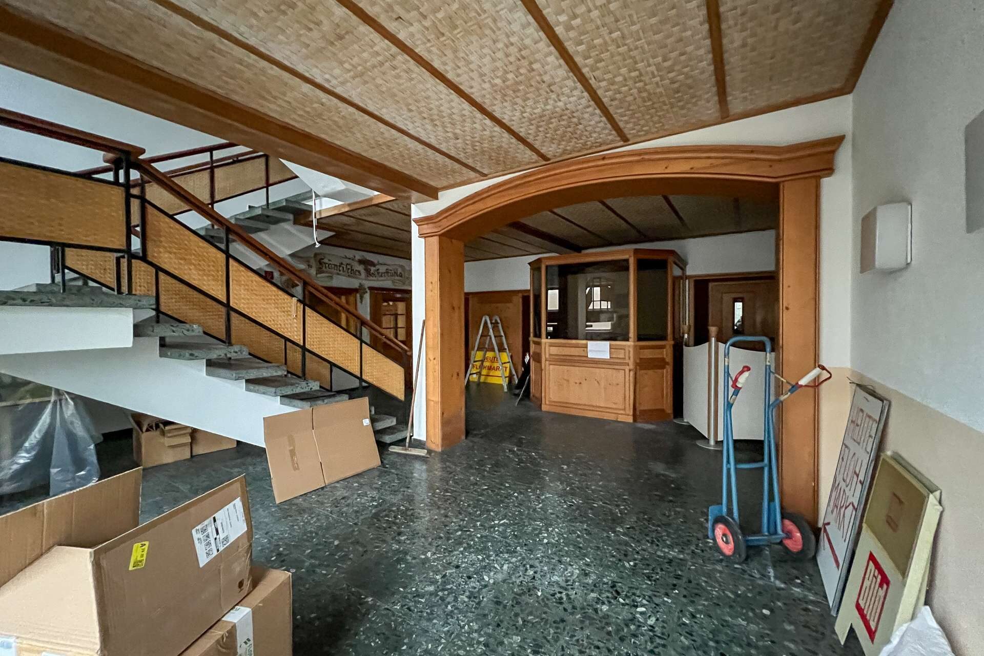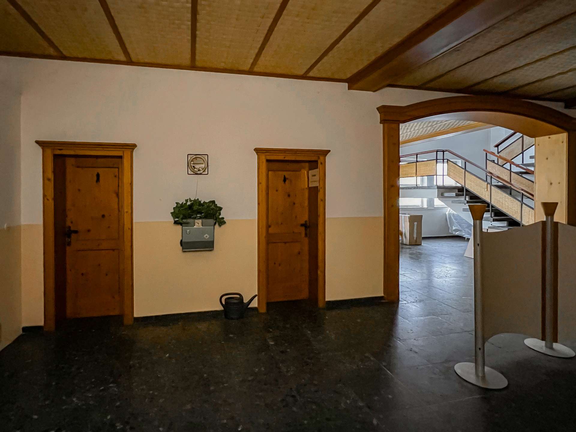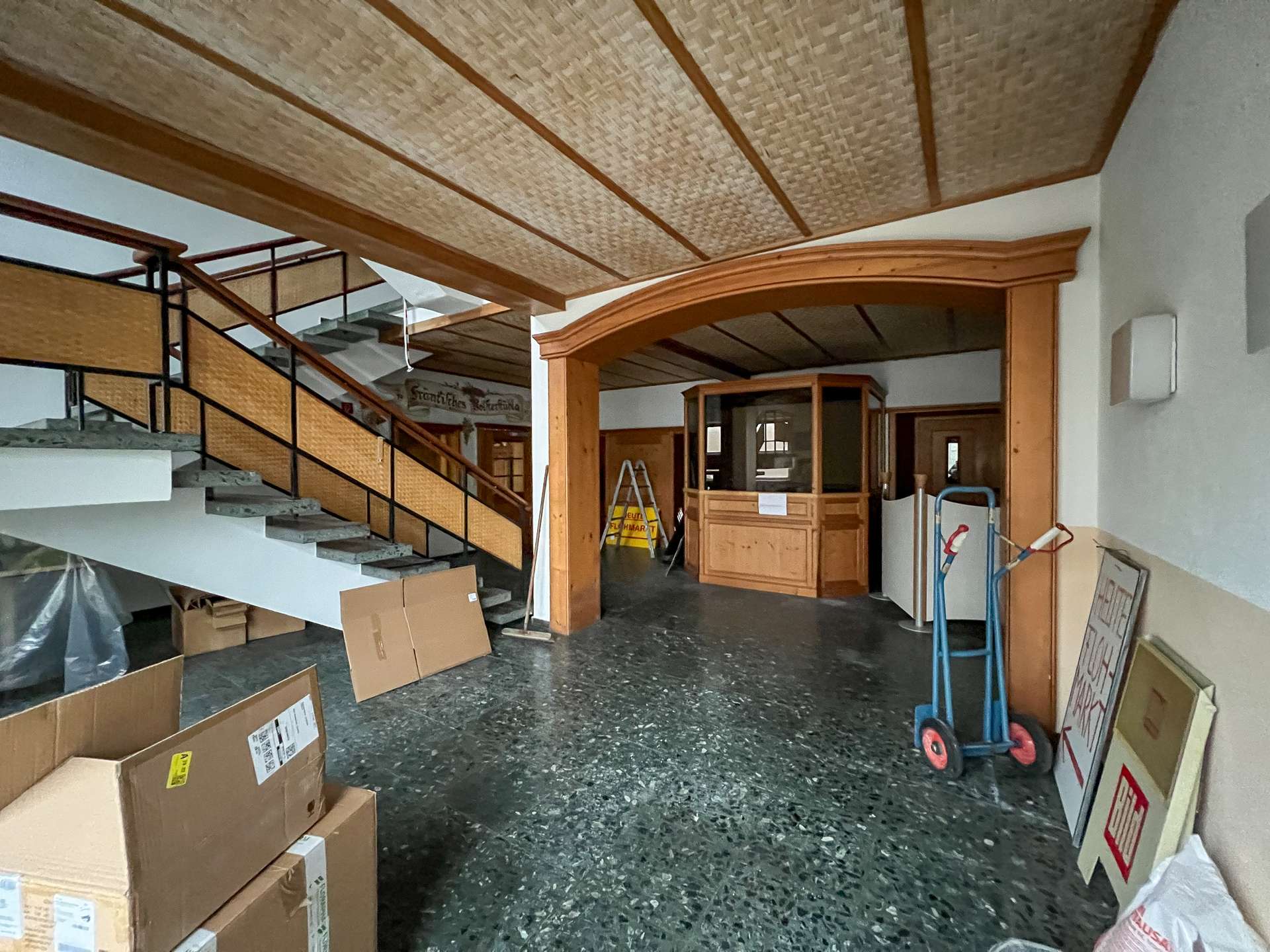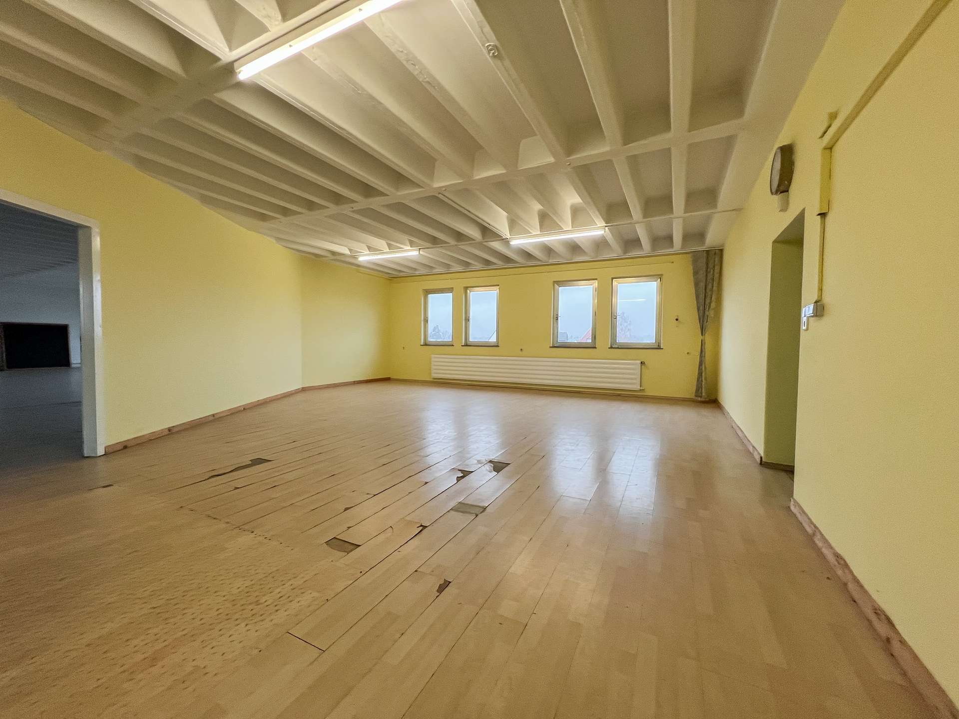 Neben dem Gastronomiebereich bietet das Erdgeschoss weitere weitläufige Gewerberäume, die flexibel genutzt werden können. Aufgrund des renovierungsbedürftigen Zustands eröffnen sie gleichzeitig die Chance, den Bereich nach eigenen Vorstellungen zu modernisieren und an aktuelle Anforderungen anzupassen.