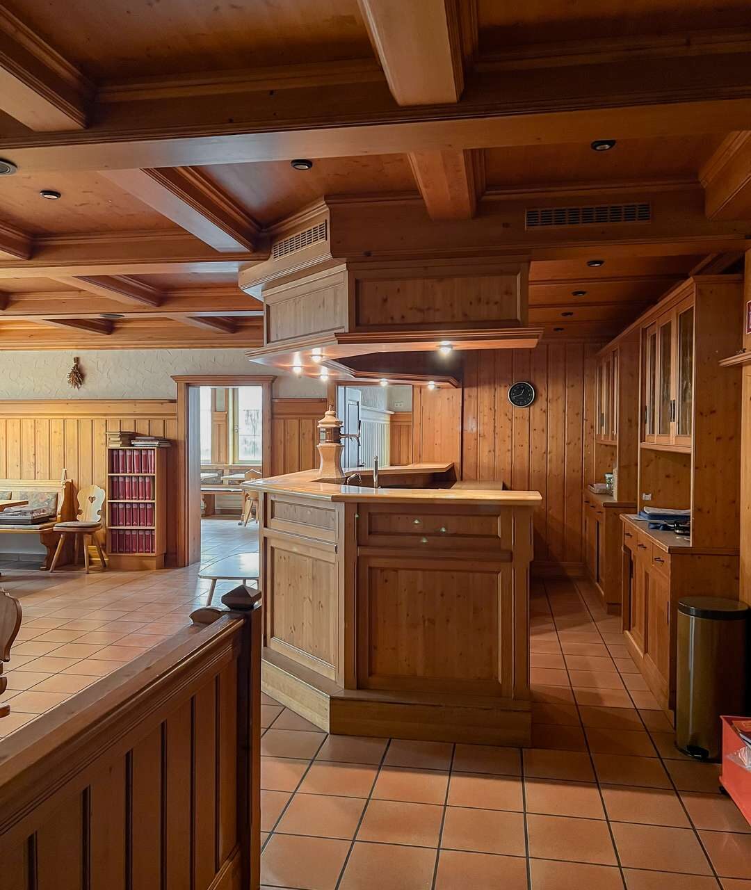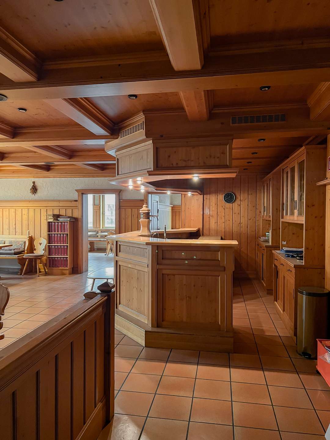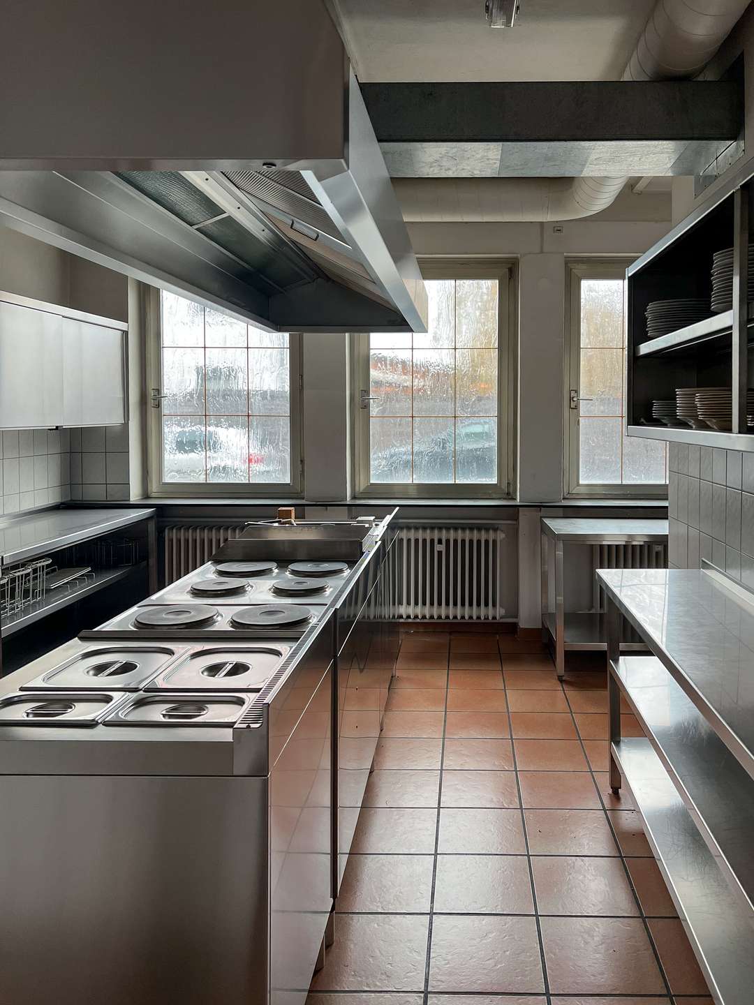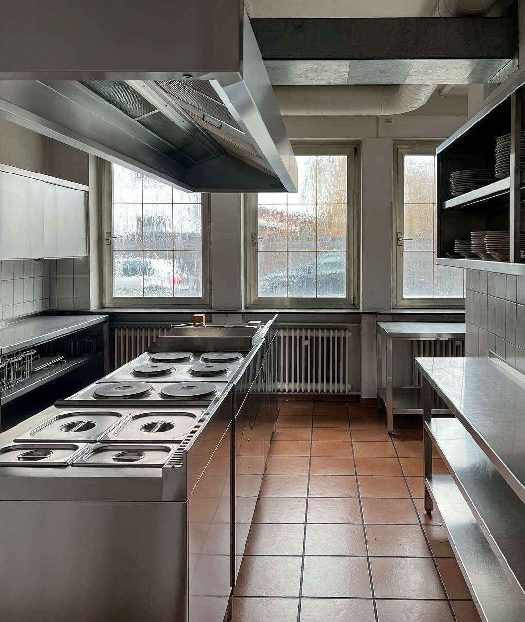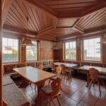 Im Erdgeschoss stehen großzügige Gewerbeflächen zur Verfügung, die sich für unterschiedliche gewerbliche Nutzungen eignen. Ein wesentlicher Bestandteil dieser Ebene ist die umfangreich ausgestattete Industrieküche, die funktional in den gastronomischen Bereich eingebunden ist. Sie verfügt über eine durchdachte Anordnung sowie kurze Wege zur angrenzenden Gastwirtschaft mit Ausschank und Bar, was einen reibungslosen Betriebsablauf ermöglicht. Ein separater Kühlraum sowie weitere Neben- und Arbeitsflächen ergänzen die gastronomische Struktur und schaffen praktische Voraussetzungen für eine Wiederaufnahme oder Neugestaltung des Betriebs.
