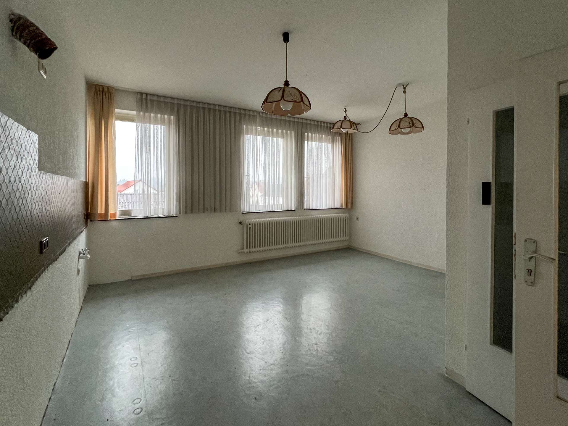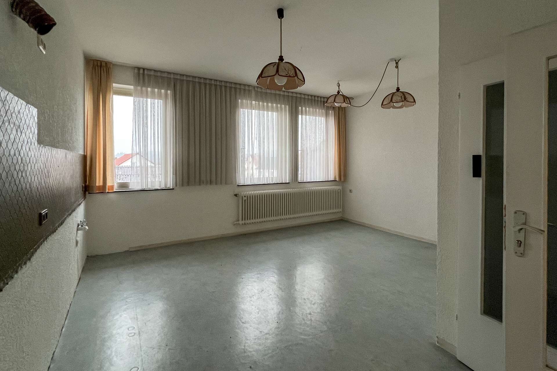 Die großzügigen Räume verfügen über eine funktionale Grundstruktur, benötigen jedoch Modernisierungen, um ihr volles Potenzial zu entfalten.