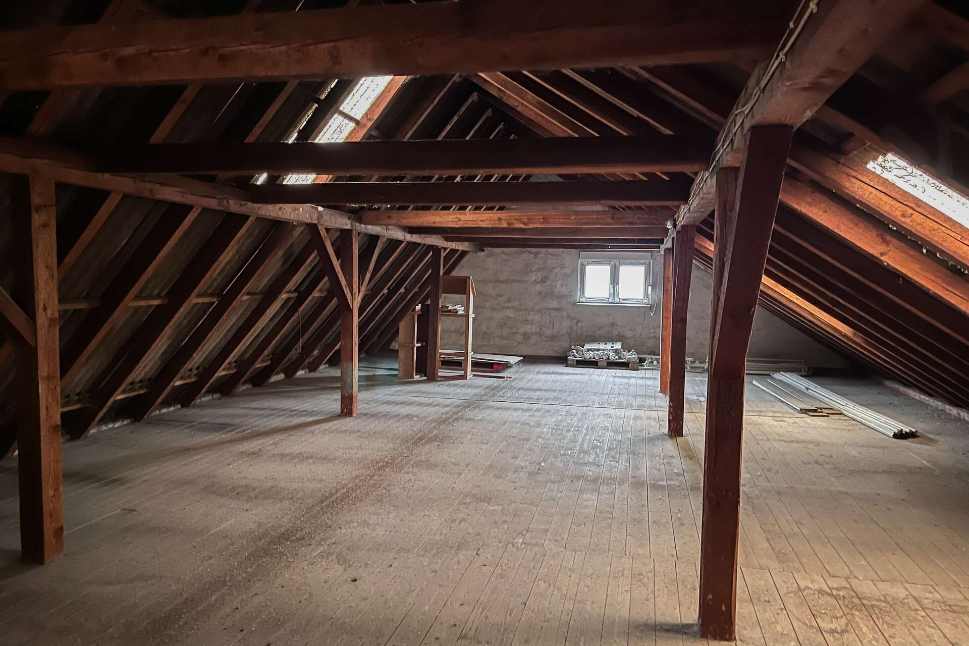Das Dachgeschoss wurde bereits ausgebaut, jedoch nicht vollends fertiggestellt.