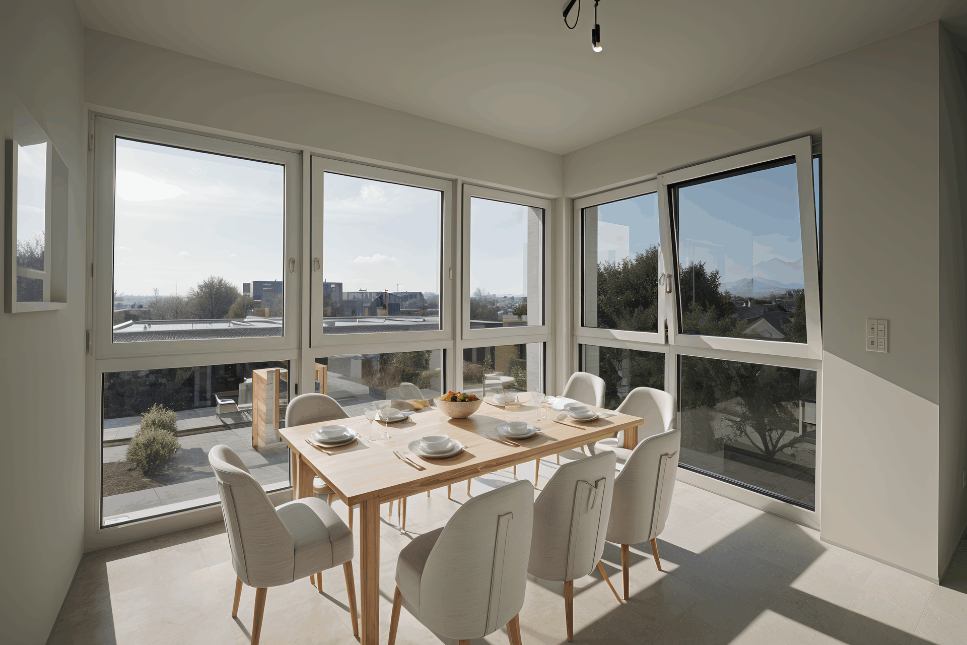 Dank der großen Fensterflächen genießen Sie eine lichtdurchflutete Atmosphäre und ein spürbar angenehmes Raumklima.