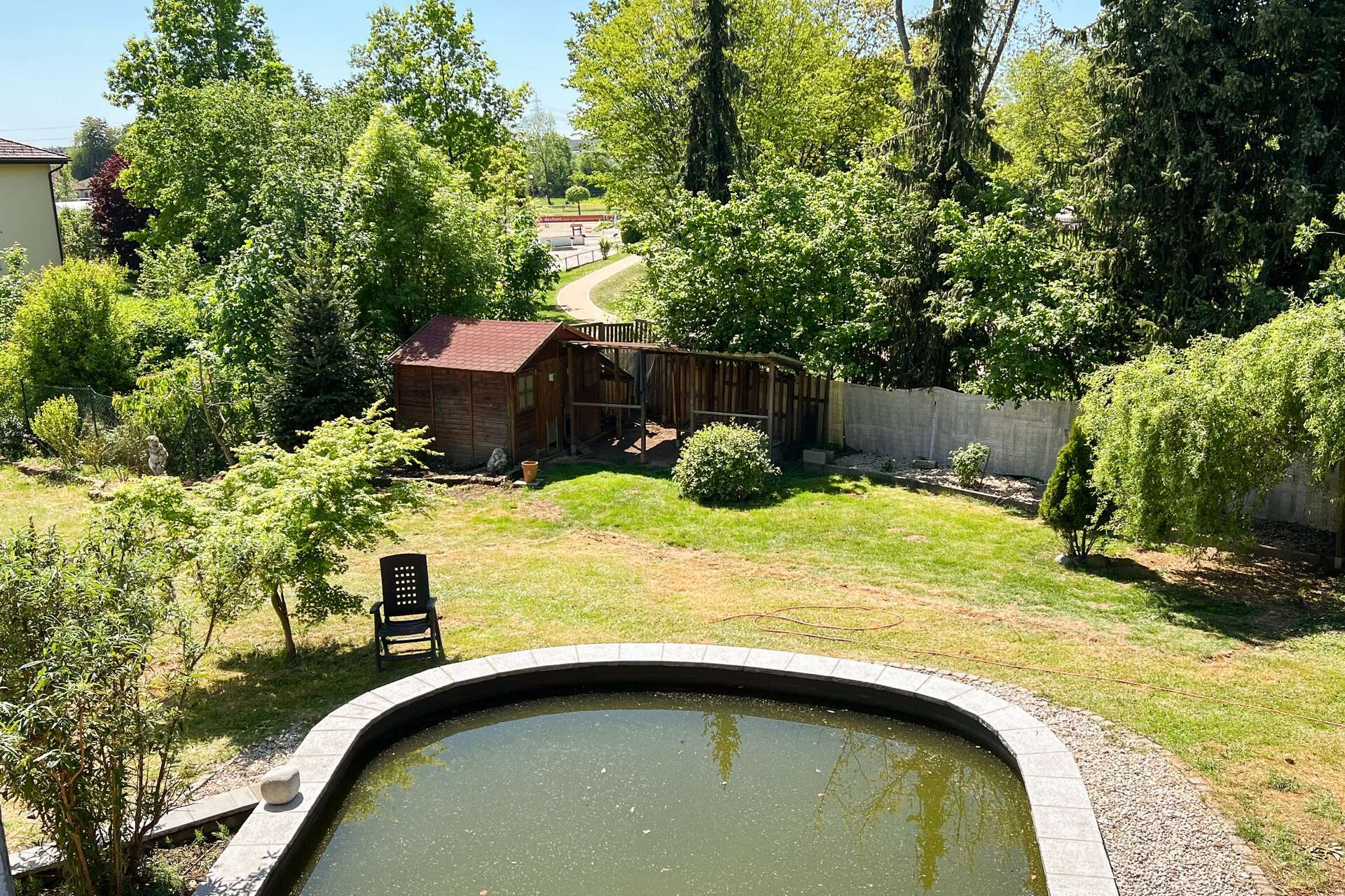 Die Wohnung umfasst 4,5 Zimmer, darunter ein helles Wohnzimmer mit Kaminanschluss und direktem Zugang auf die große Terrasse. Von hier aus eröffnet sich der private Garten, der mit viel Liebe angelegt wurde und mit einem Schwimmteich als Highlight begeistert. Neben dem Wohnzimmer bieten weitere Räume ausreichend Platz für Schlafzimmer, Kinderzimmer, Büro oder Gäste. Die moderne Küche bildet den Mittelpunkt für geselliges Beisammensein, während das komfortable Badezimmer mit Badewanne, Dusche und Waschbecken höchsten Wohnkomfort garantiert. Ein separates Gäste-WC ergänzt das Raumangebot ideal.