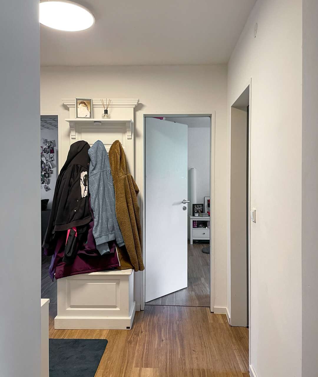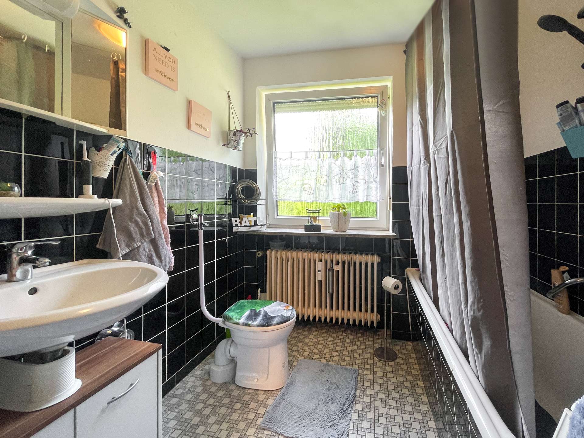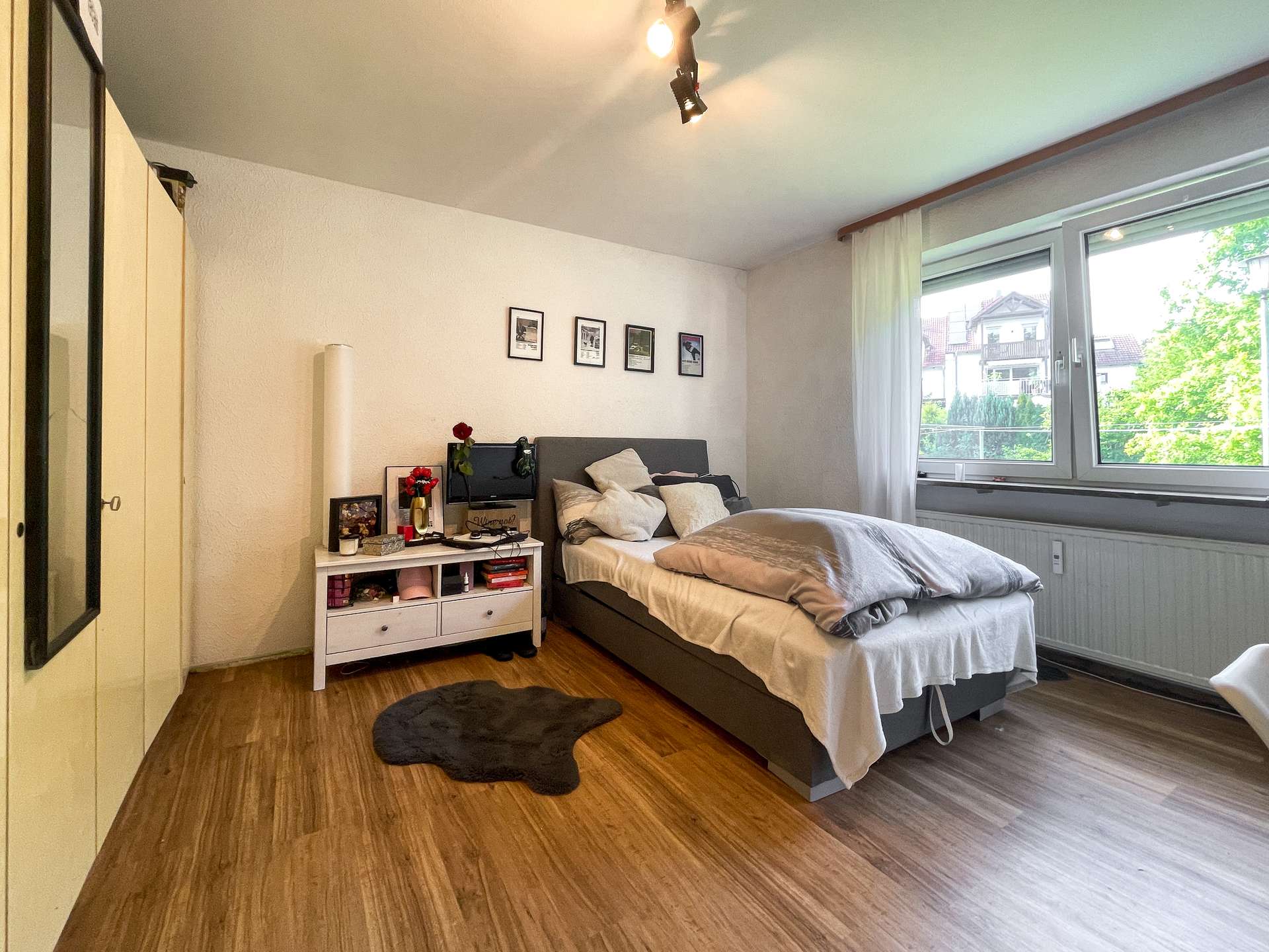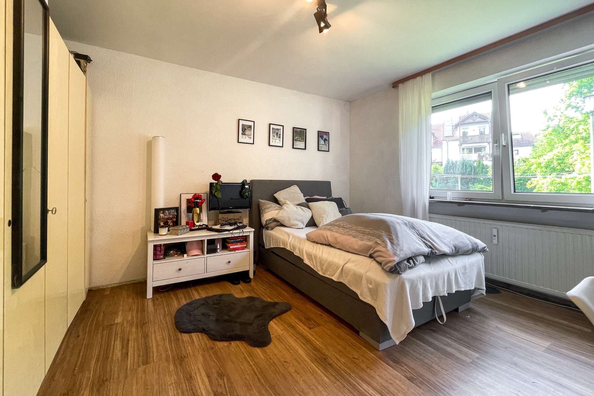 Die Wohnung erstreckt sich bequem über eine Etage und umfasst insgesamt vier Zimmer – darunter zwei großzügige Schlafzimmer, die sich hervorragend als Elternschlafzimmer und Kinderzimmer oder alternativ als Schlafzimmer und Gäste-/Arbeitszimmer nutzen lassen. Das Badezimmer ist hell, gut geschnitten und bietet ausreichend Platz – ob für das Familienbad mit den Kleinen oder für eine seniorengerechte Ausstattung.