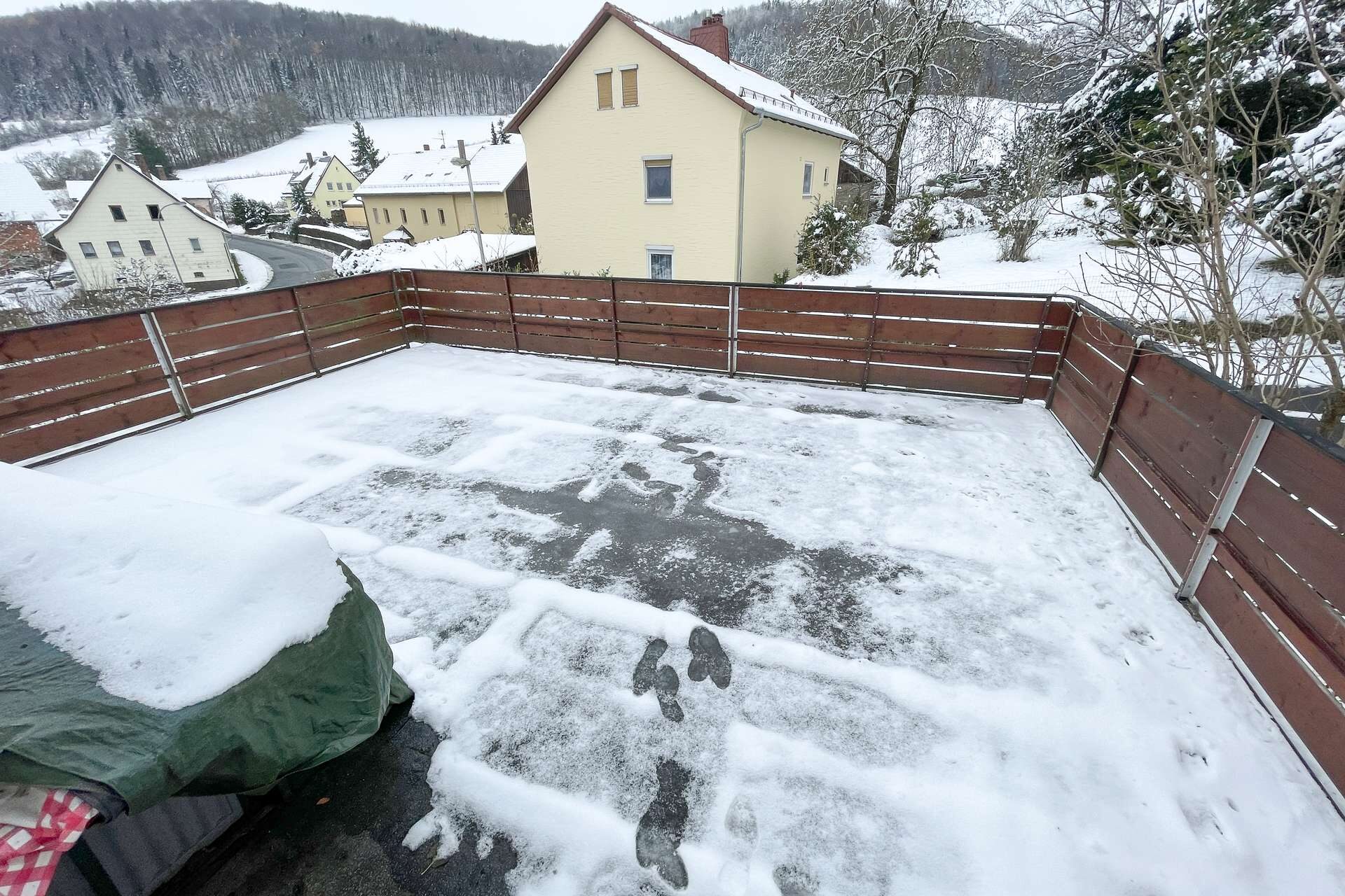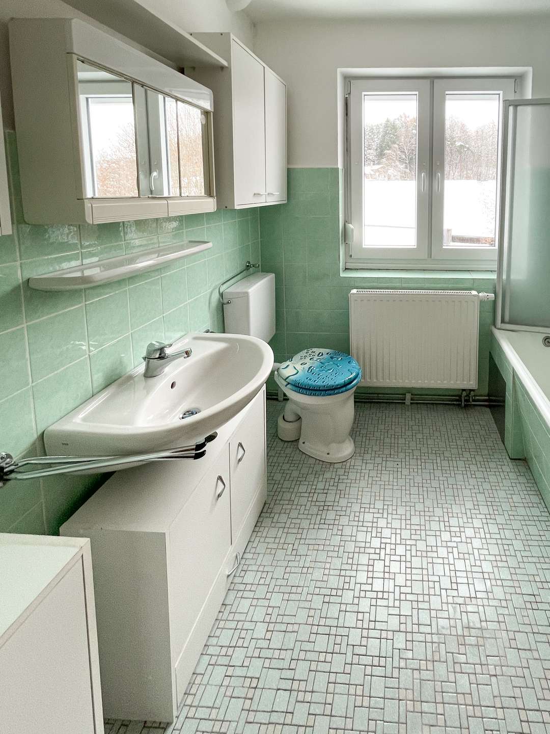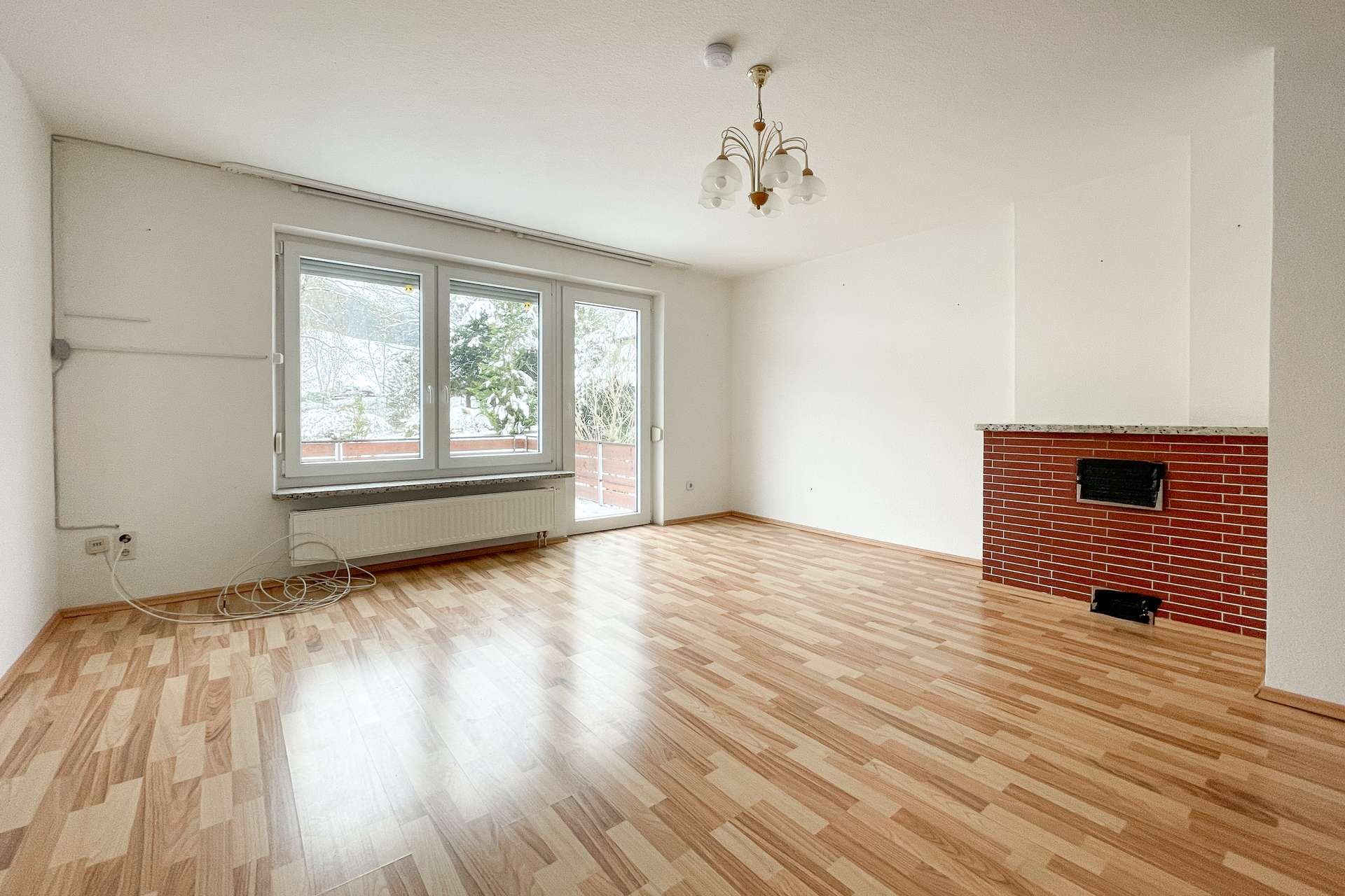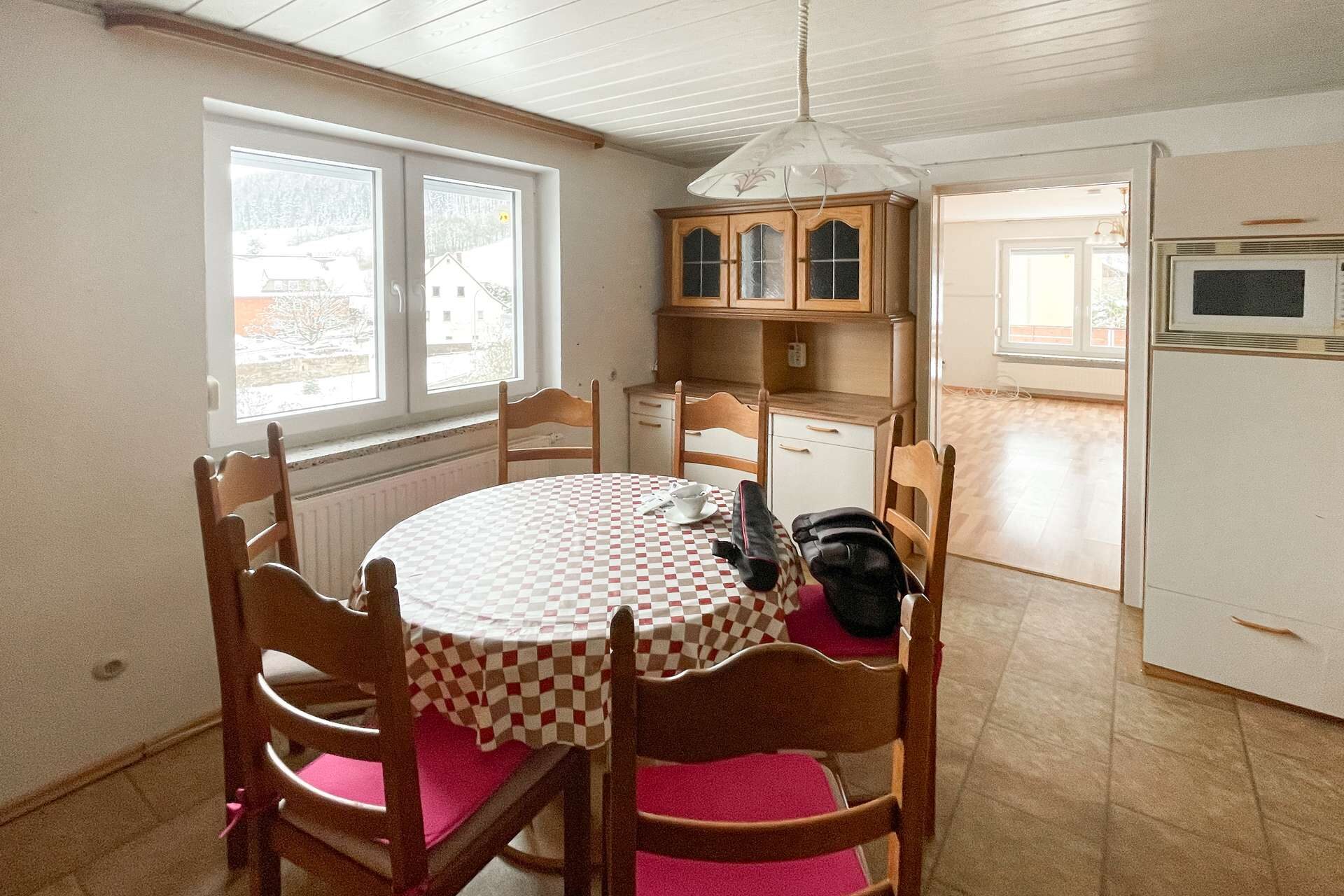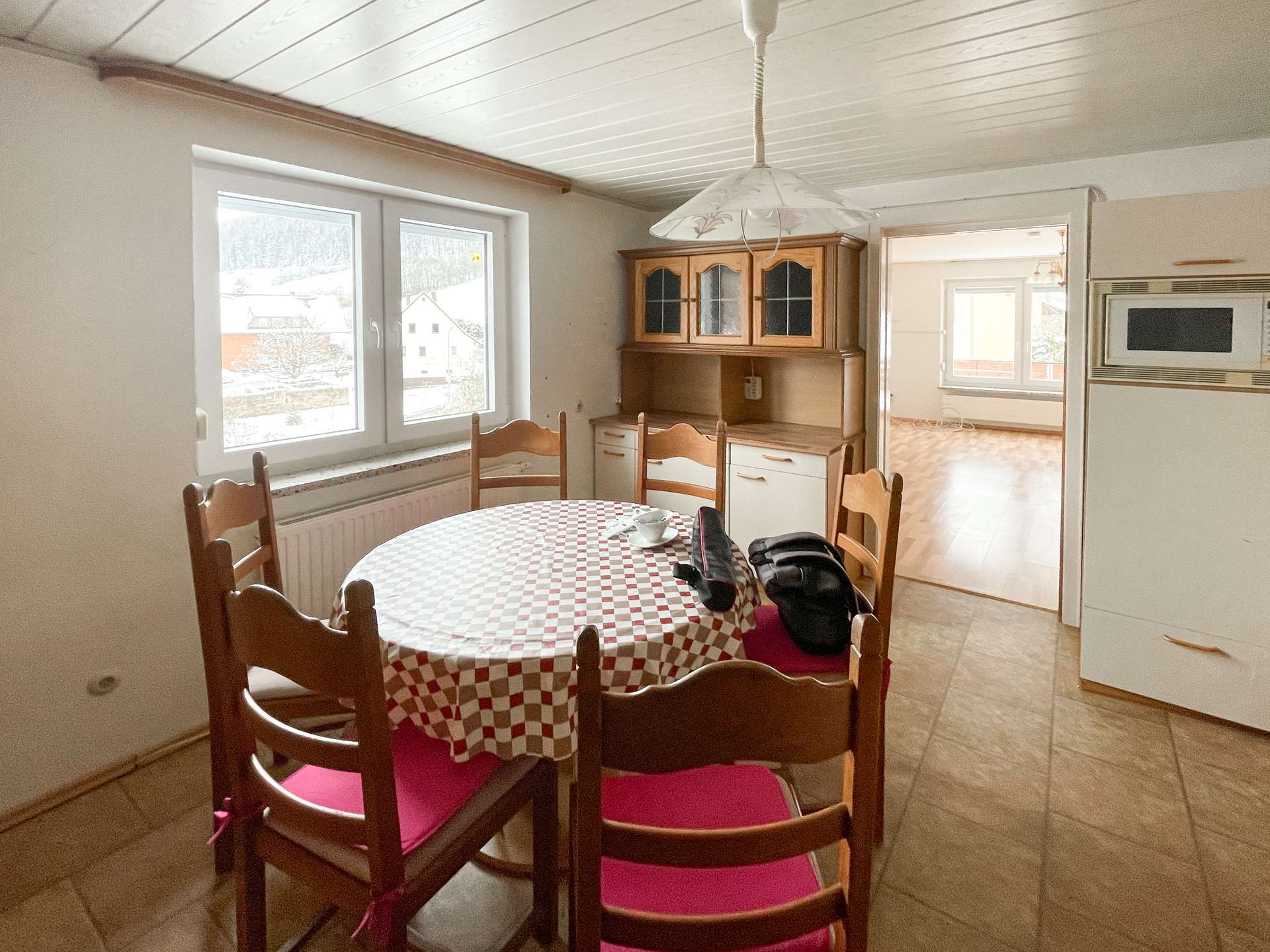In dem großzügigen Haus befinden sich zwei Wohneinheiten. Die Wohnung im Erdgeschoss verfügt über eine Küche, einem großzügigen Wohnzimmer, zwei Schlafzimmer und ein Tageslichtbad. Die Räume erreichen sie alle von dem zentralen Flur aus. Durch das Wohnzimmer gelangen Sie auf den großzügigen Balkon – hier lässt es sich nach Feierabend perfekt verweilen und die idyllische Landschaft genießen.