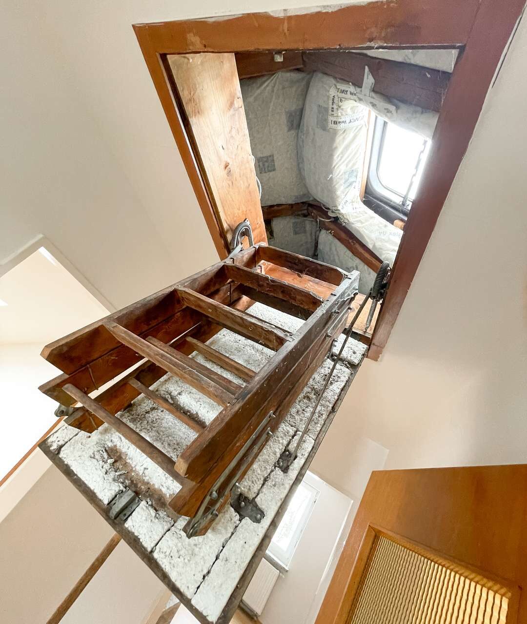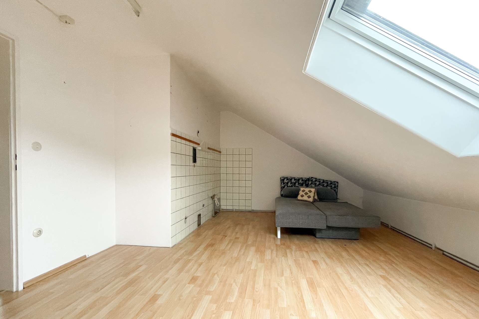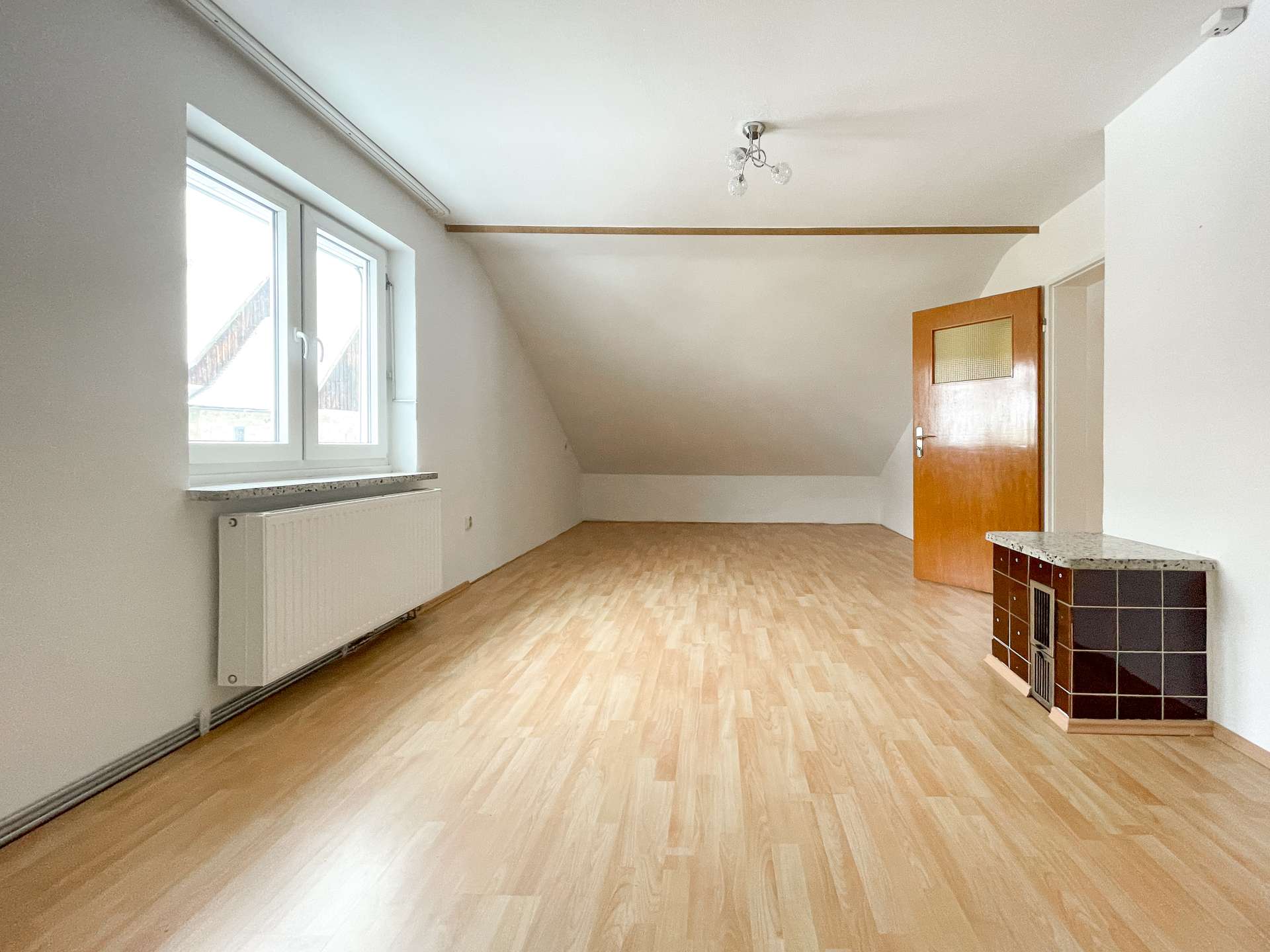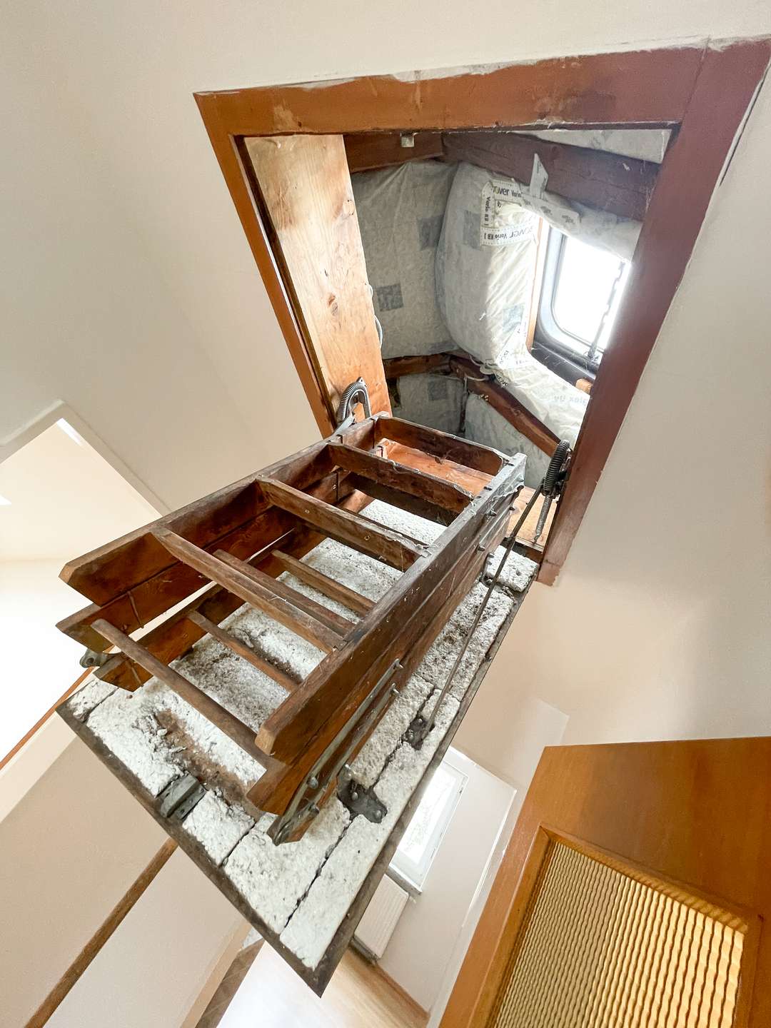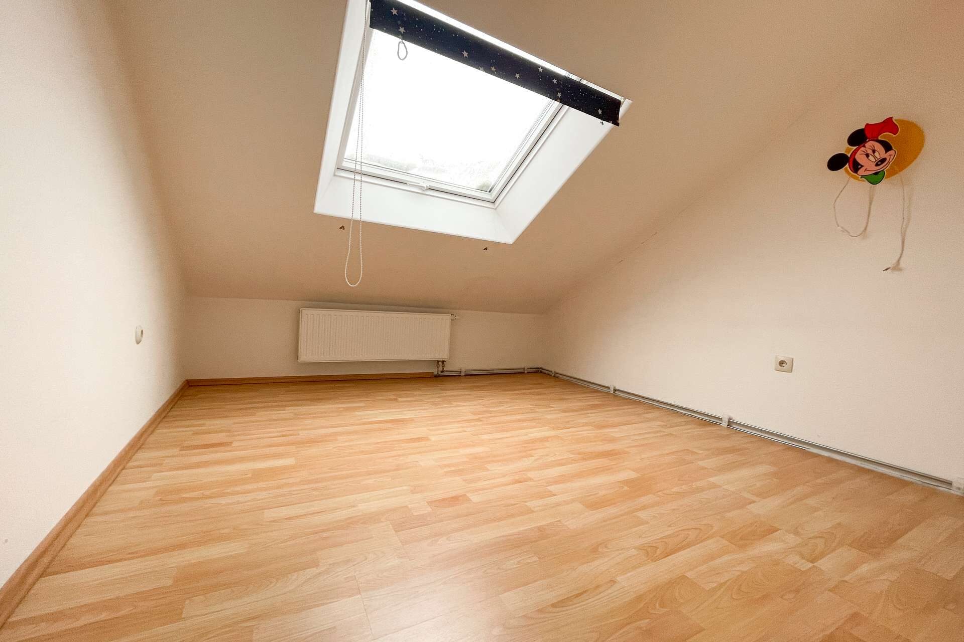 Im Dachgeschoss befindet sich die zweite Wohneinheit. Diese verfügt über eine große Wohnküche und zwei Schlafzimmer, sowie ein Badezimmer mit Tageslicht und Badewanne. Durch die großen Fenster ist diese Etage trotz der Dachschrägen lichtdurchflutet und hell.
