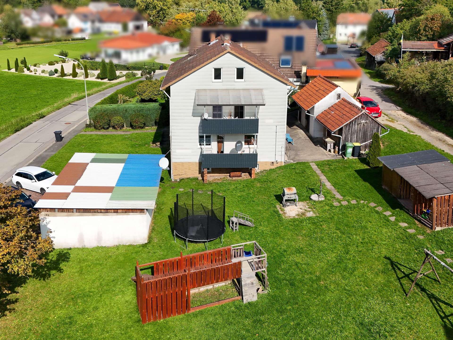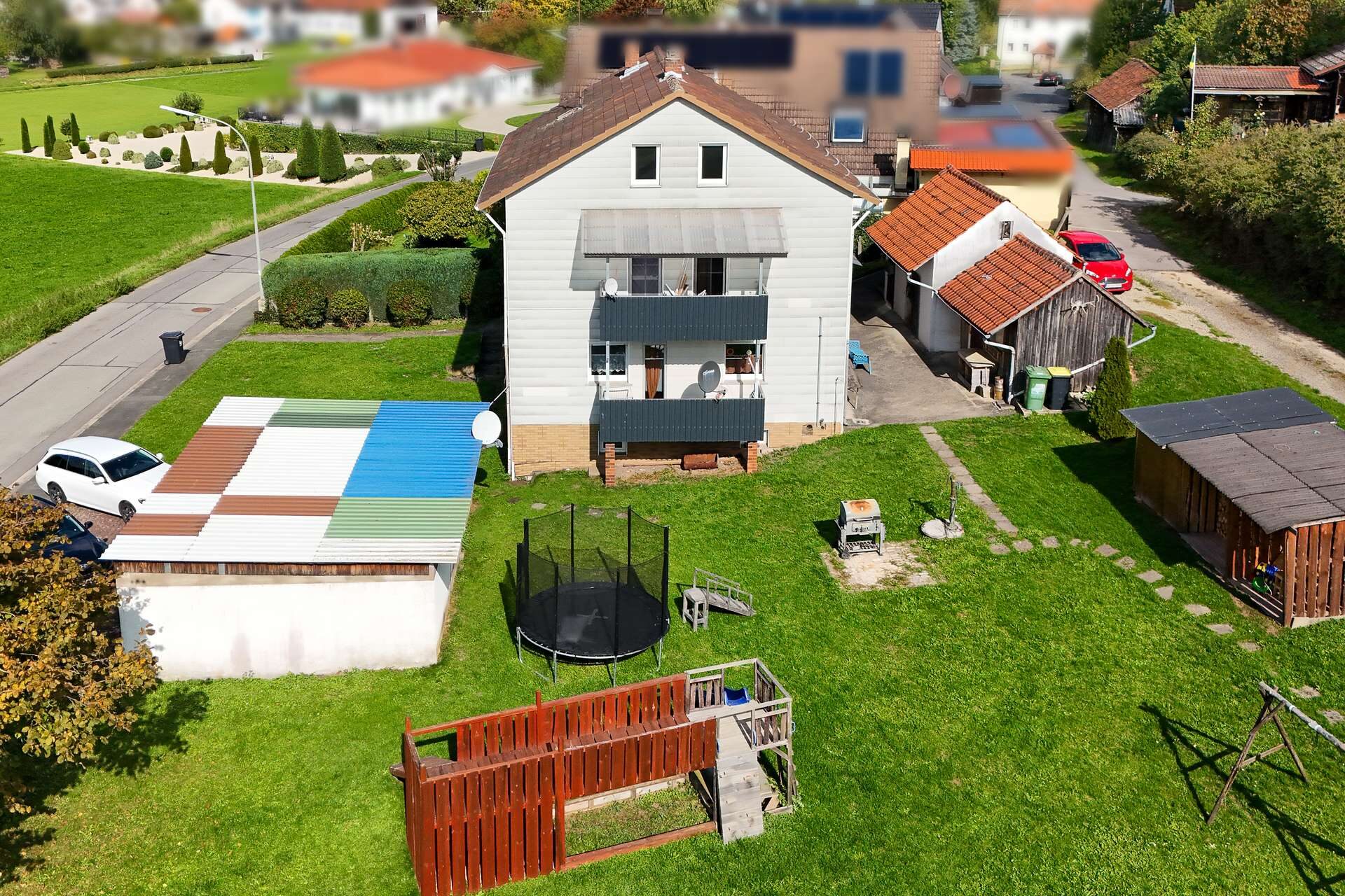 Das im Jahr 1950 errichtete Haus bietet eine Gesamtwohnfläche von rund 150 m² und steht auf einem großzügigen Grundstück mit etwa 1.321 m² Fläche. Es beherbergt zwei eigenständige Wohneinheiten im Erd- und Obergeschoss, die jeweils über vier Zimmer, eine Küche und ein Badezimmer verfügen. Große Fensterflächen sorgen für helle, freundliche Wohnräume, während überdachte Balkone zum Entspannen im Freien einladen.